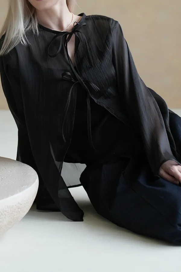 日系早秋抽繩皺皺感襯衫罩衫 4color /外搭黑