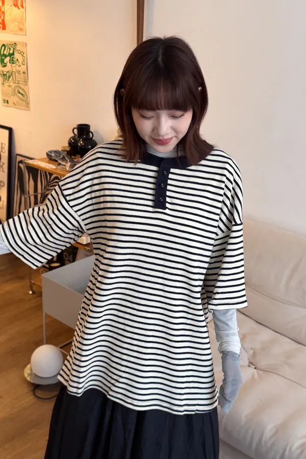 【SHOWROOM MADE】 設計心得 編織釦亨利領加厚橫條上衣 2size