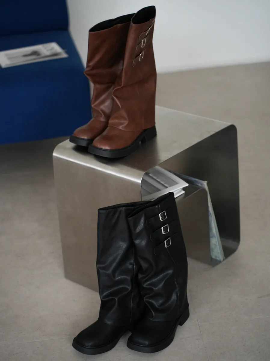 復古濾鏡穿上好比例長腿堆堆褲腳感長筒靴 2color
