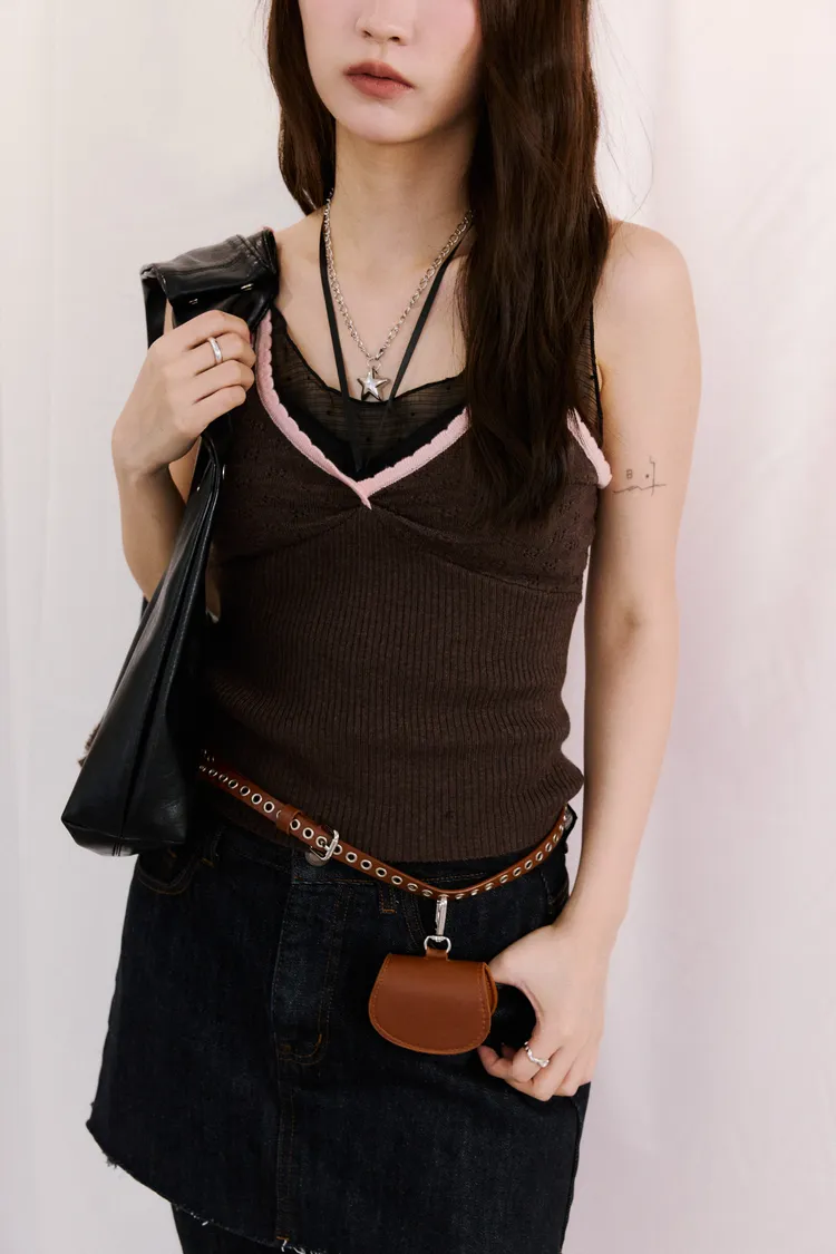 針織滾邊撞色v領背心 3color