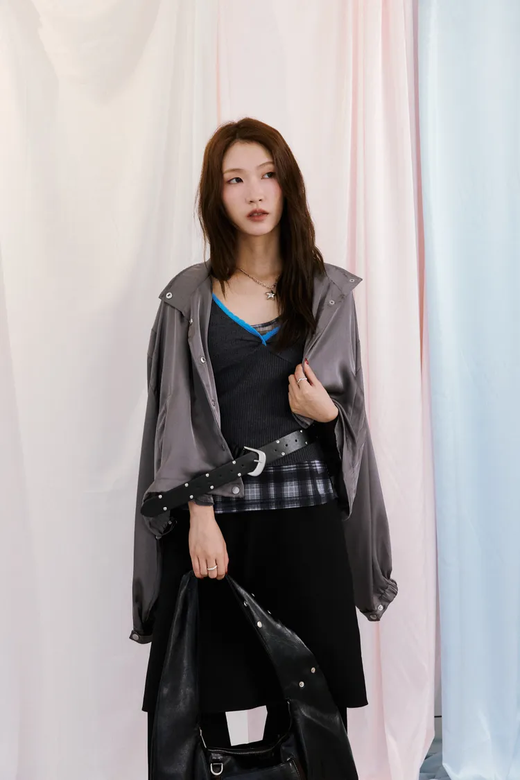 很迷人光澤緞面立領夾克 3color