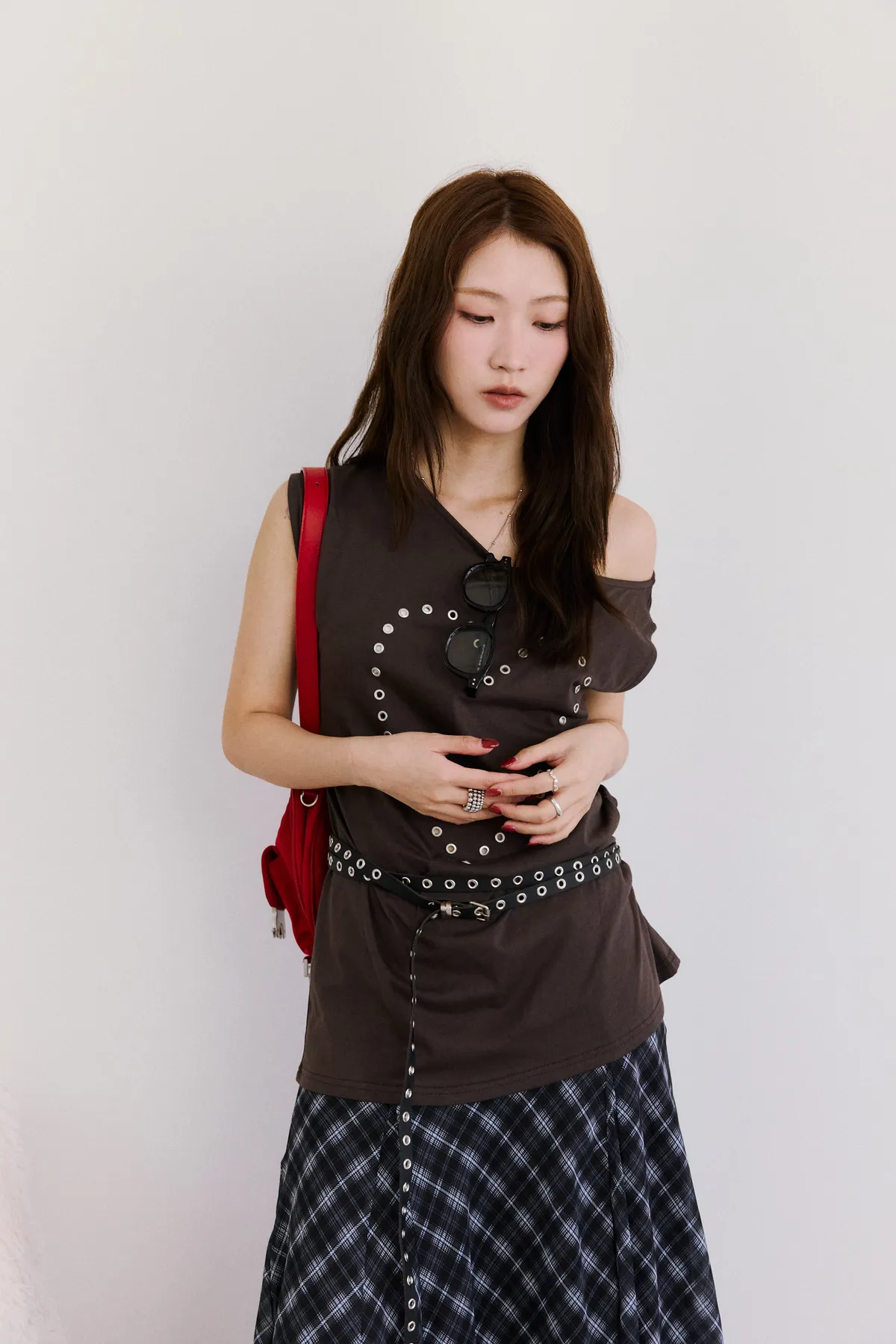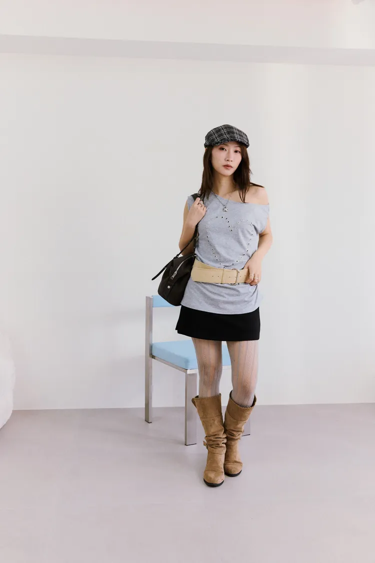 •info:鉚釘簍空,單邊側腰抓皺
