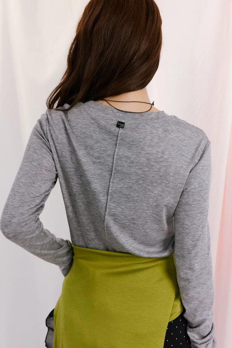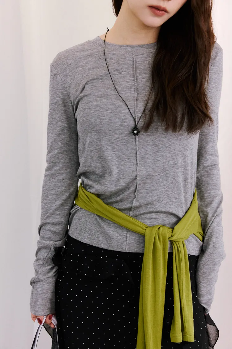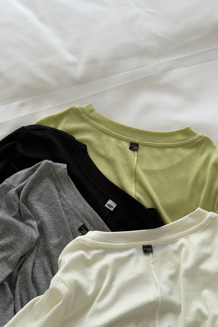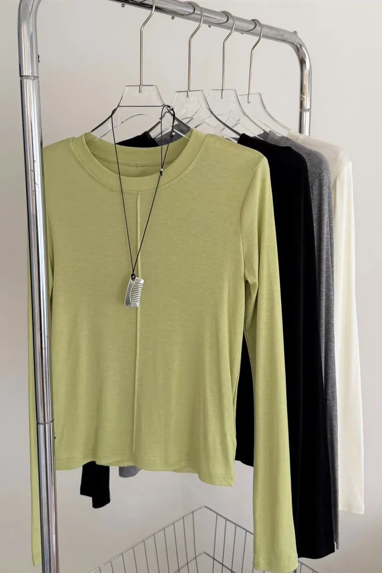 時髦簡單壓線背標長袖上衣 4color
