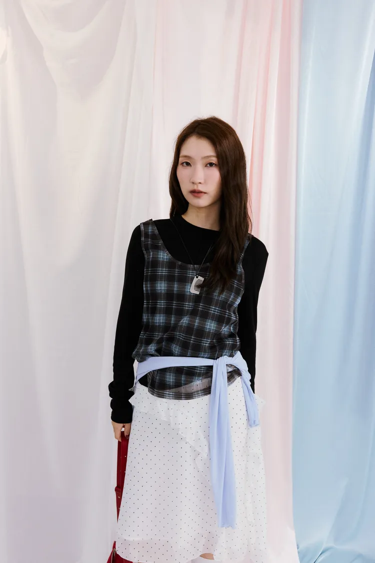 低調的時髦格紋透紗背心 2color