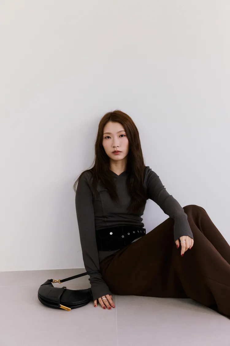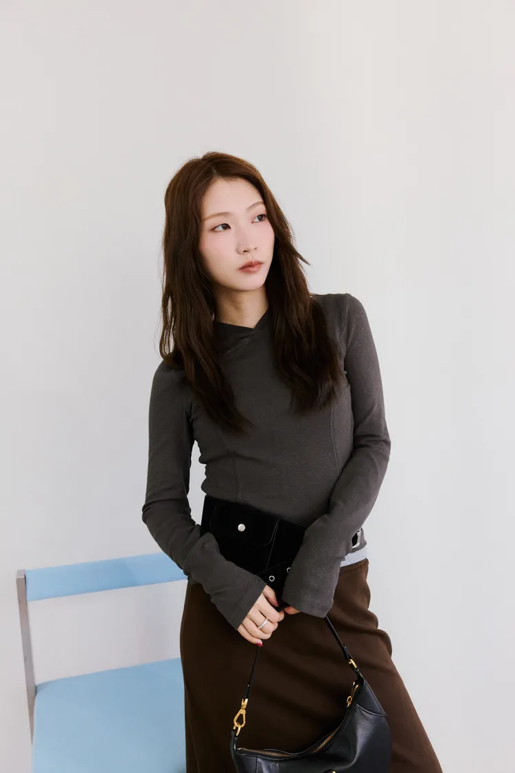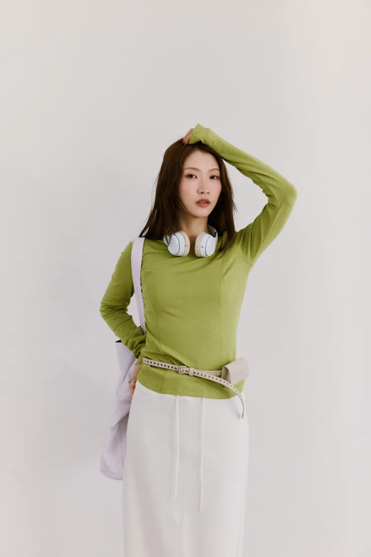時髦簡單壓線背標長袖上衣 4color