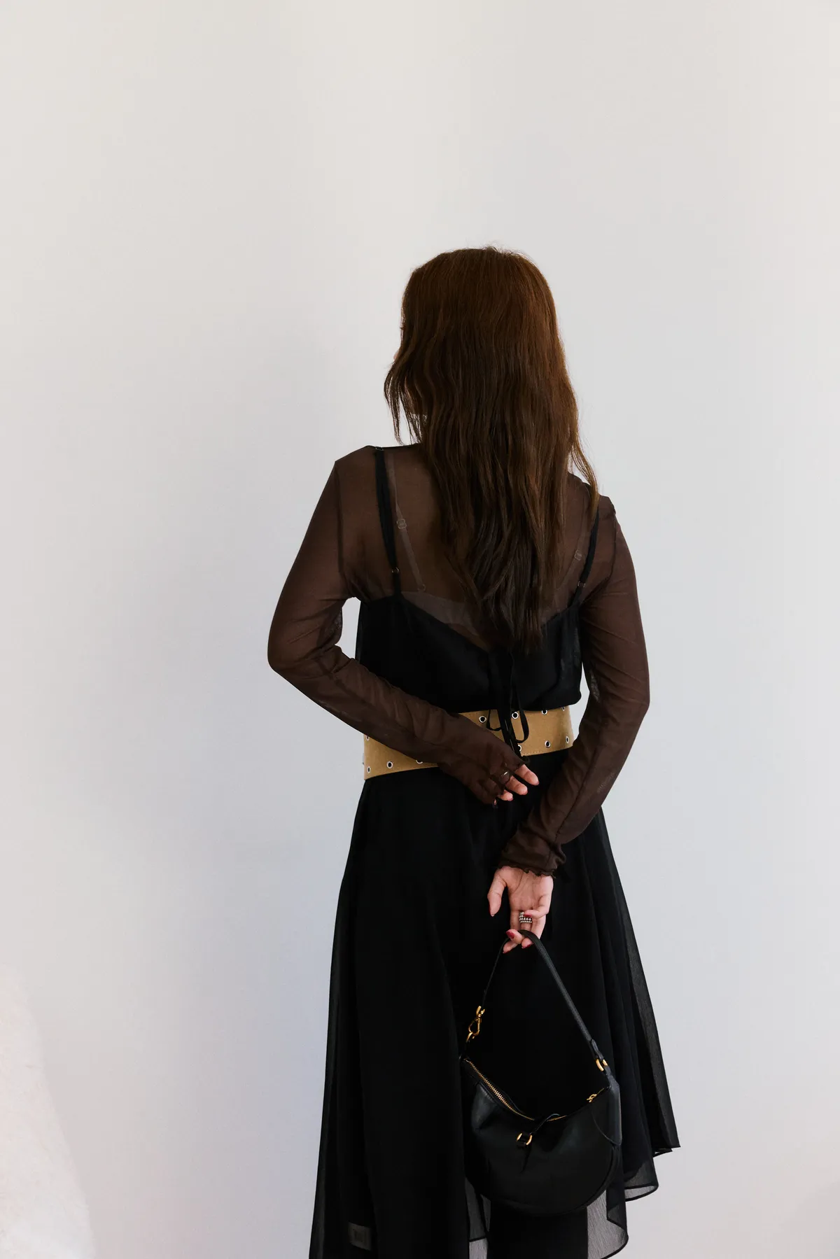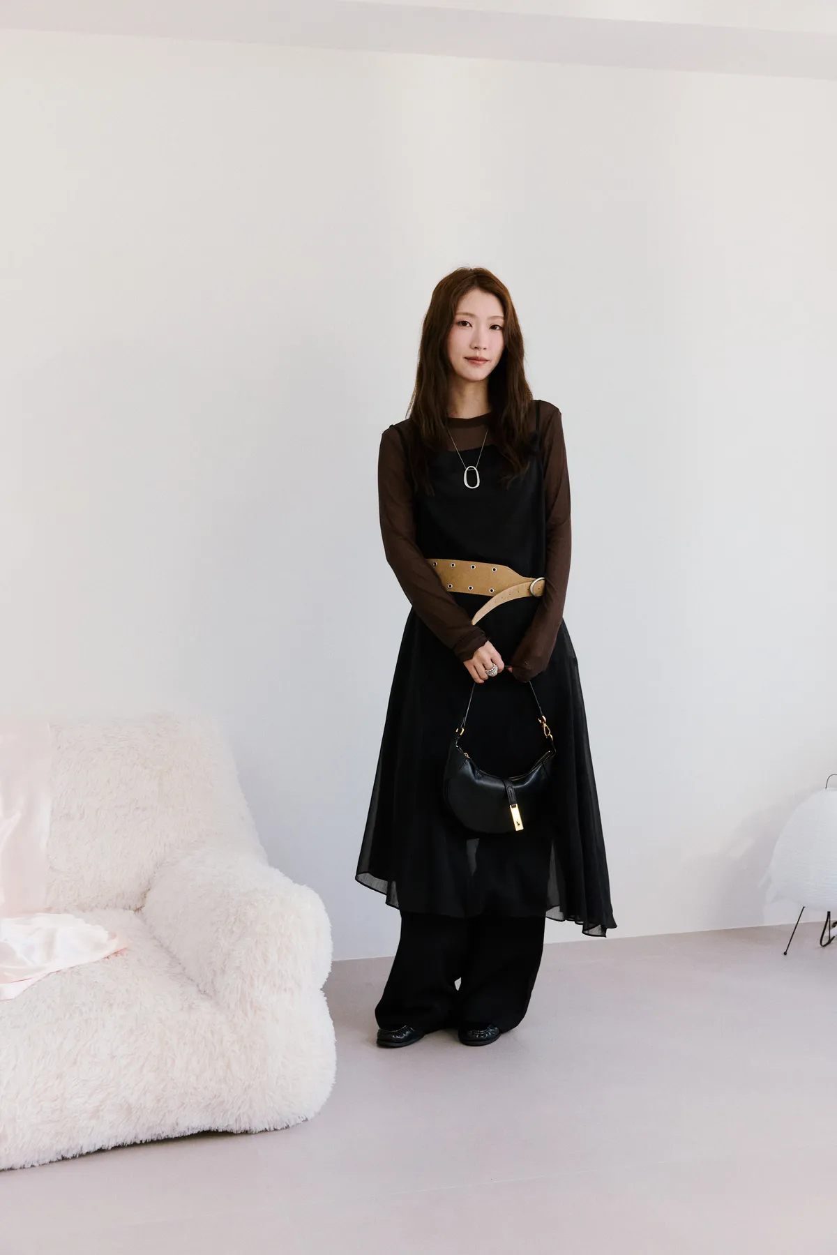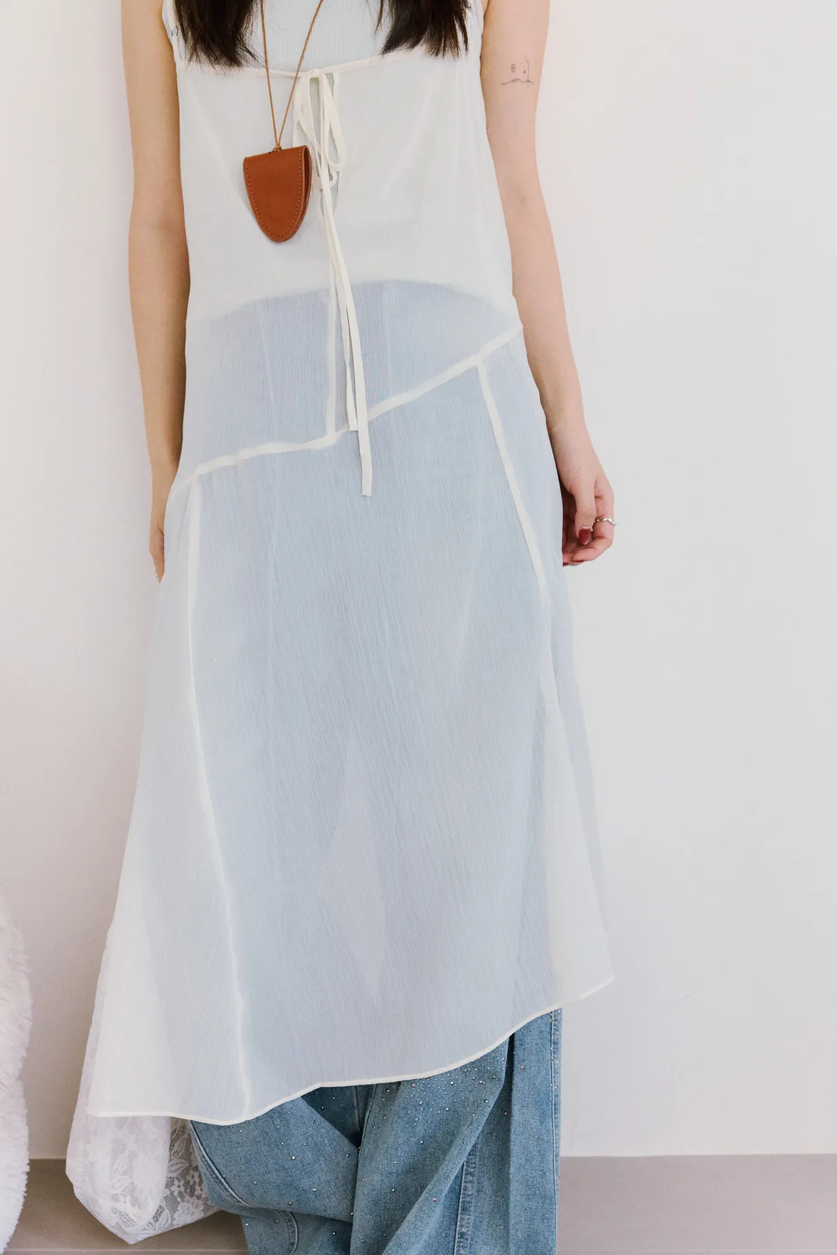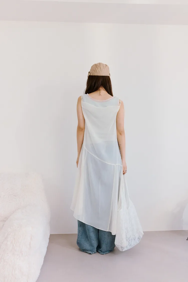 細肩透紗綁結長洋裝 2color