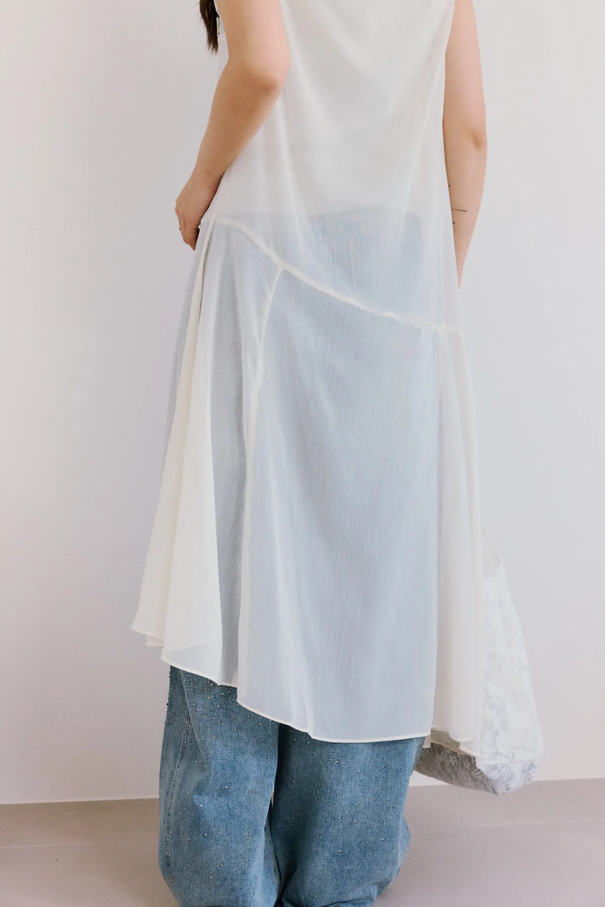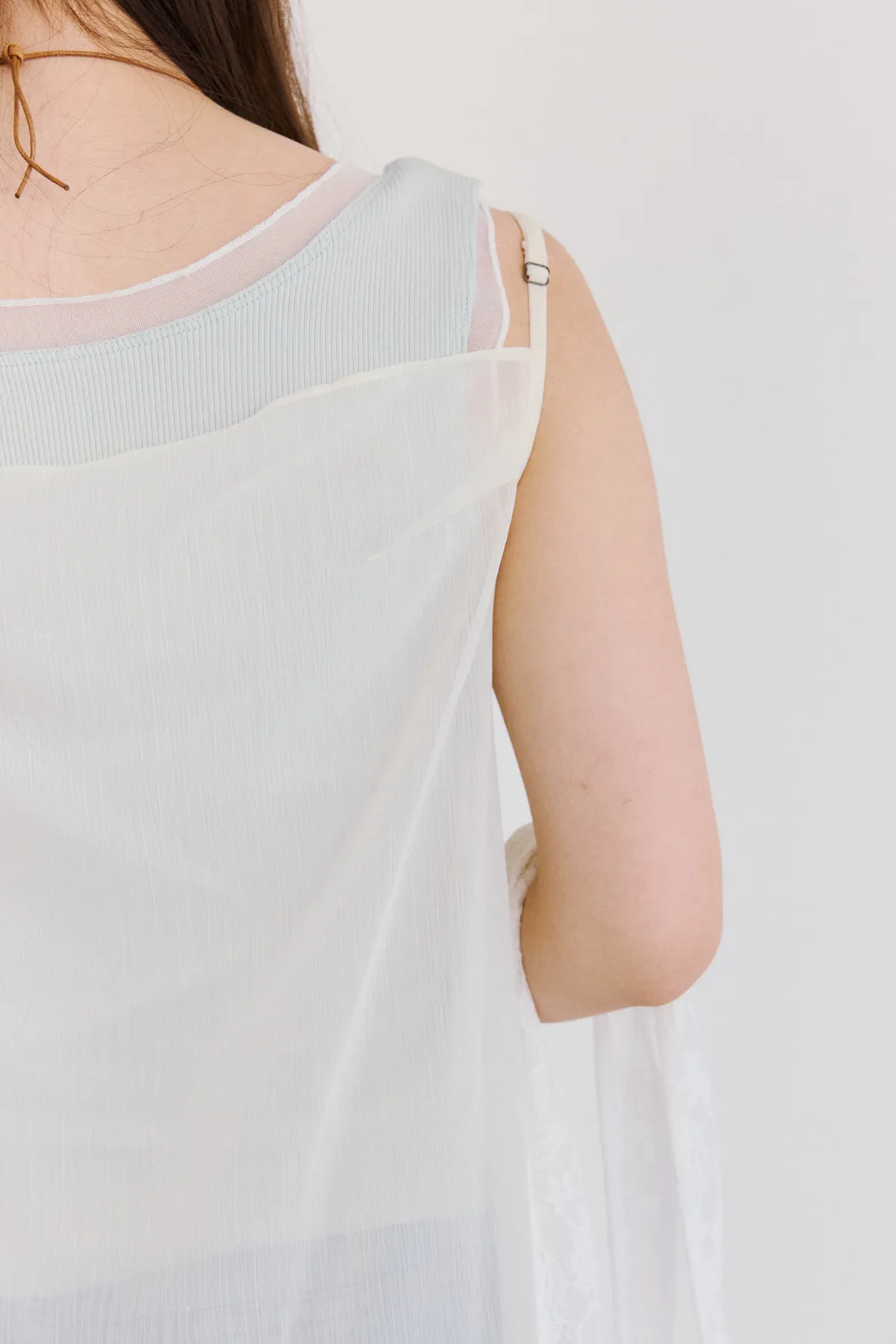 春日拚接透紗彈力背心 3color