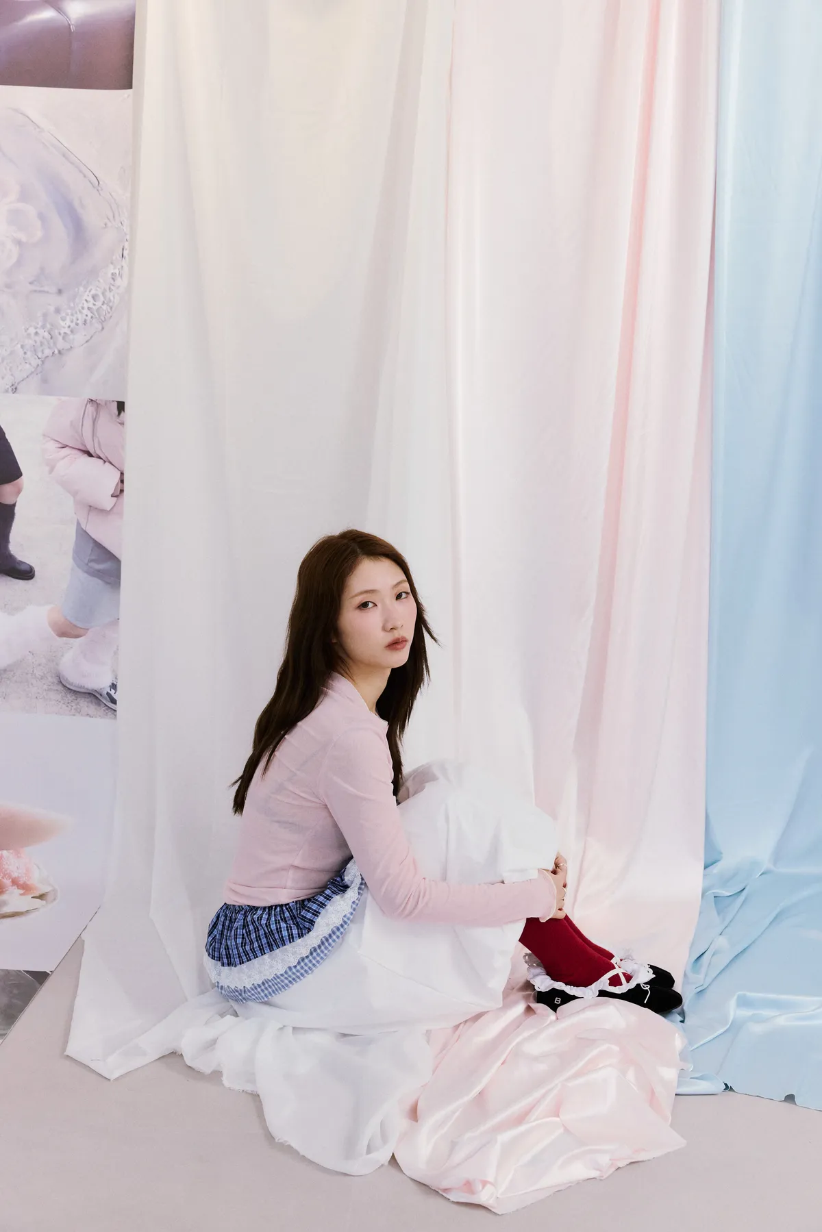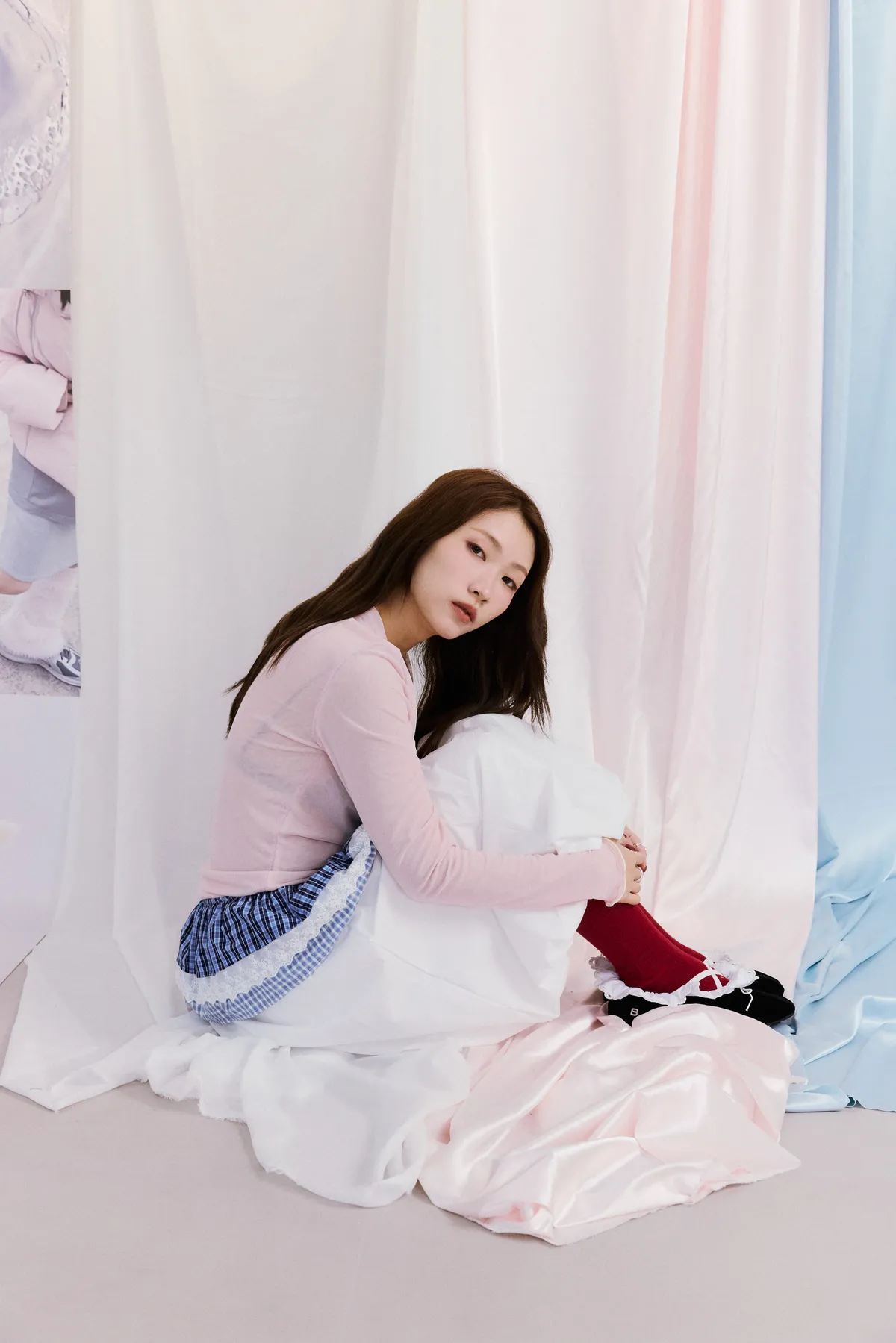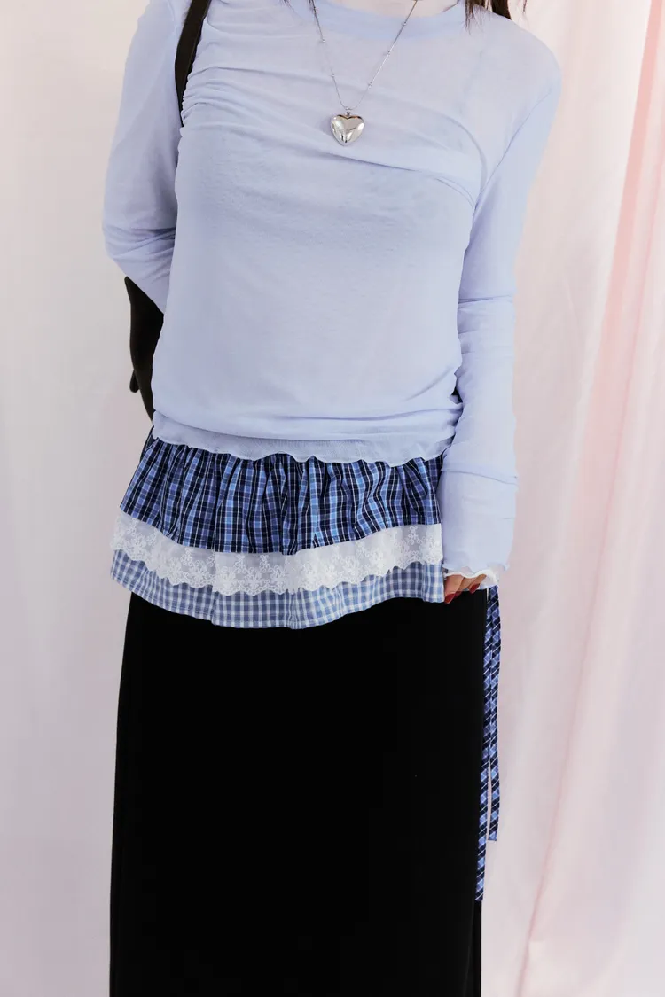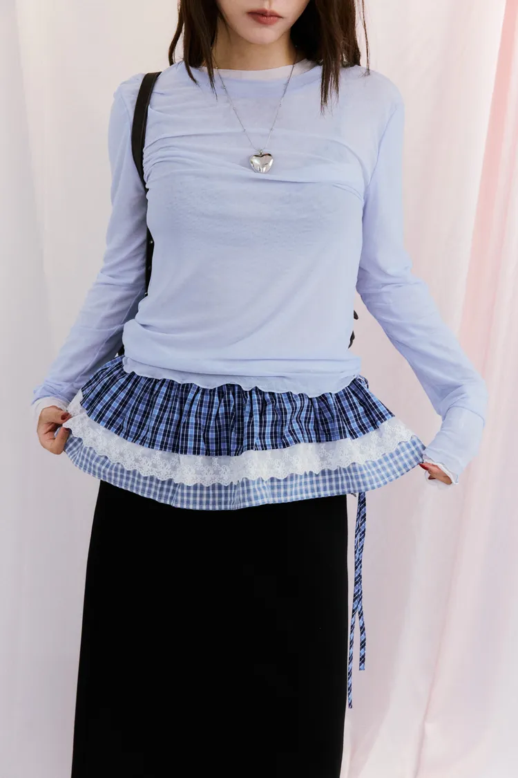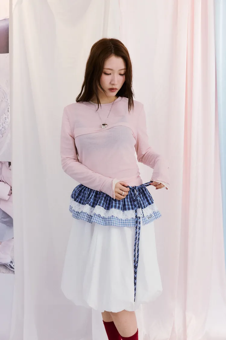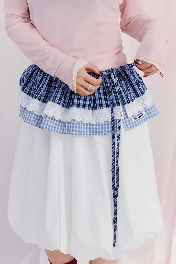 神奇東C蕾絲邊格紋綁帶襯裙 2color