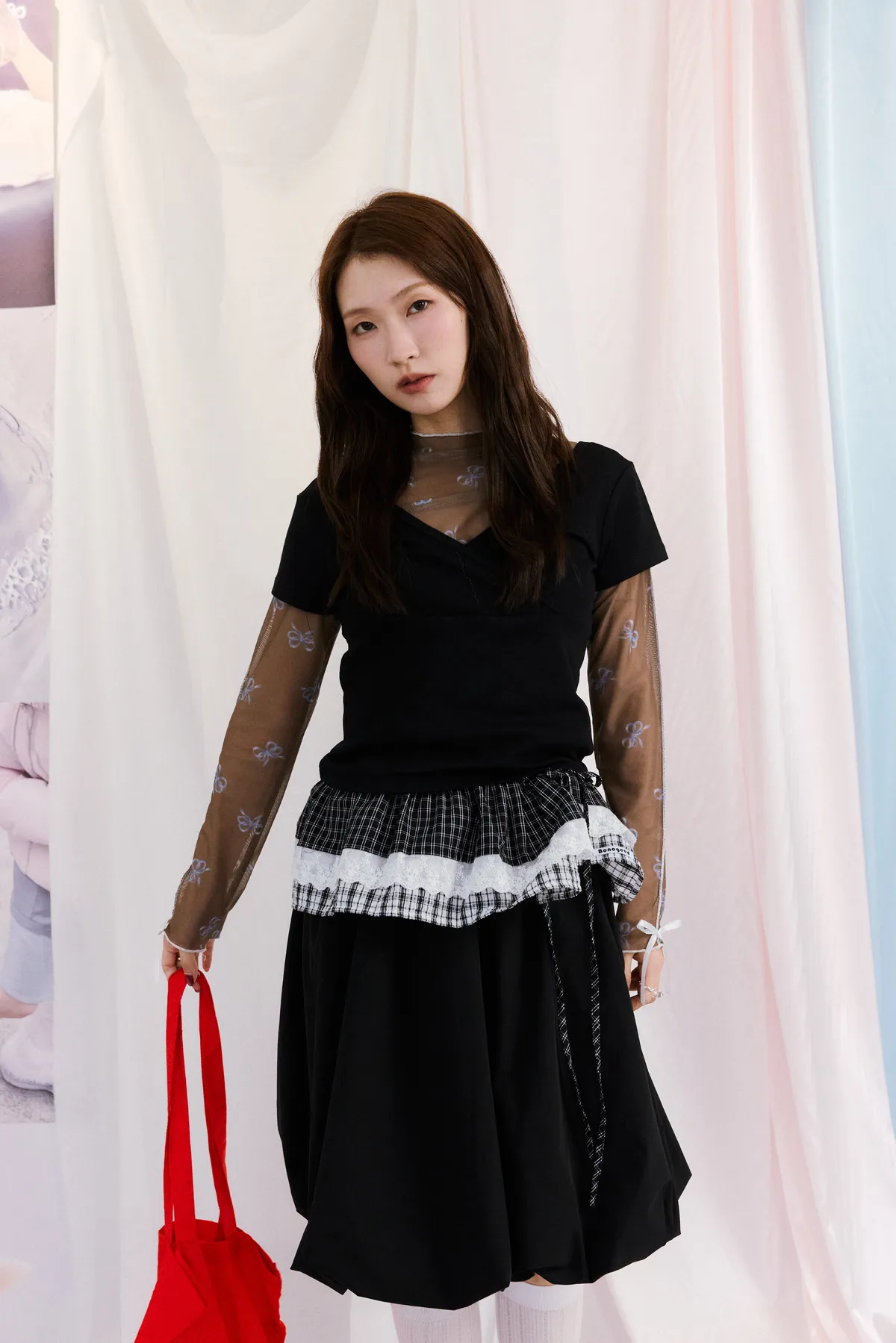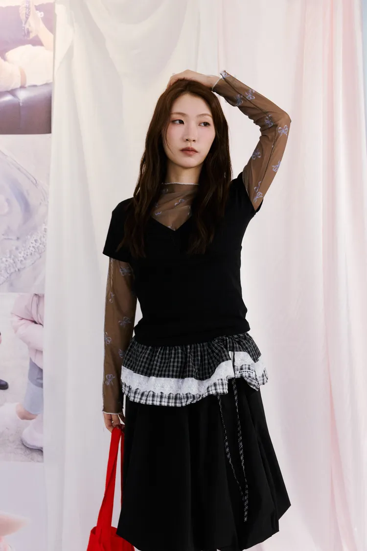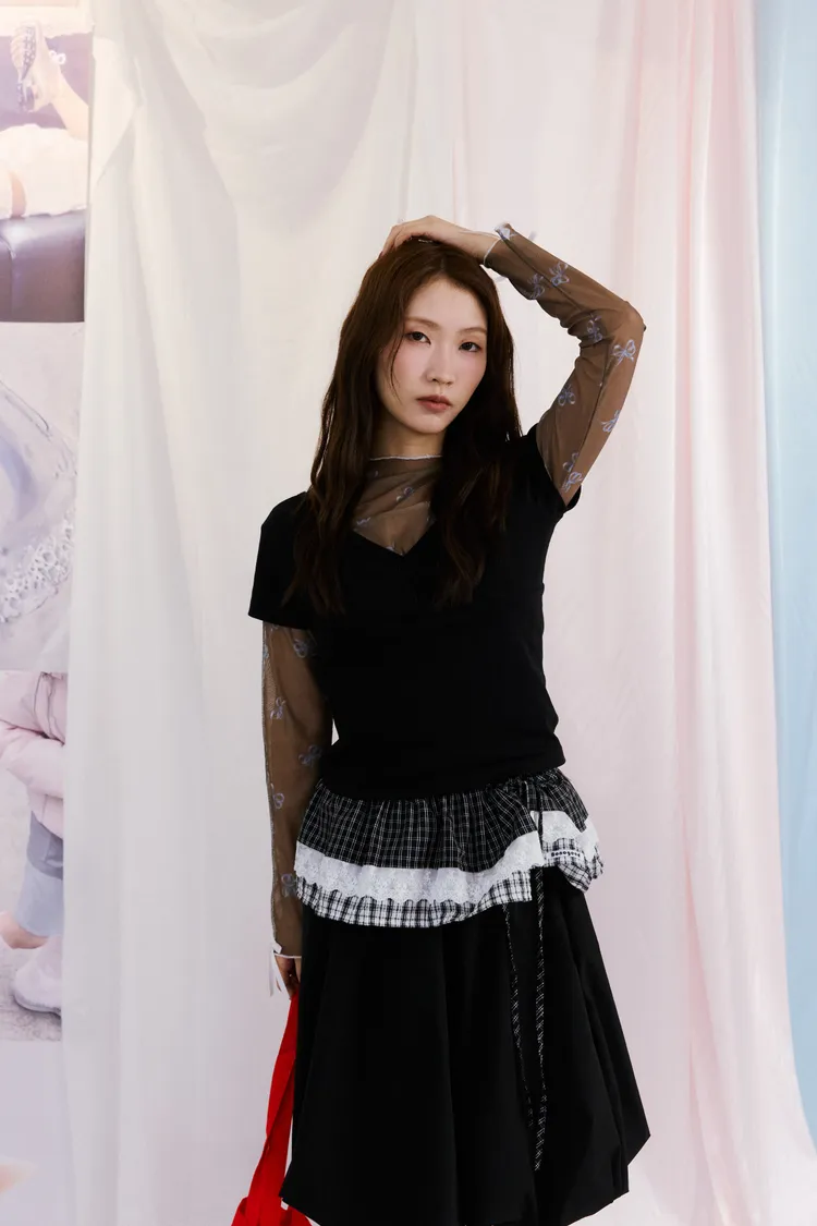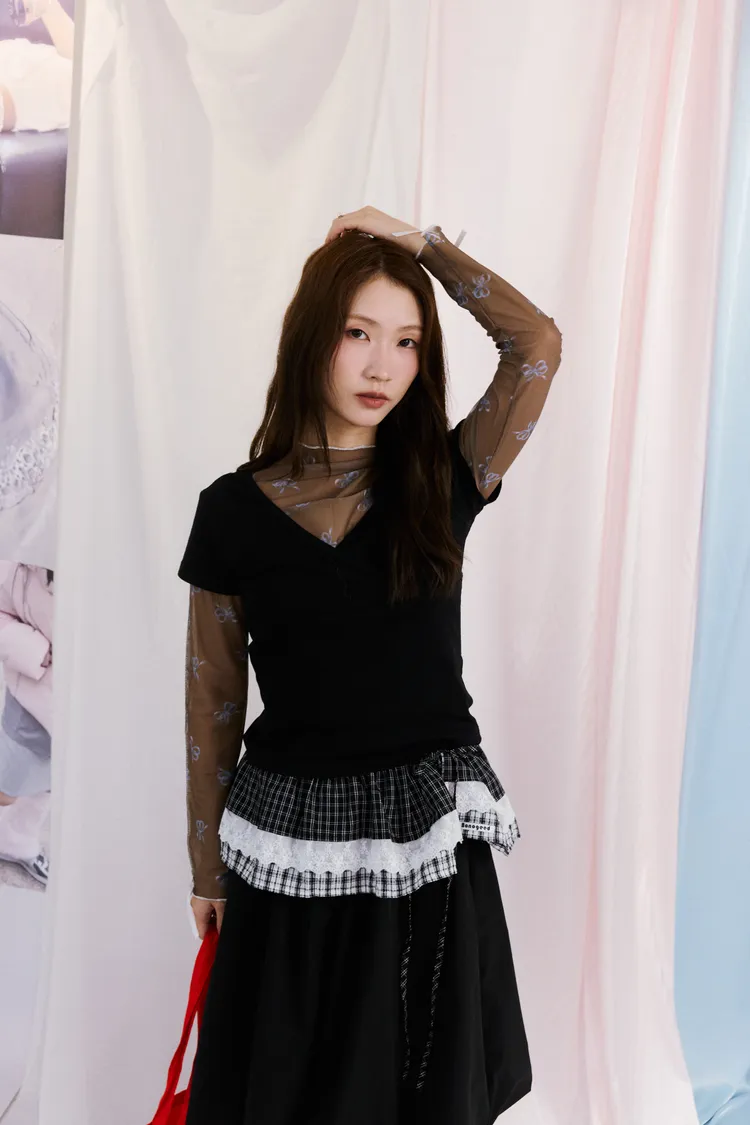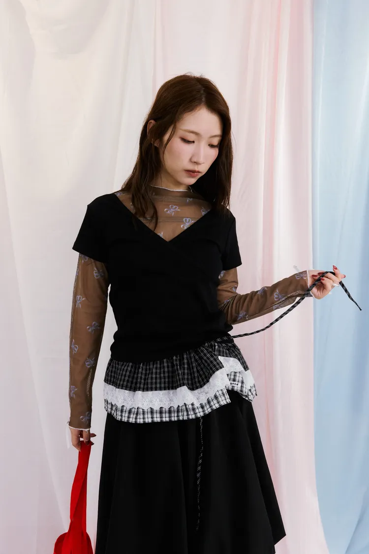 蝴蝶結透膚打底衣 3color