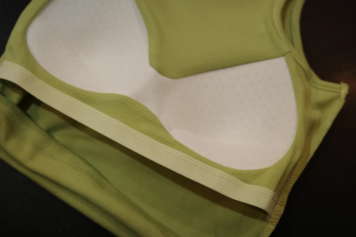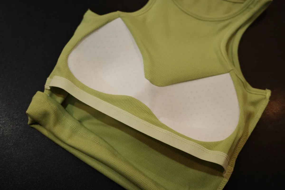 胸墊一體成形不可拆,胸下有鬆緊帶,有彈性