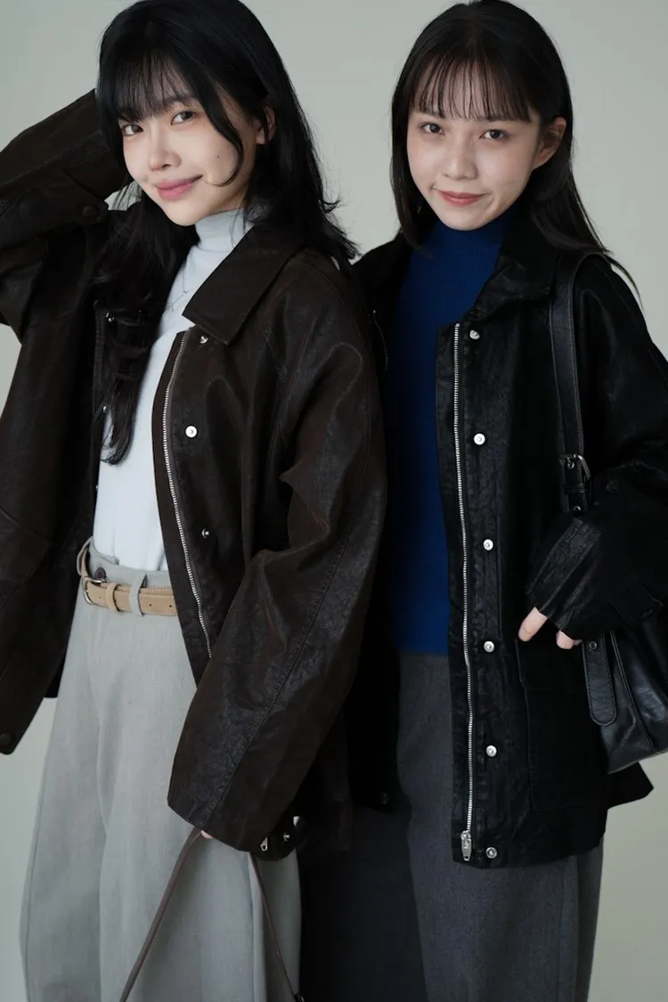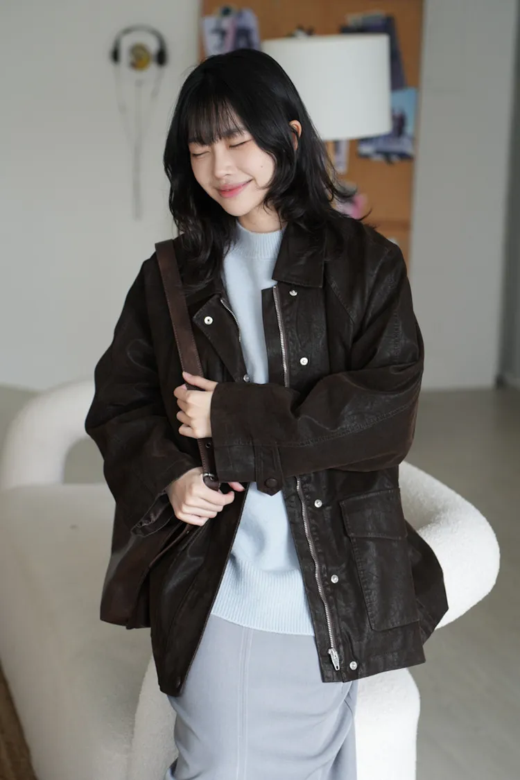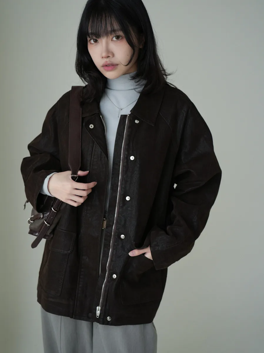 高級啞光巨挺版大件水洗皮革外套(男森可) 2color