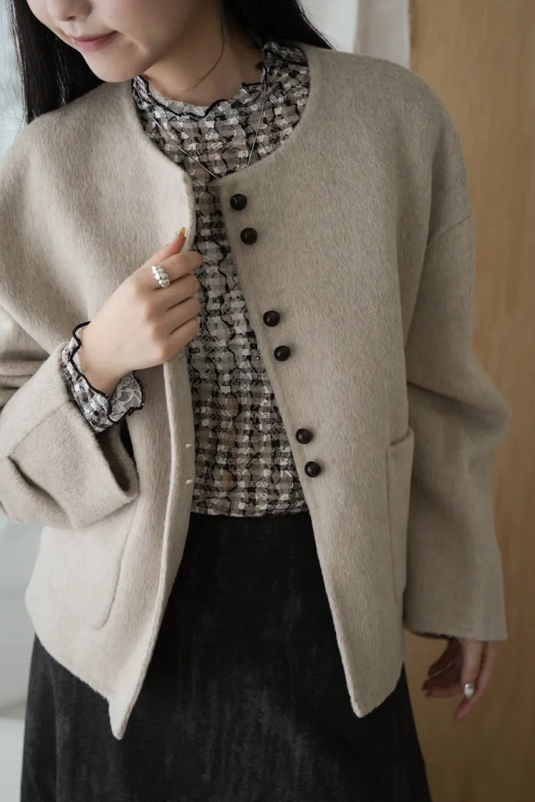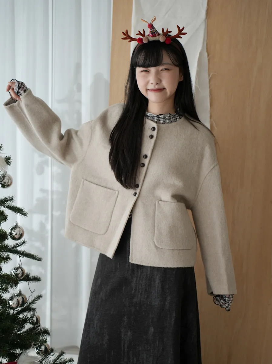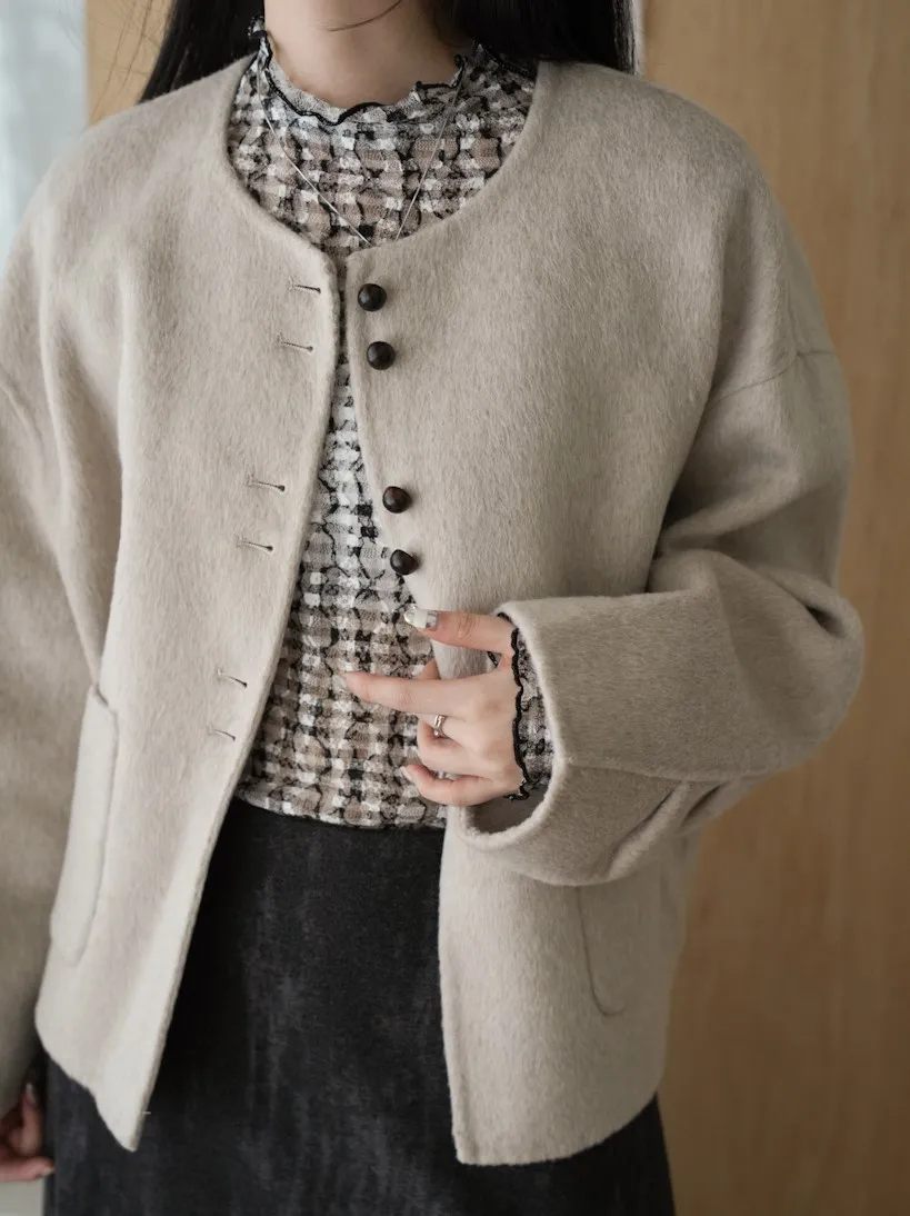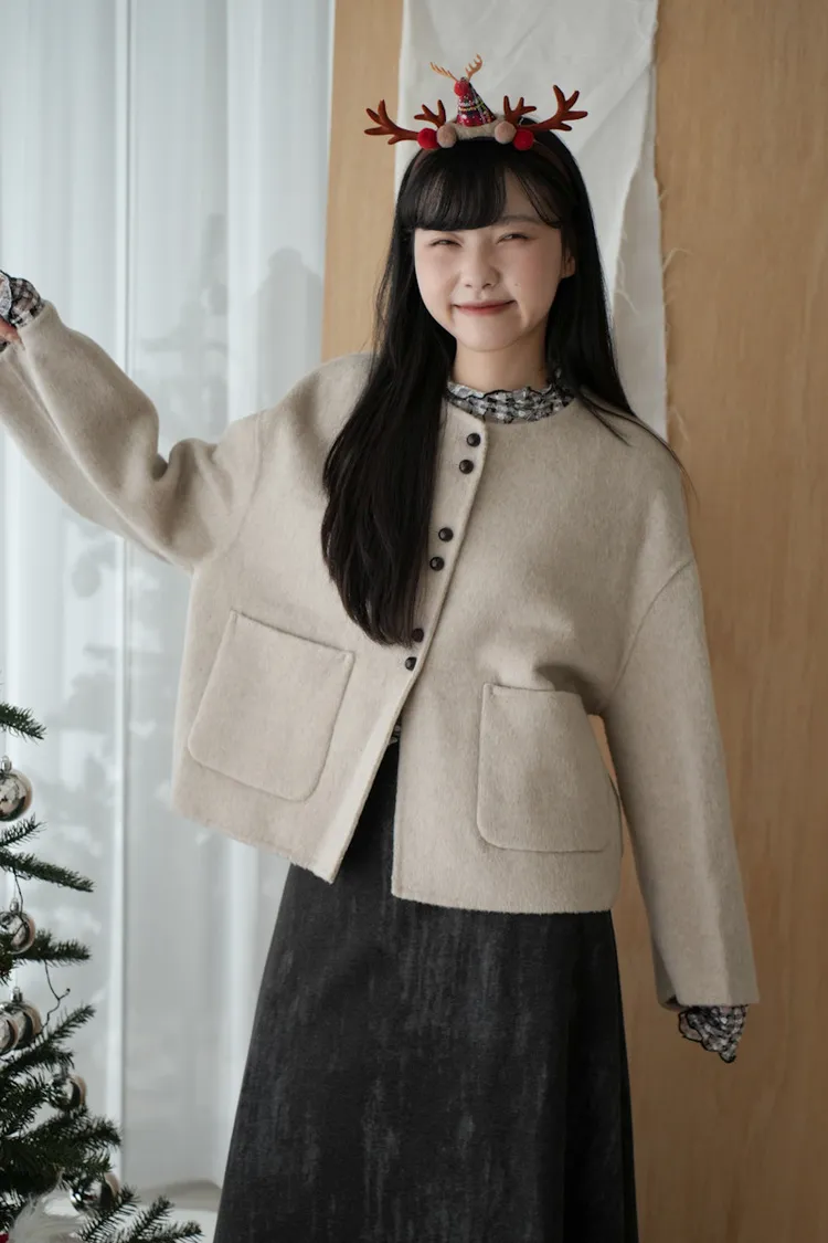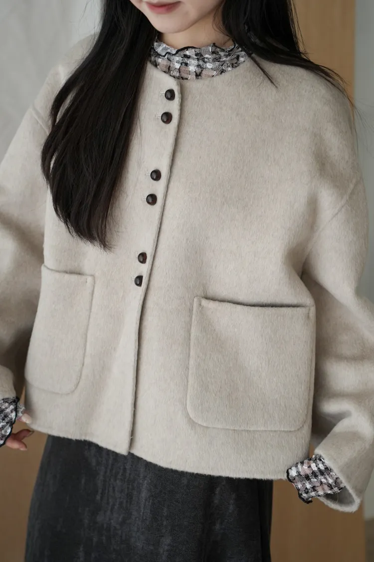 溫柔到位 豆豆跳釦羊絨口袋外套