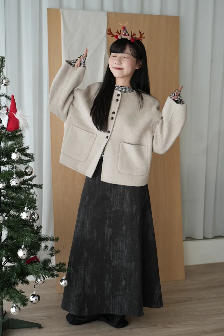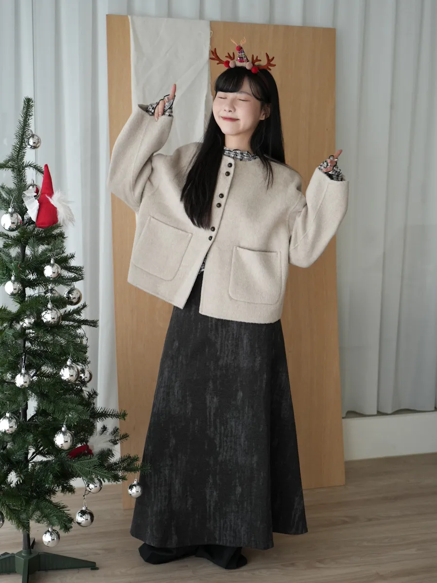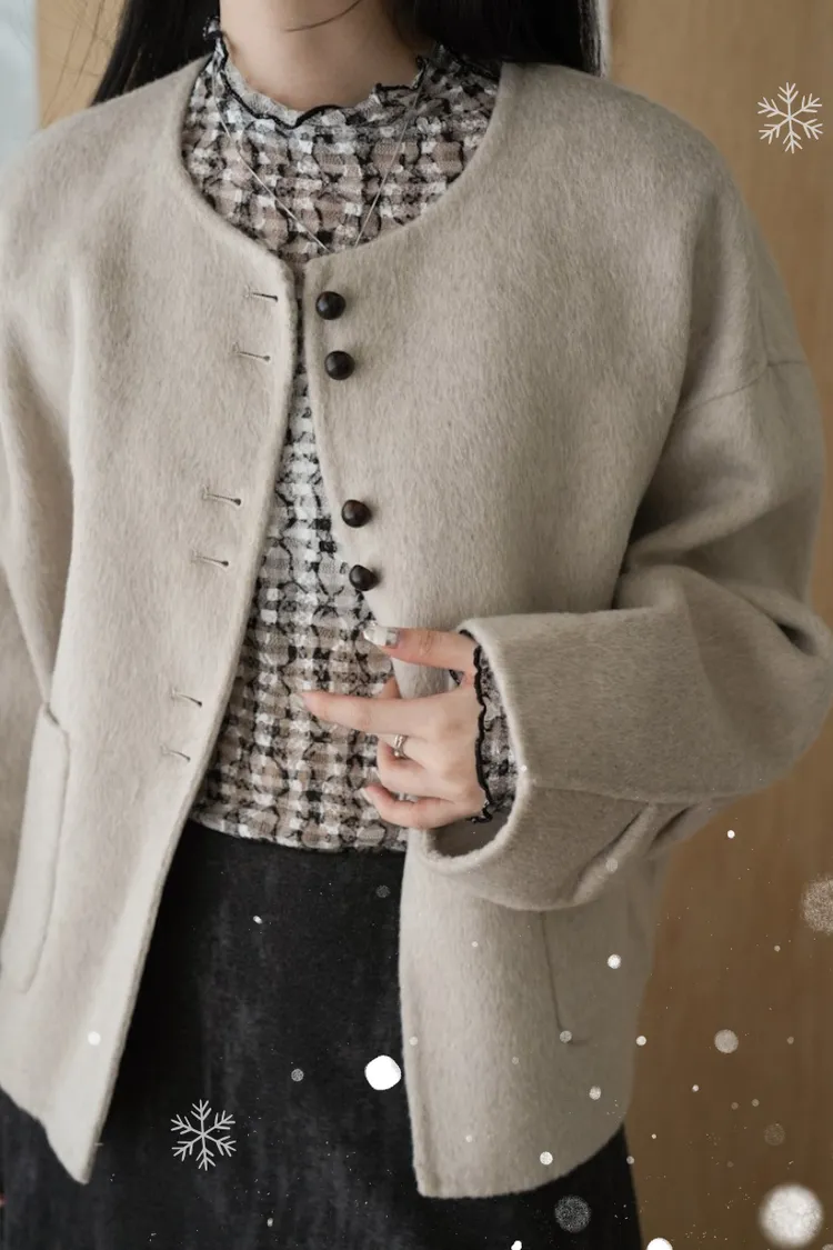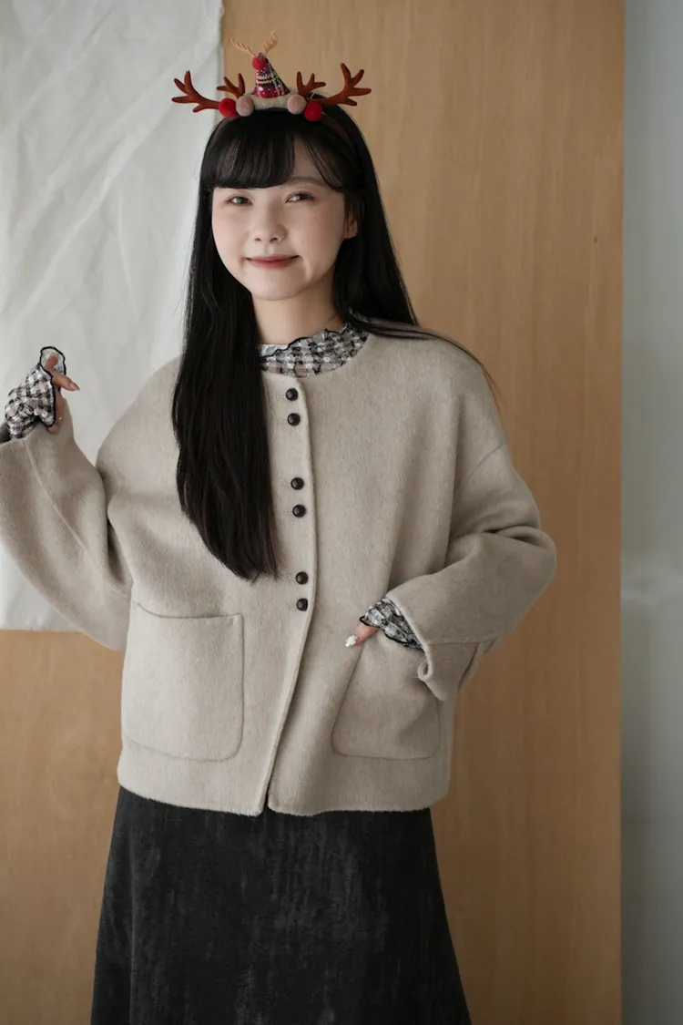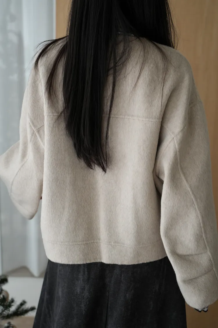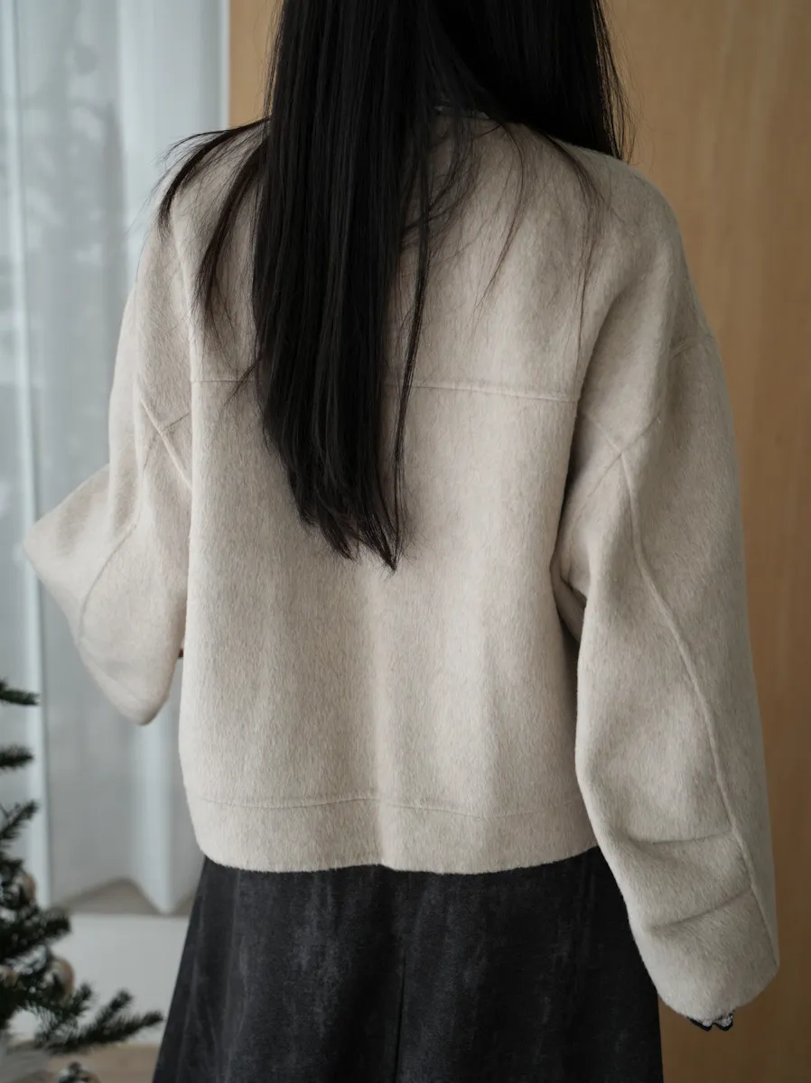 溫柔到位 豆豆跳釦羊絨口袋外套