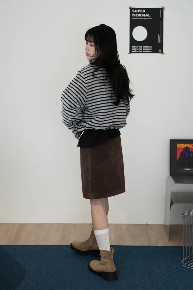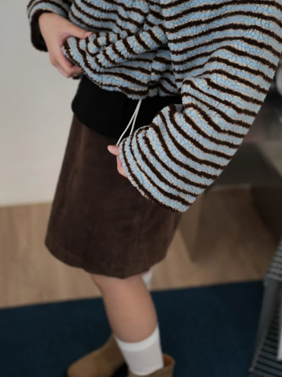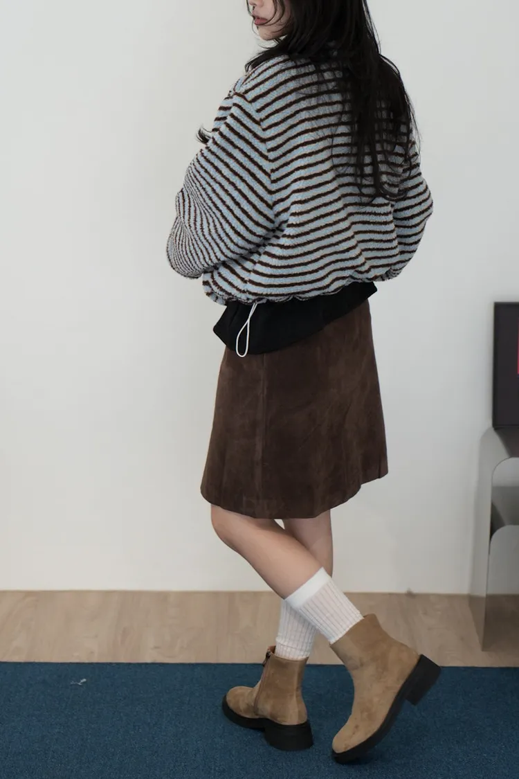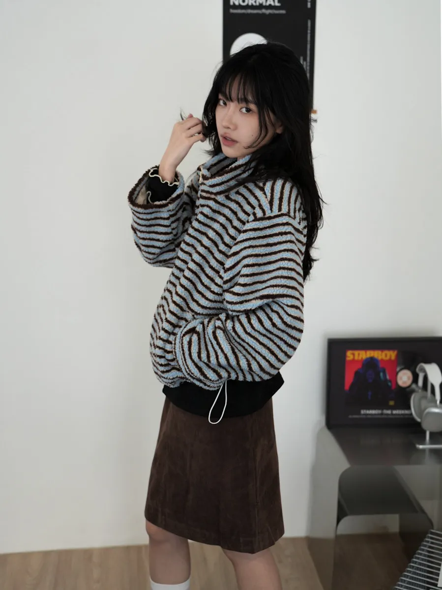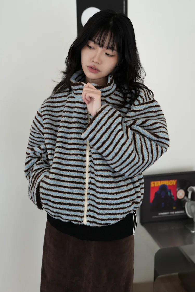 出片秘訣條紋半高領羊羔毛拉鍊外套