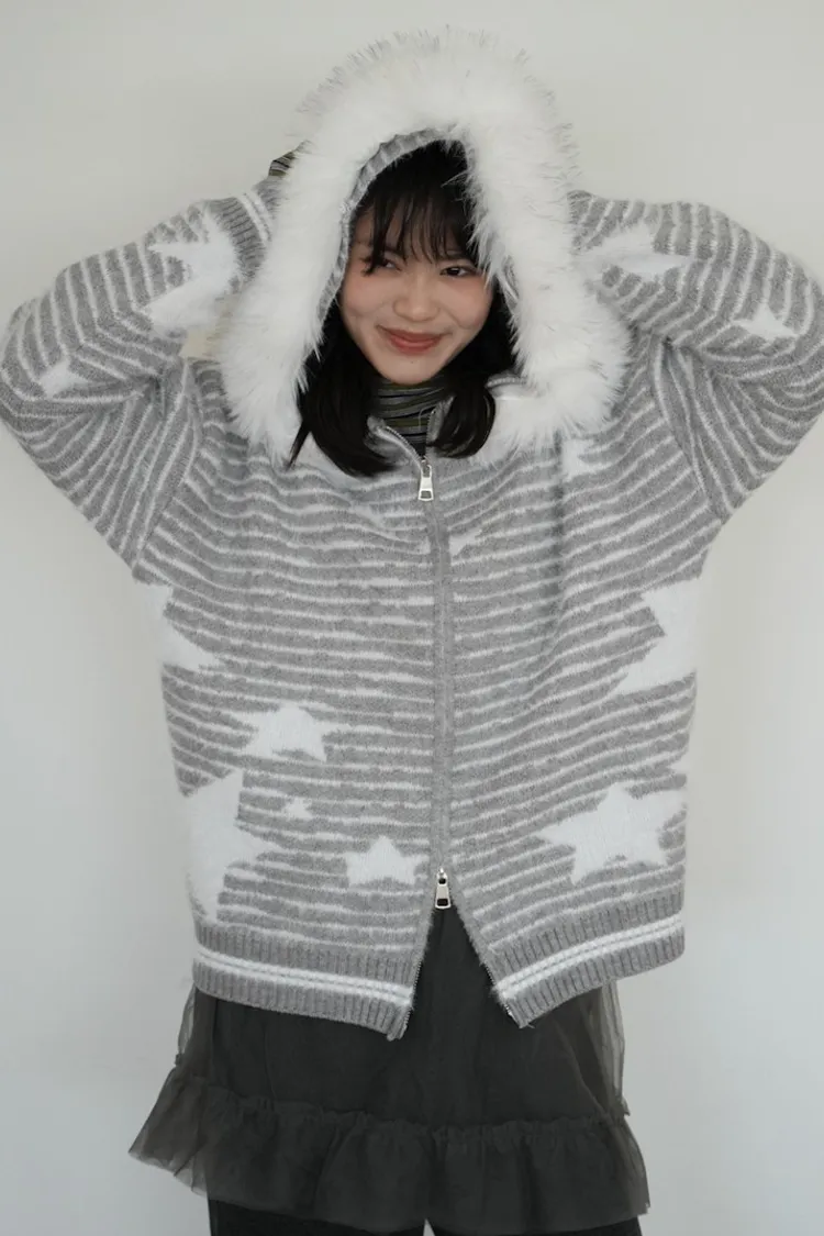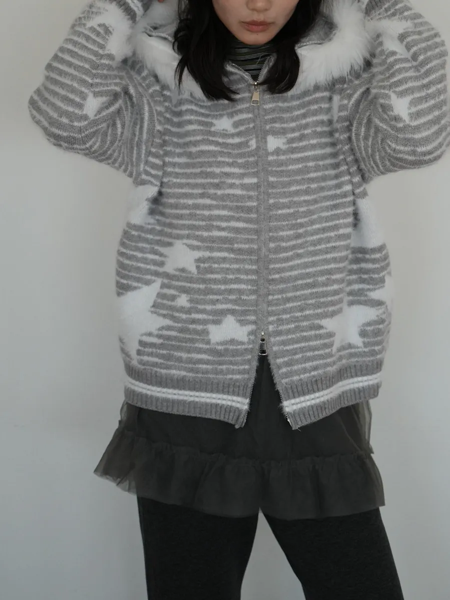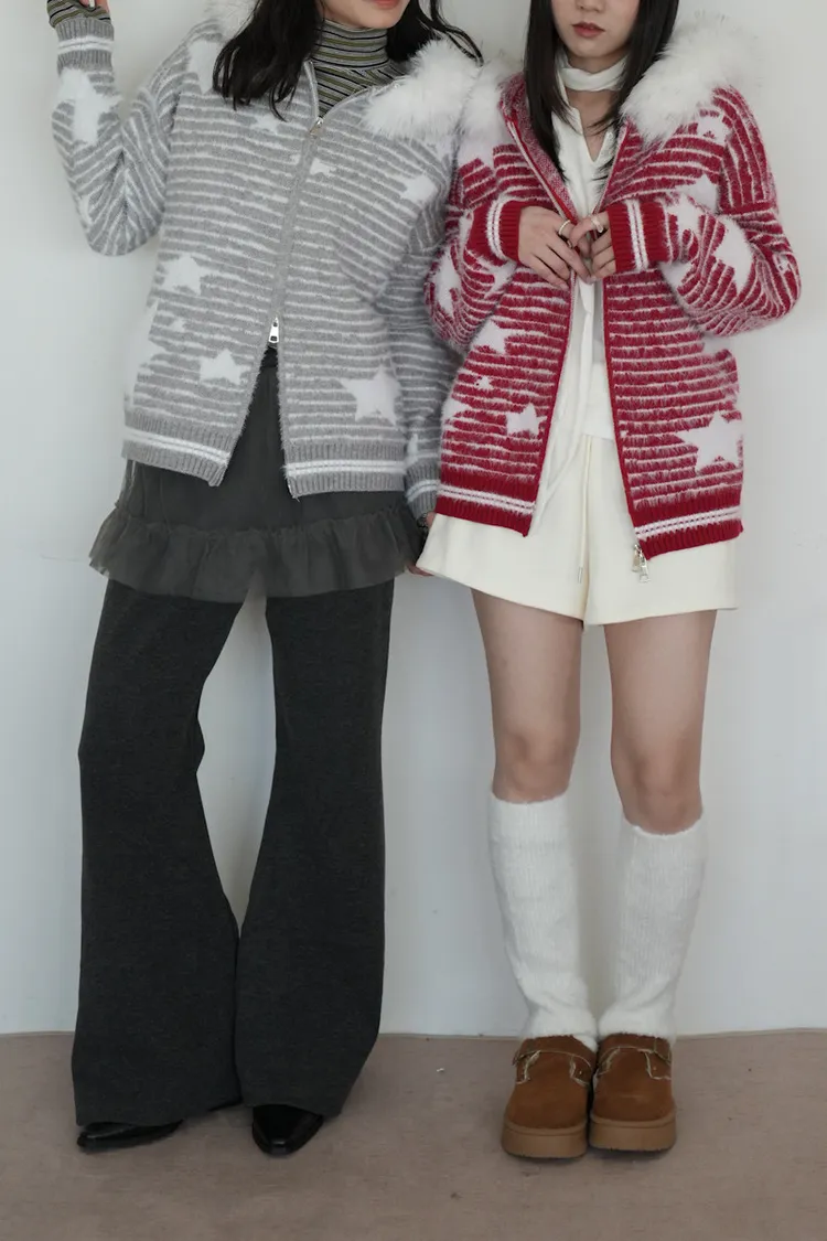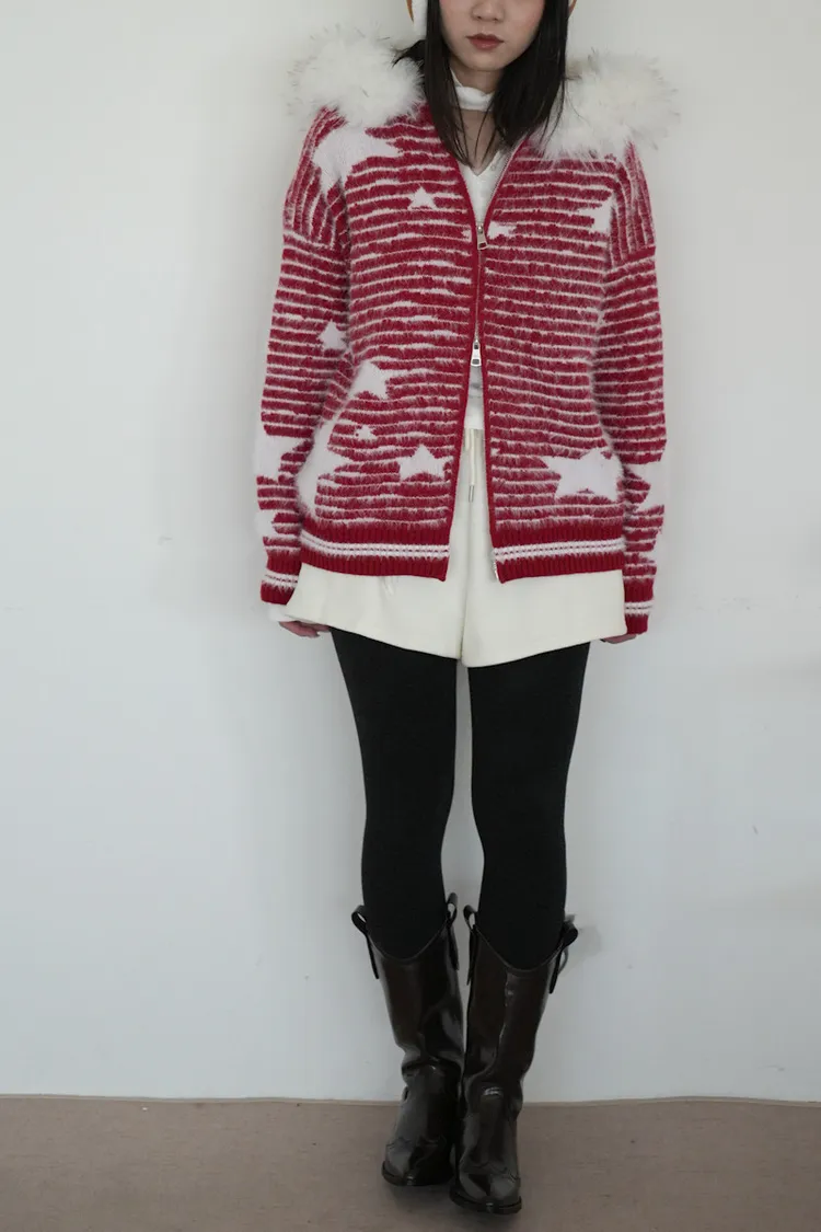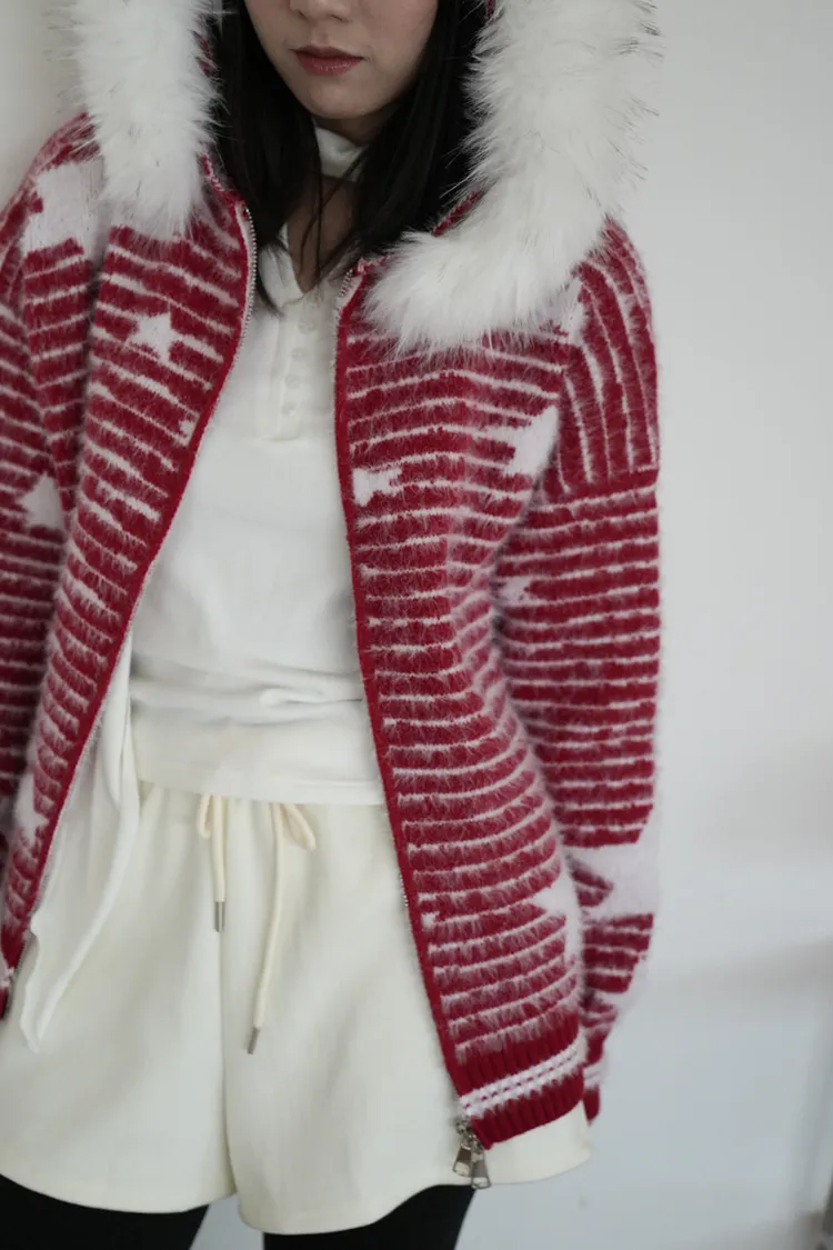 -星星get!連帽毛毛可拆毛衣外套 紅6灰1