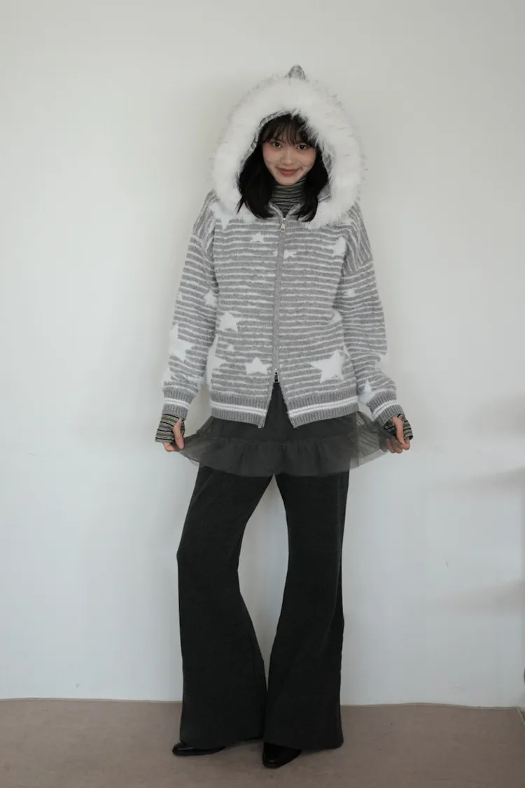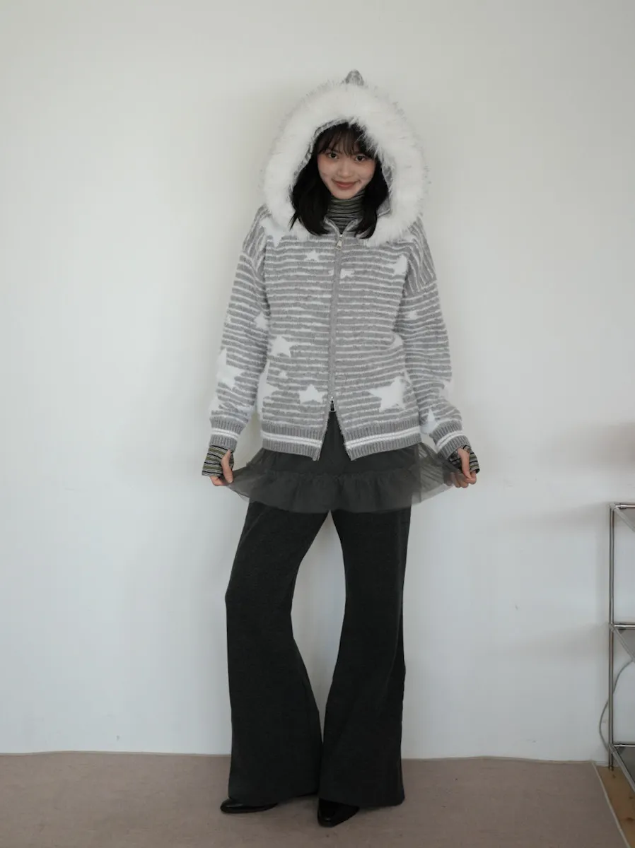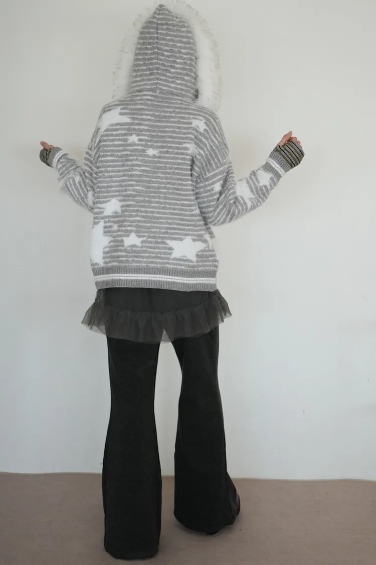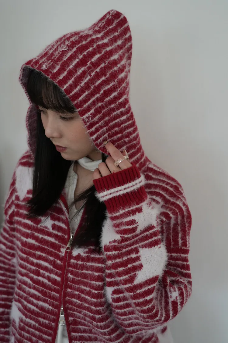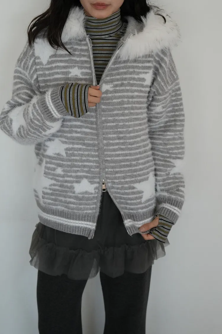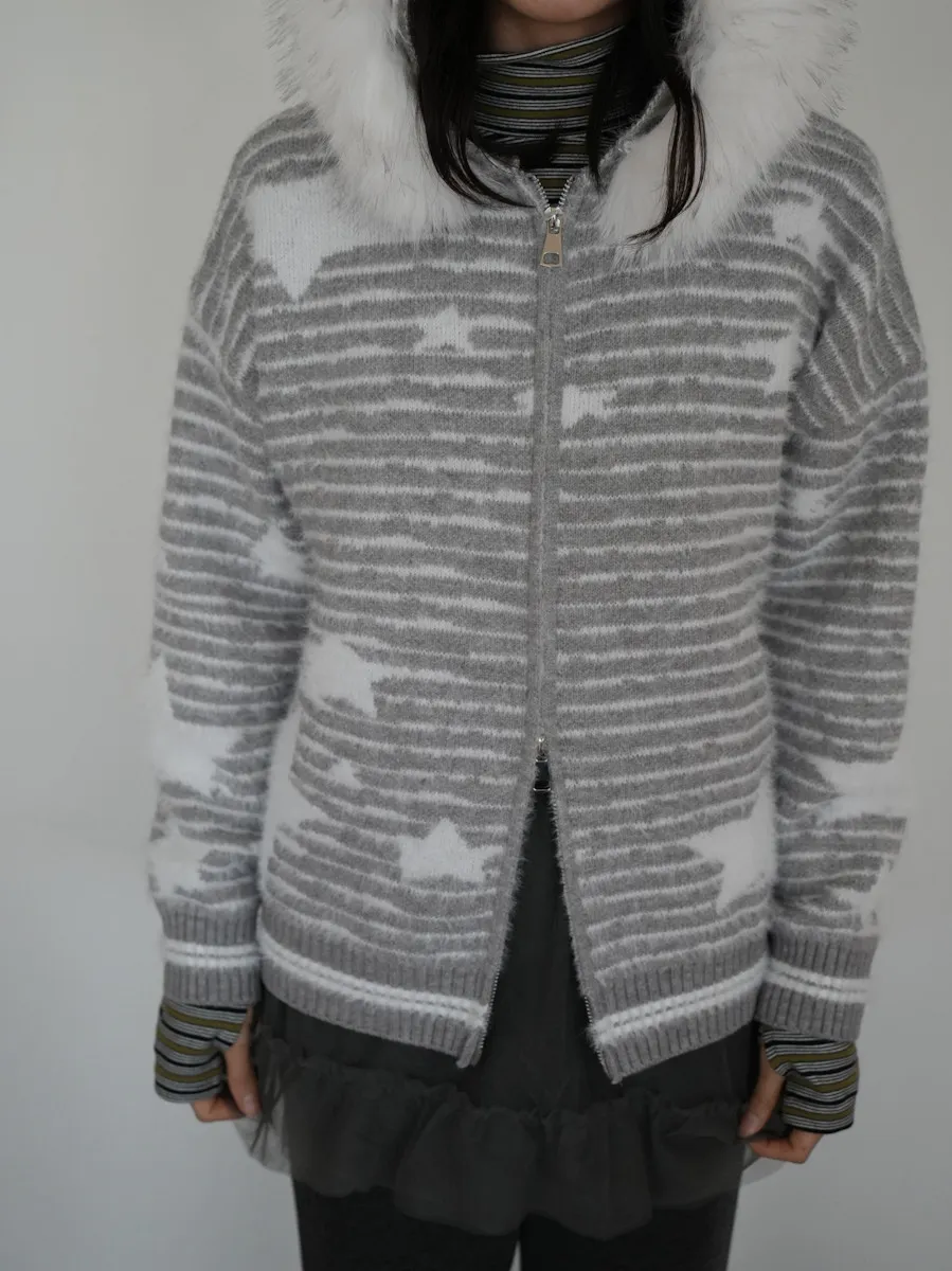 -星星get!連帽毛毛可拆毛衣外套 紅6灰1