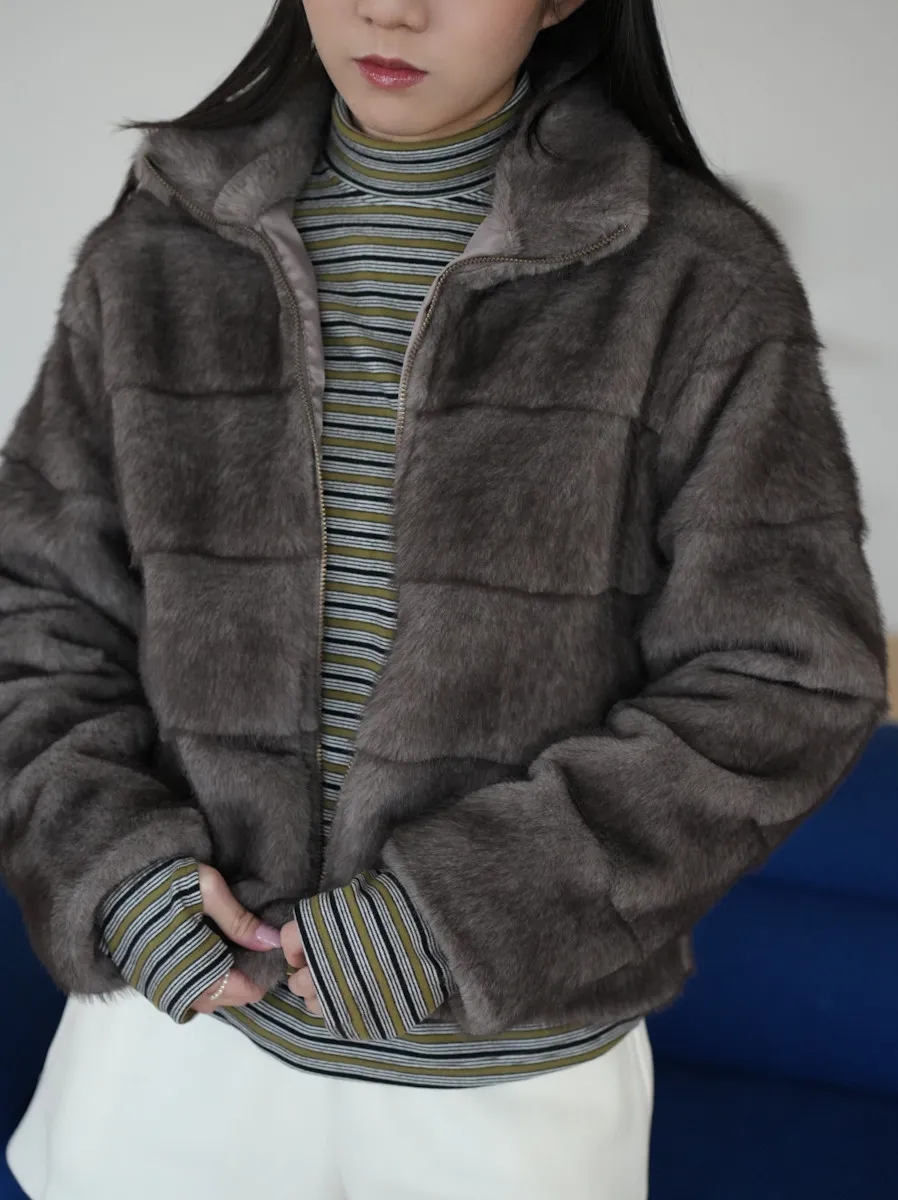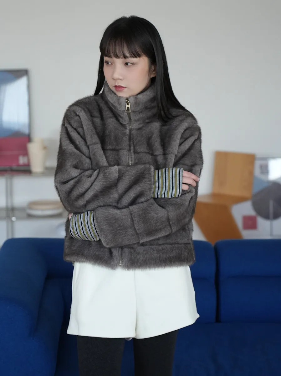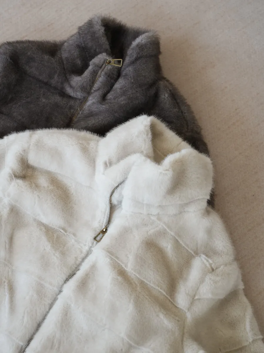 -點點不一樣的!貴貴短毛拉鍊外套 米白1