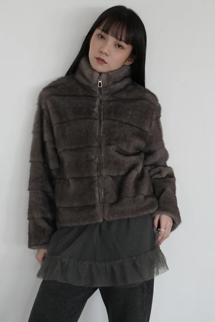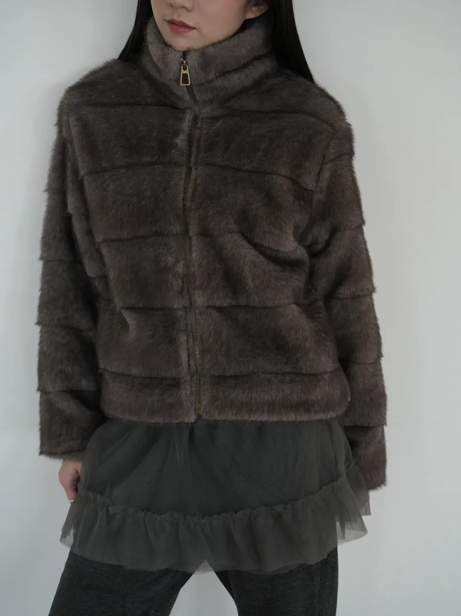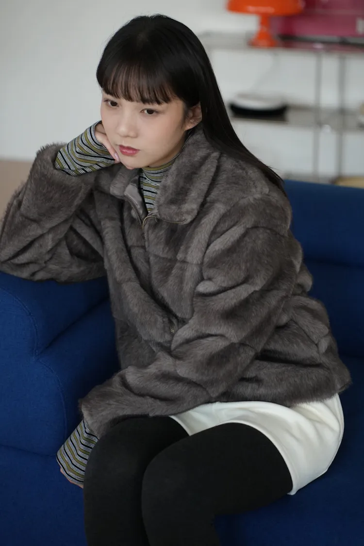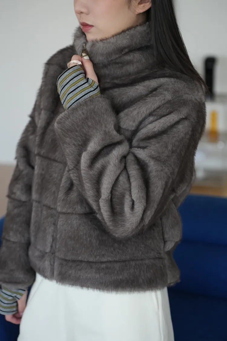 -點點不一樣的!貴貴短毛拉鍊外套 米白1