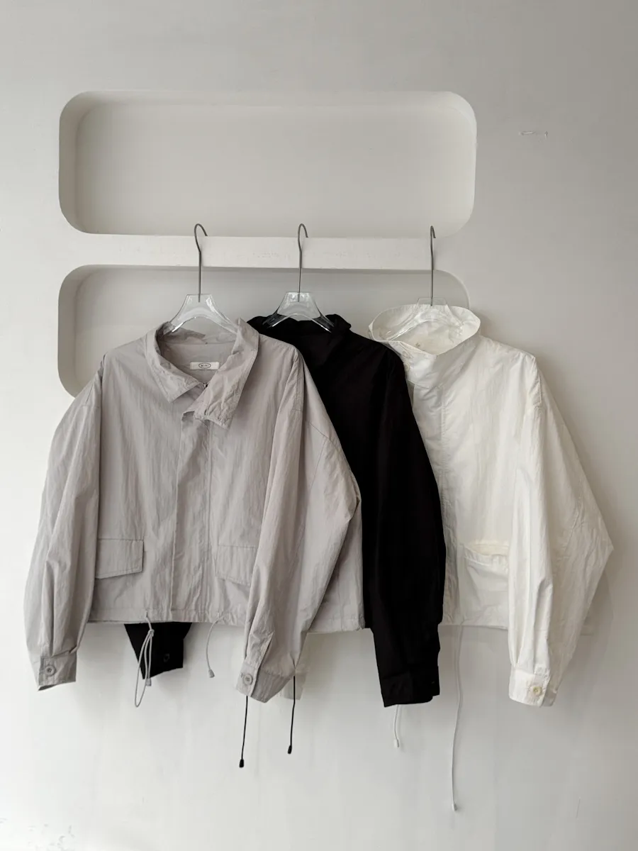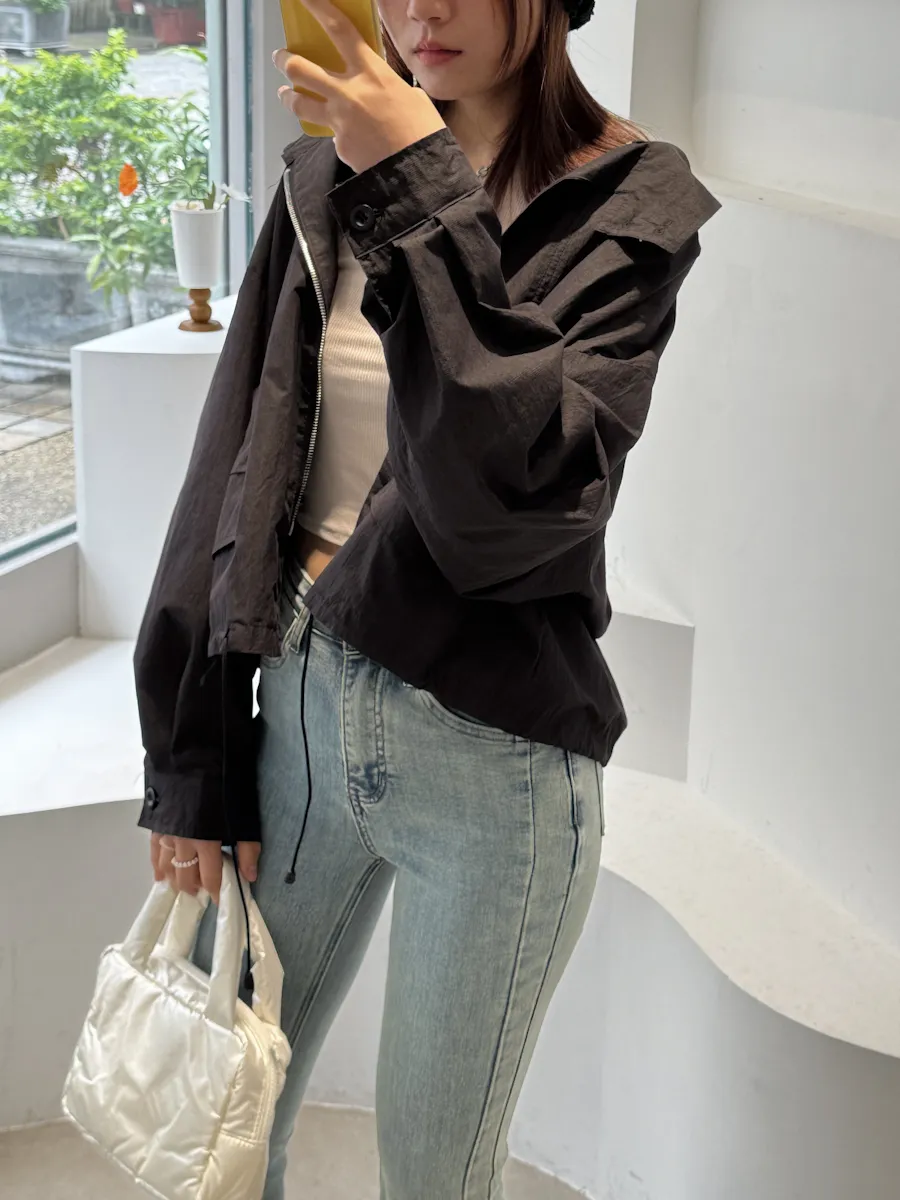 拉鍊式,正面口袋,可立領,下擺有抽繩