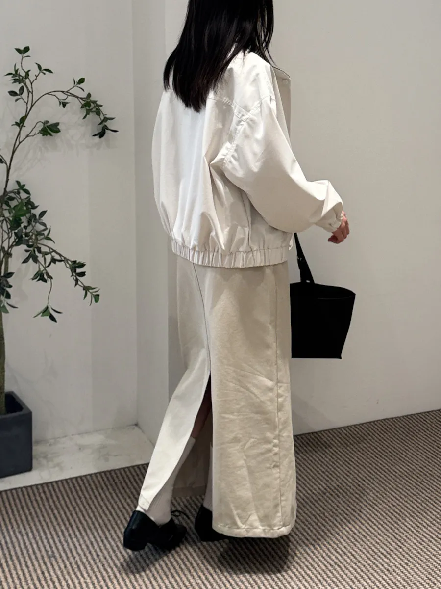 拉鍊式開口上下各一壓釦,手袖、下襬鬆緊帶縮口,有口袋,棉花糖可