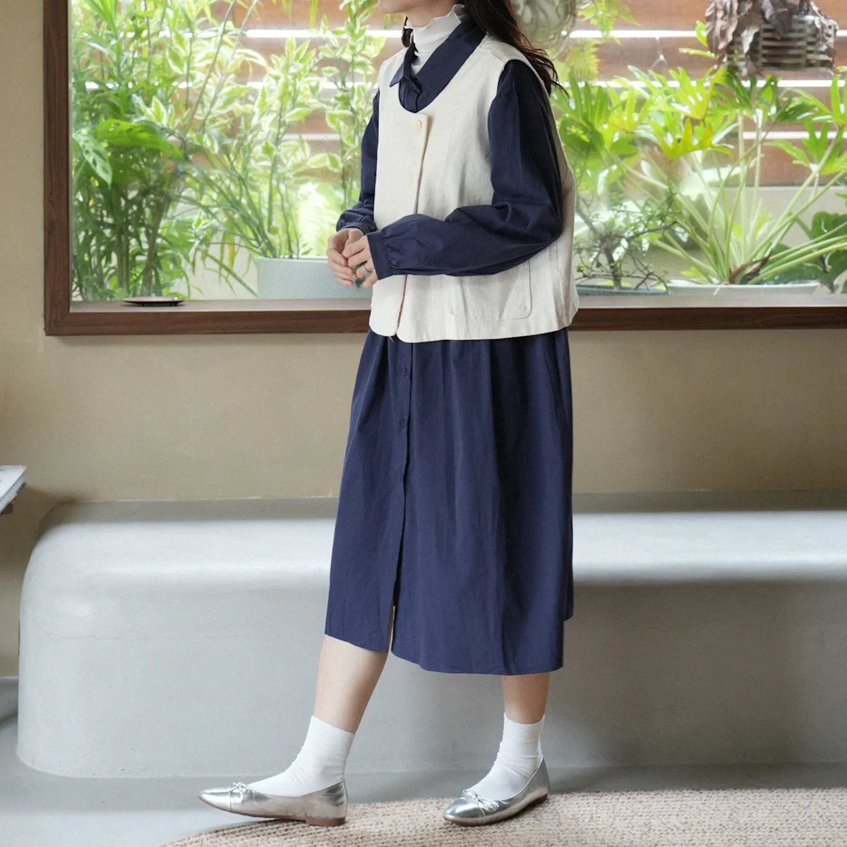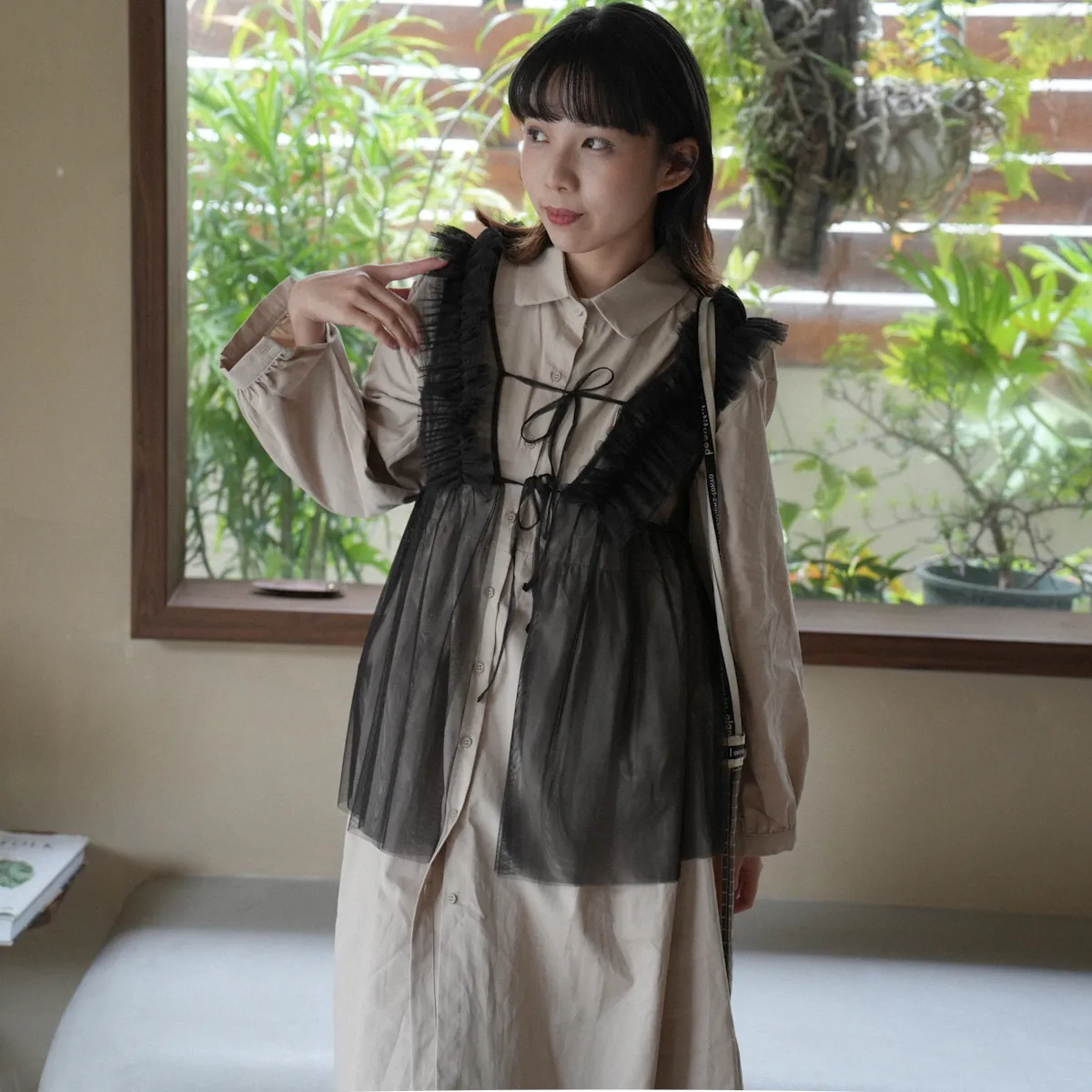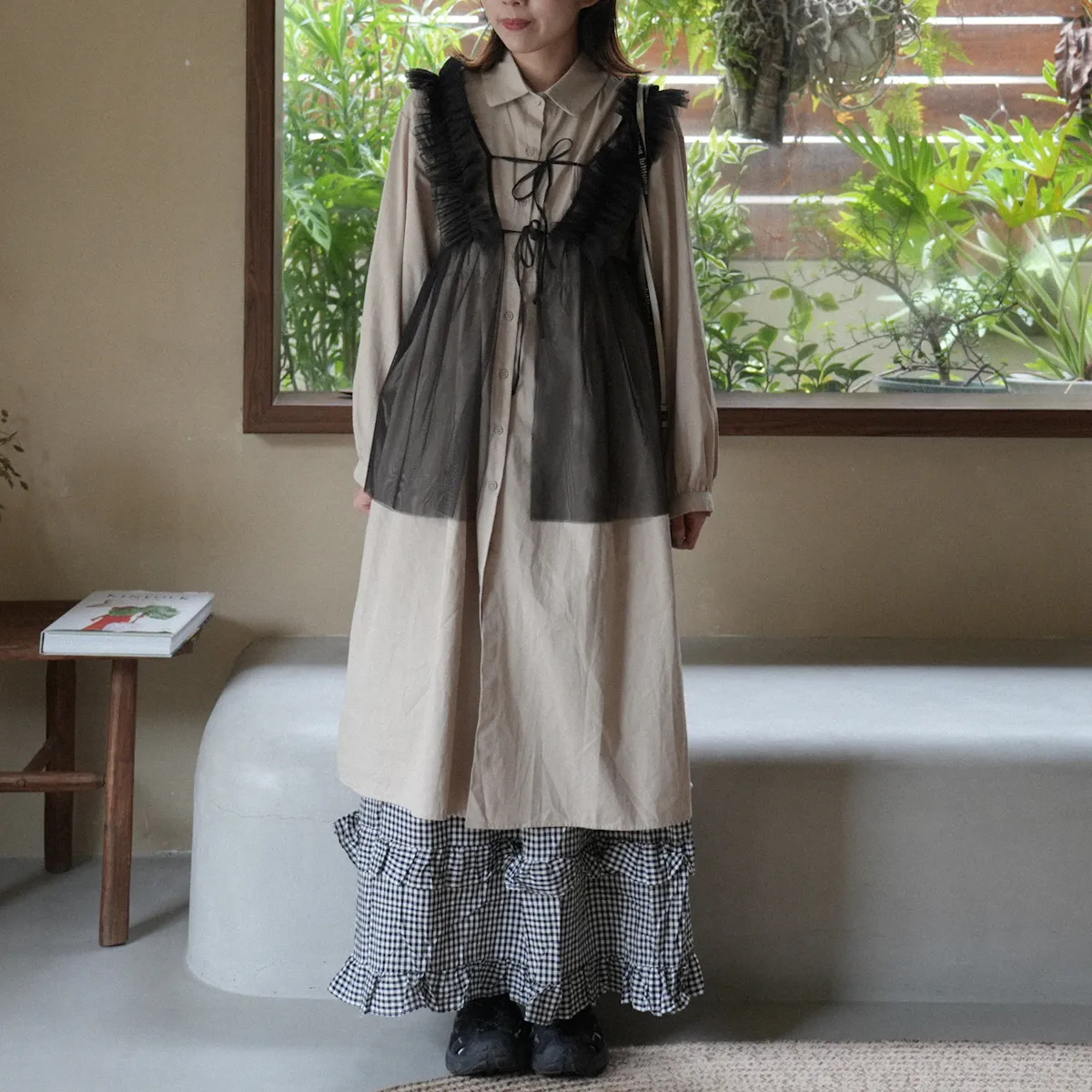 【SHOWROOM MADE】毛邊補釘拚接襯衫洋裝 3color