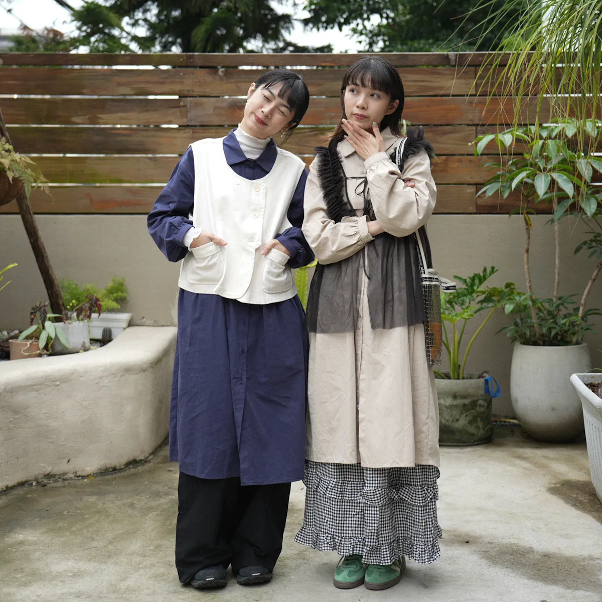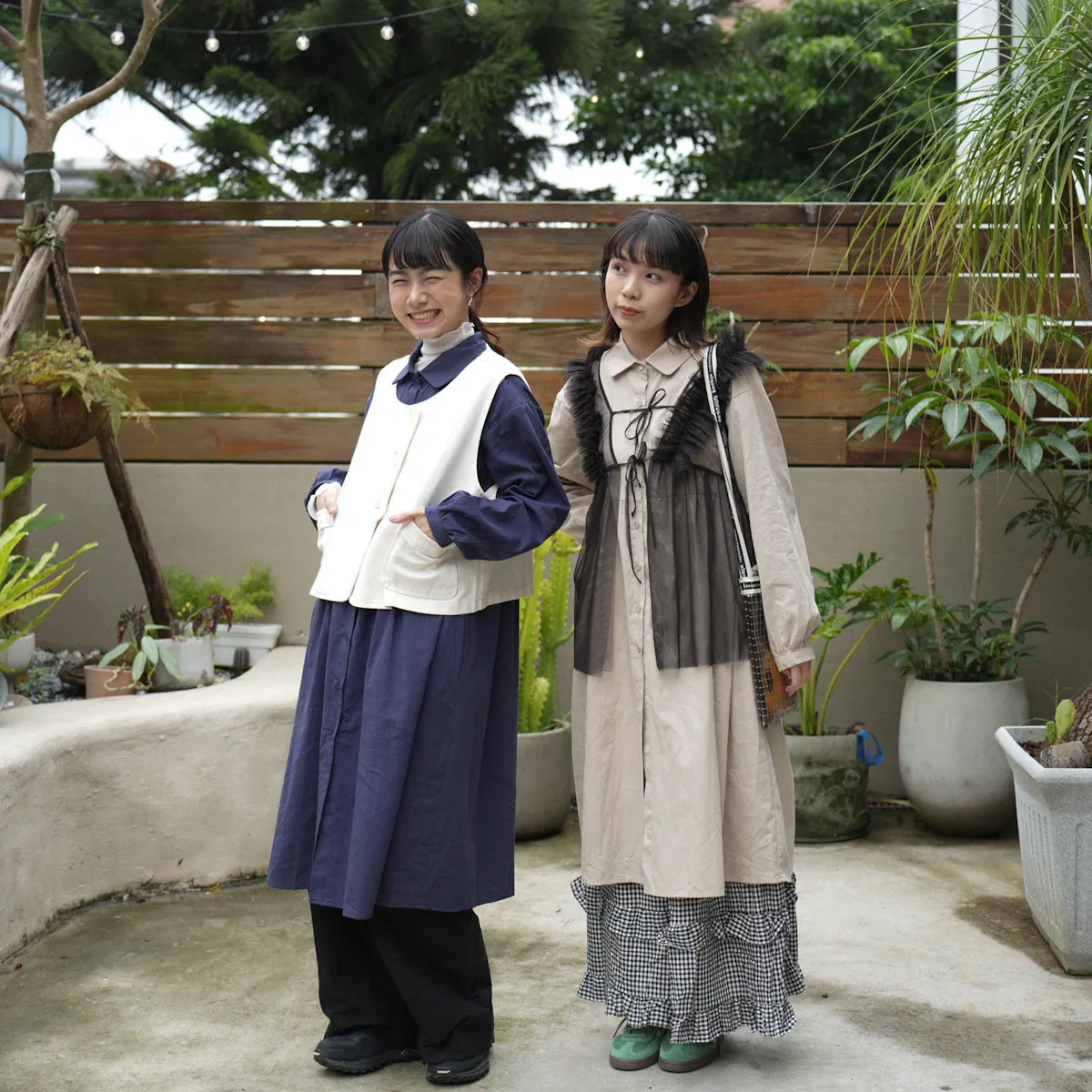 【THE SHOW ROOM MADE】毛邊補釘拚接襯衫洋裝 3color