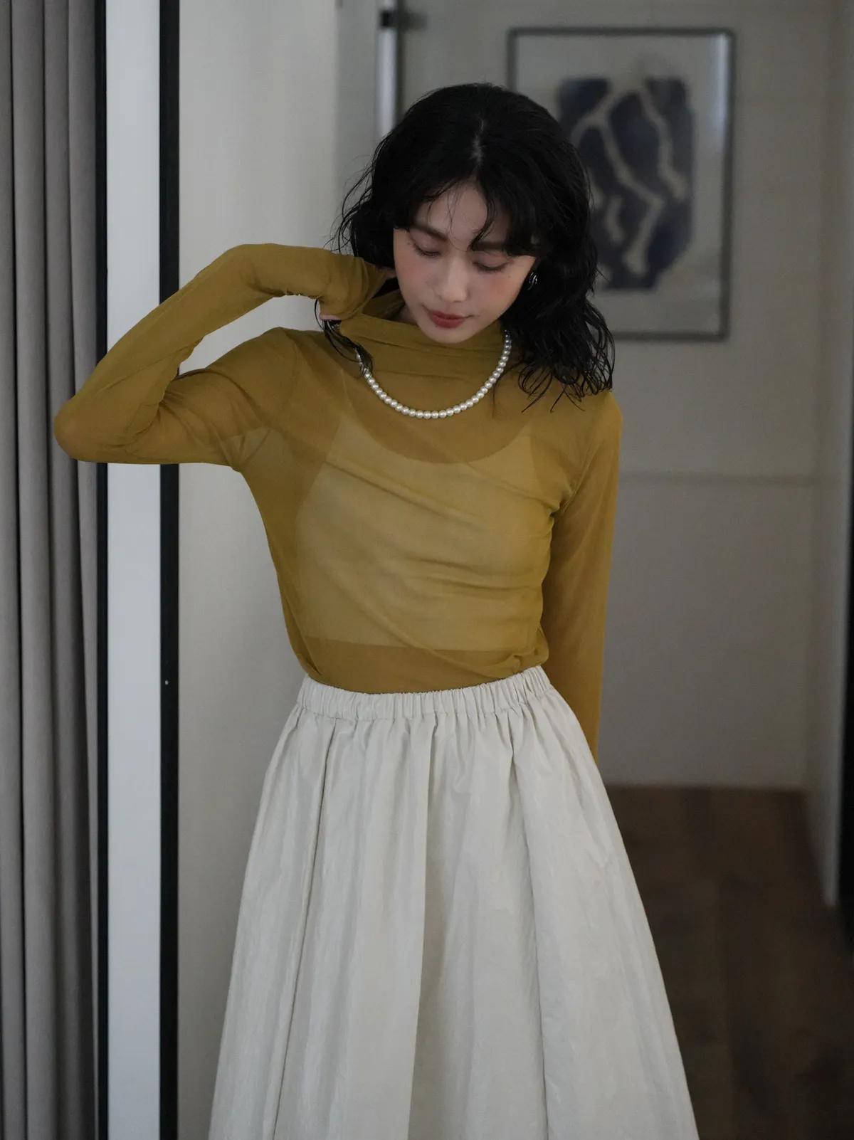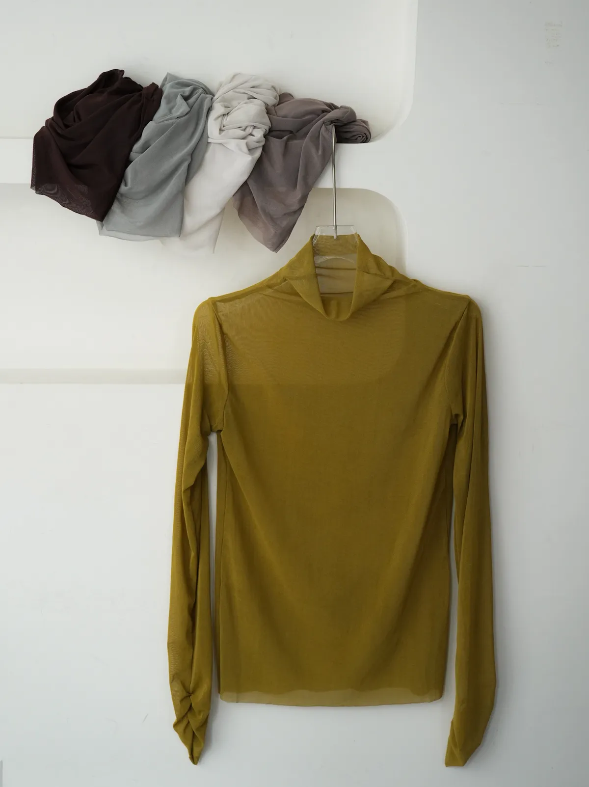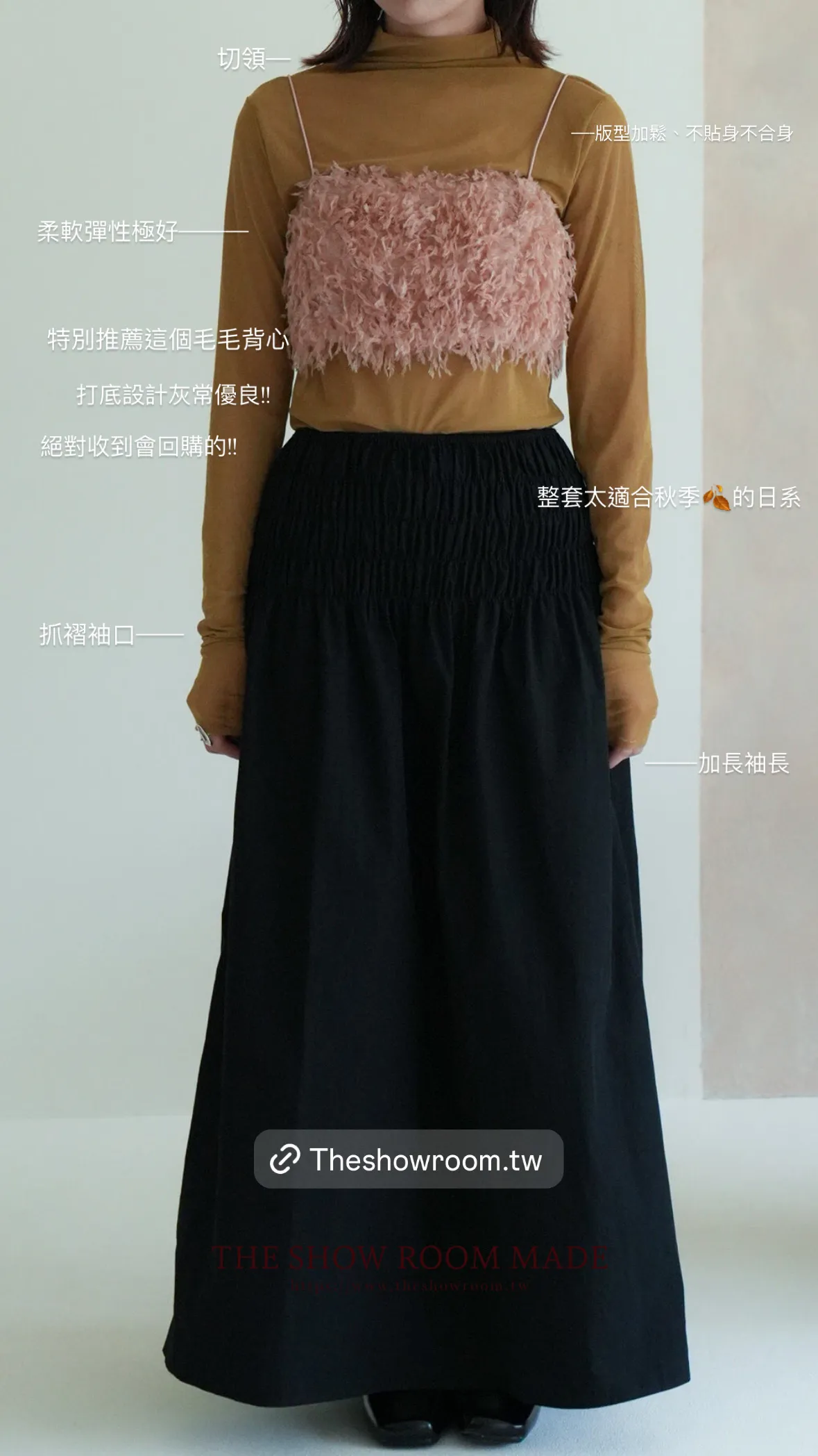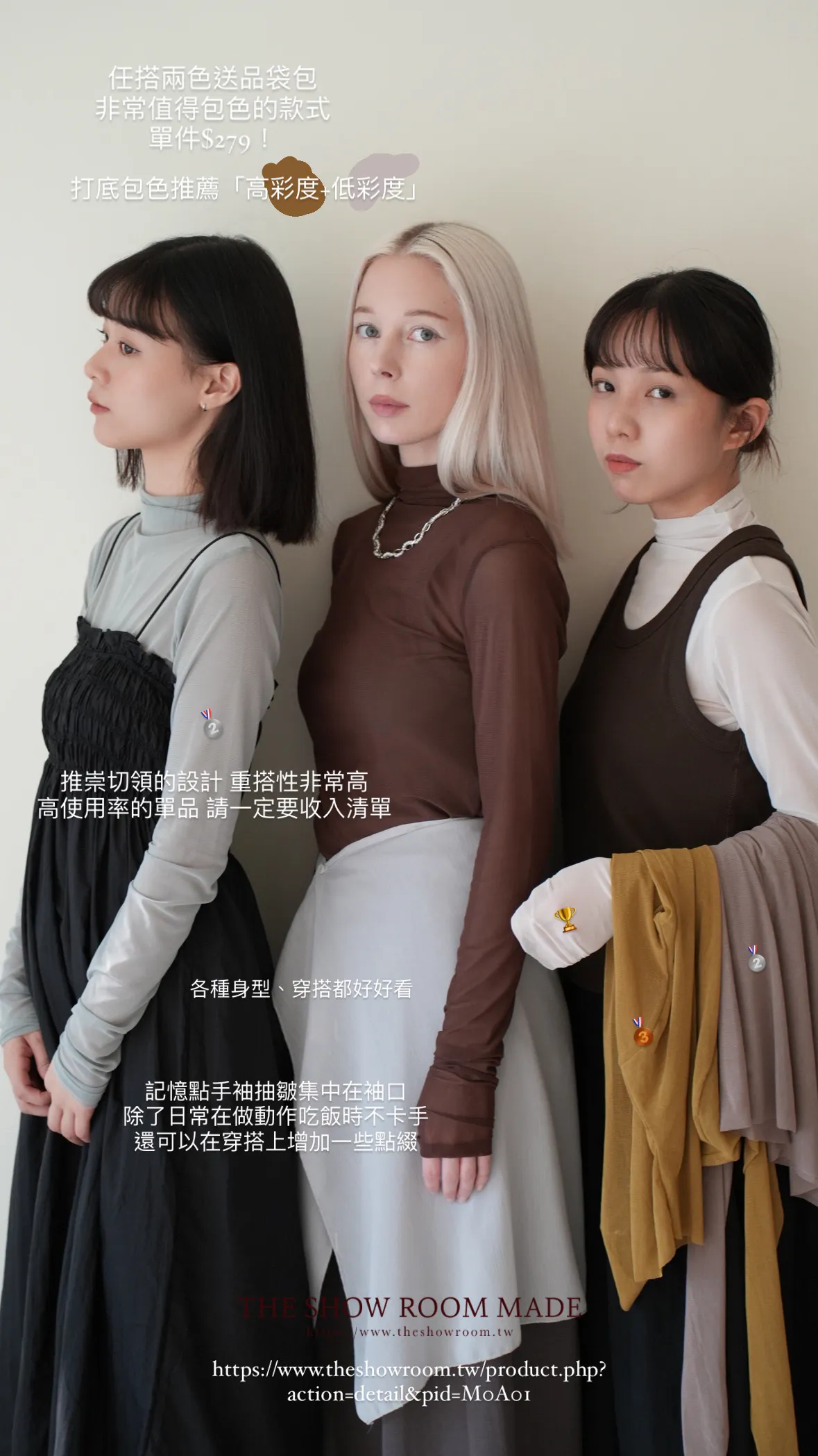【SHOWROOM MADE】疊穿美學袖口抓褶切高領打底上衣 5color