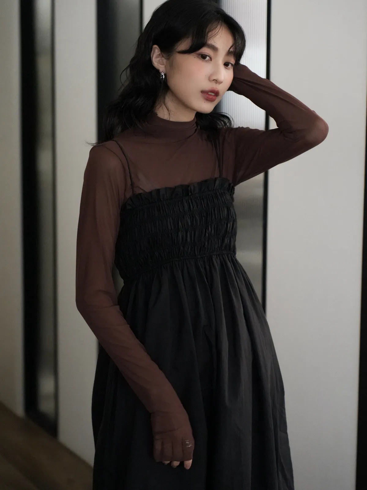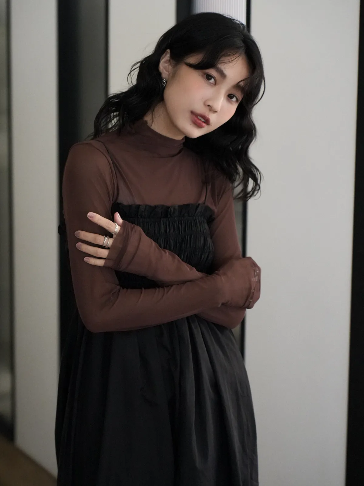 【SHOWROOM MADE】疊穿美學袖口抓褶切高領打底上衣 5color