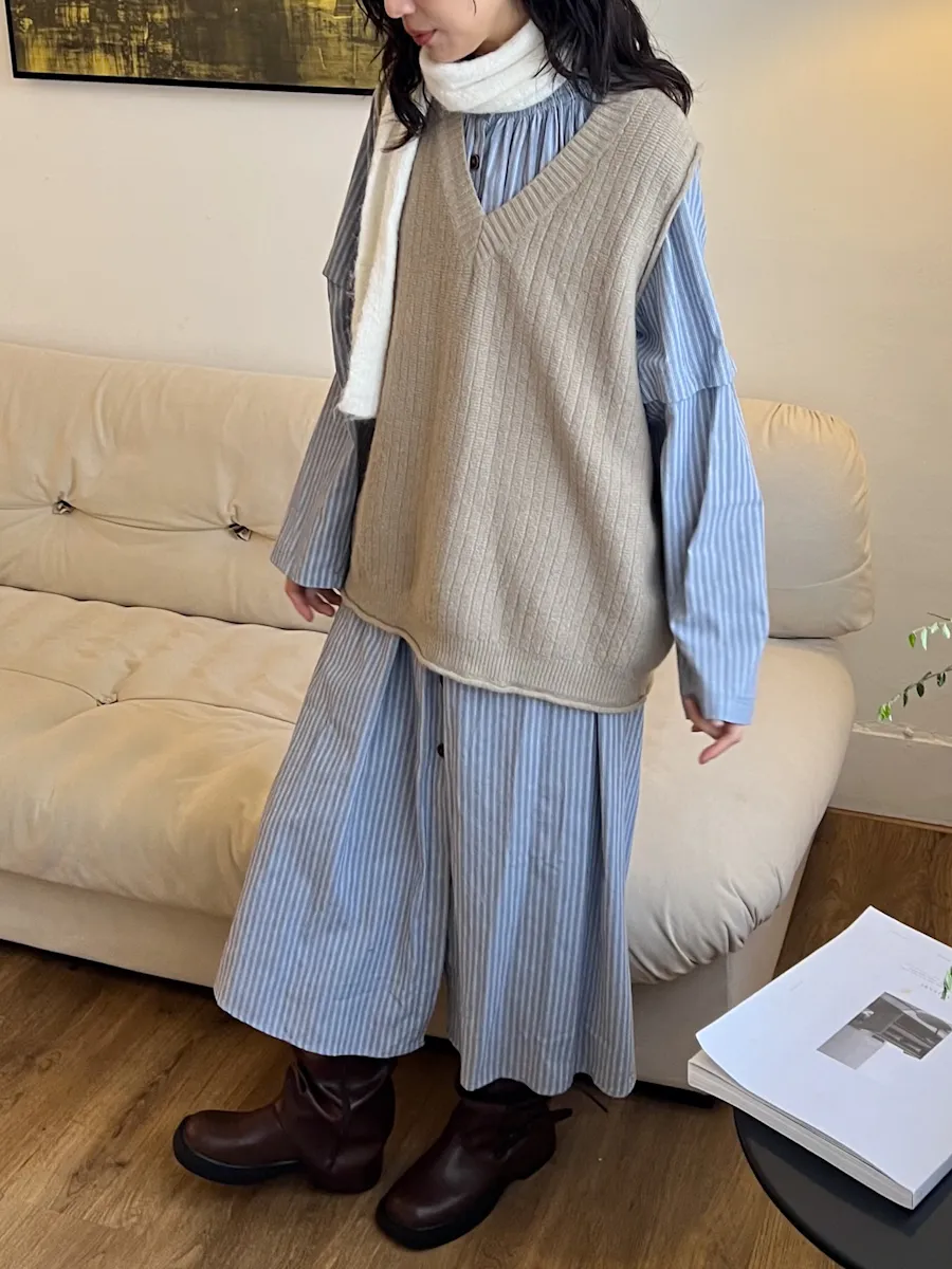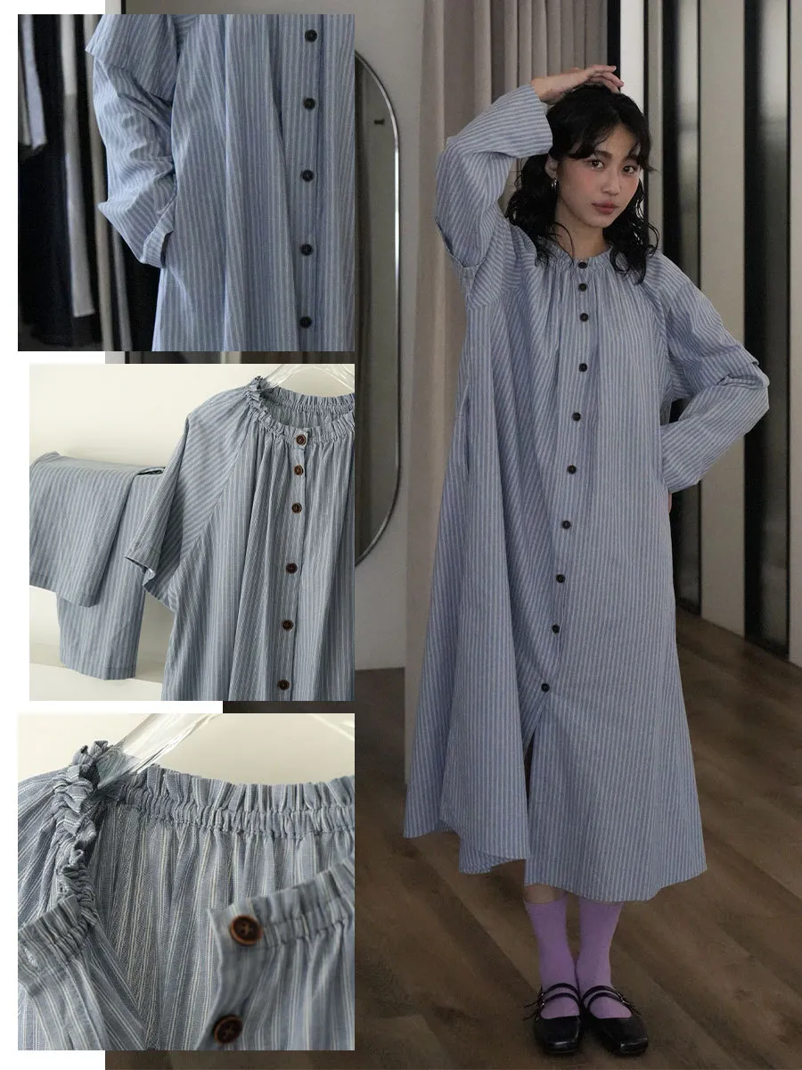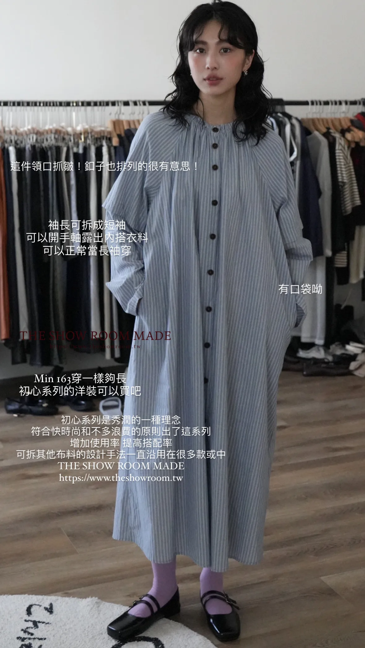 【SHOWROOM MADE】初心系列 品味延伸直條紋圓領襯衫長洋裝 2color
