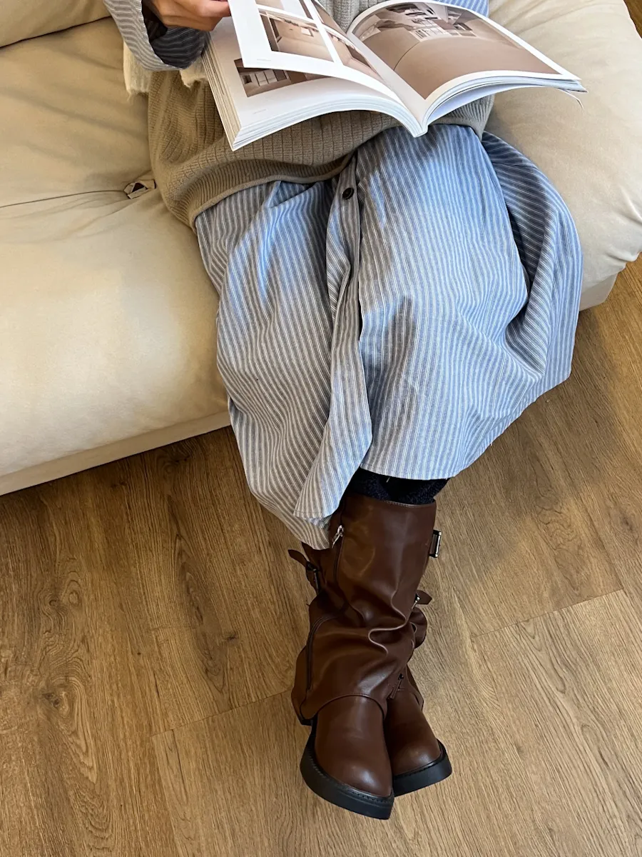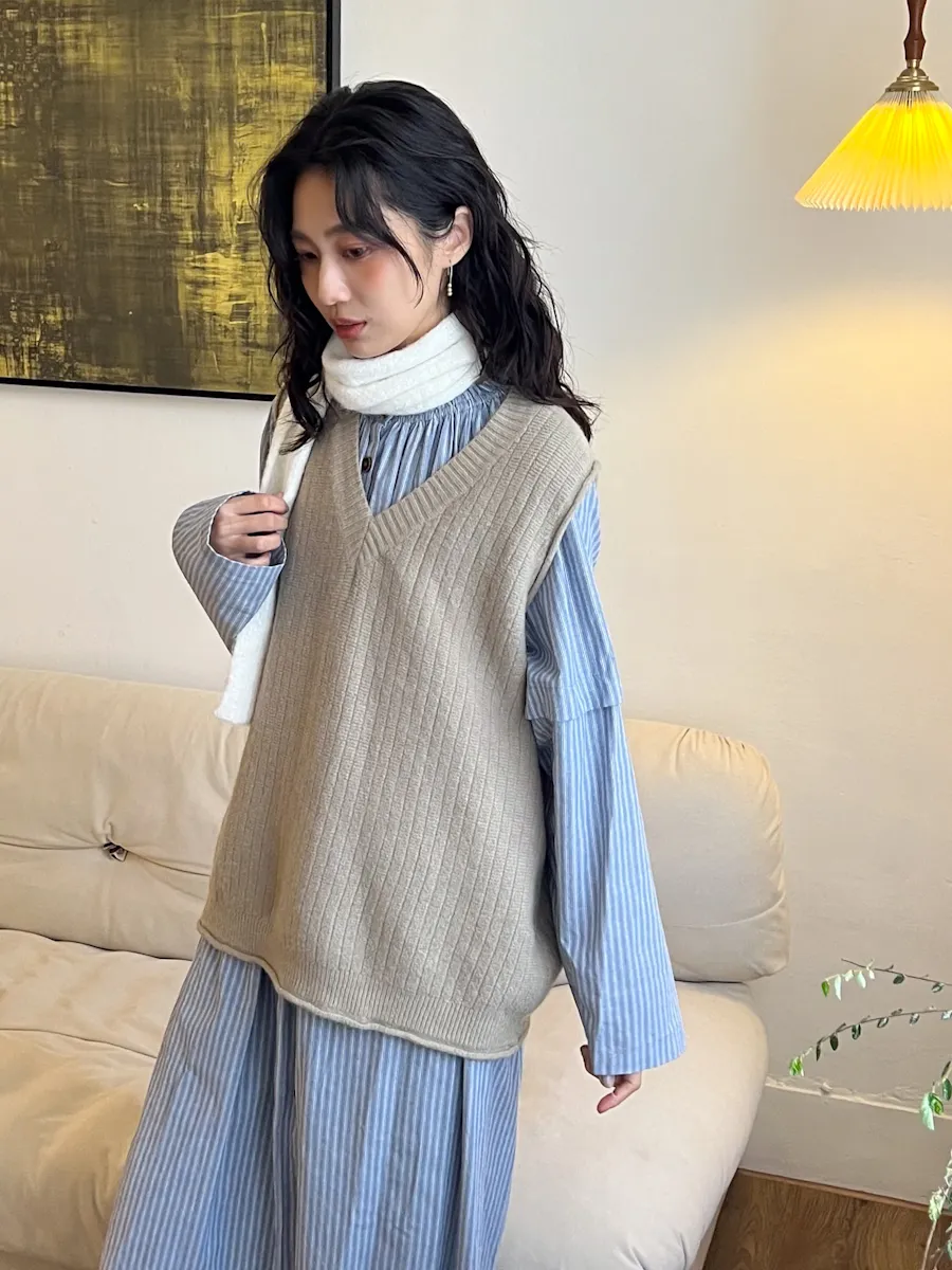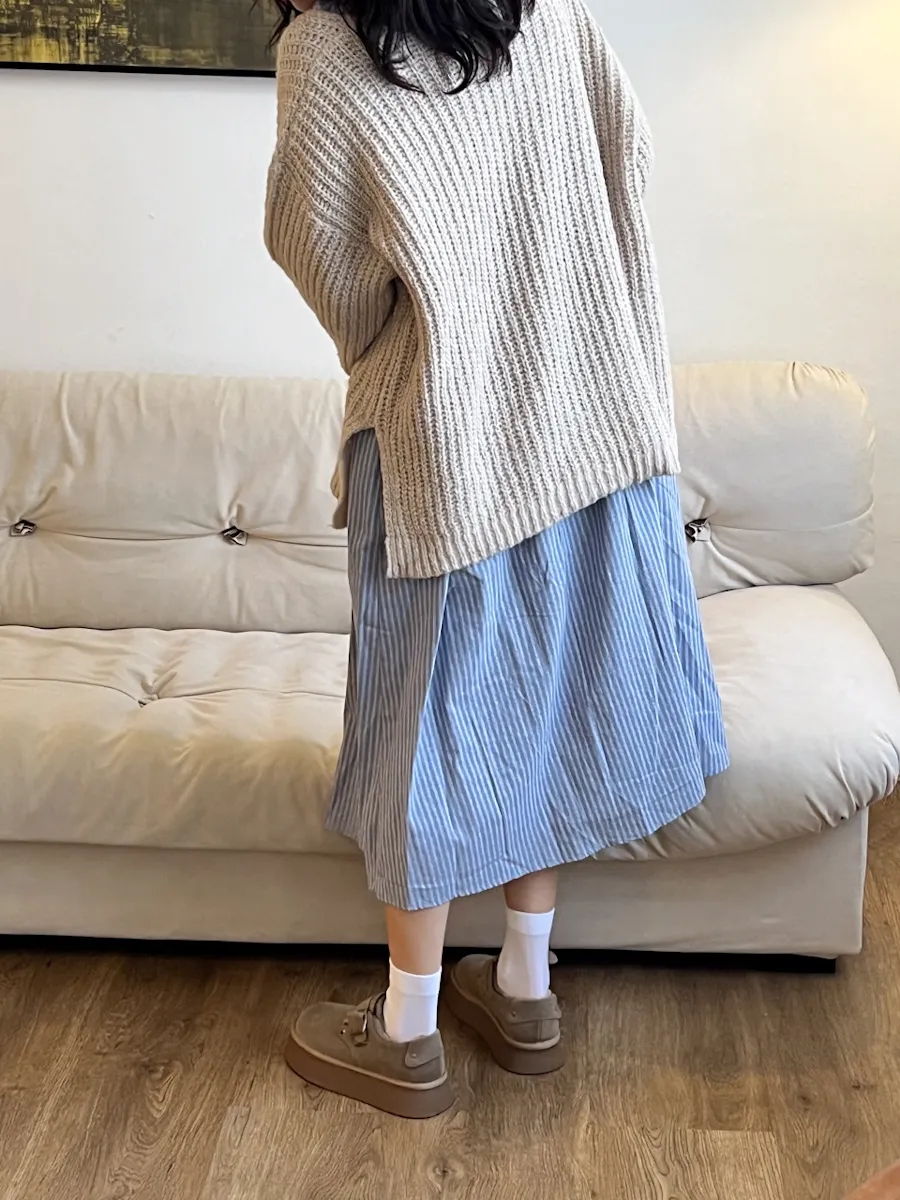 【SHOWROOM MADE】初心系列 品味延伸直條紋圓領襯衫長洋裝 2color