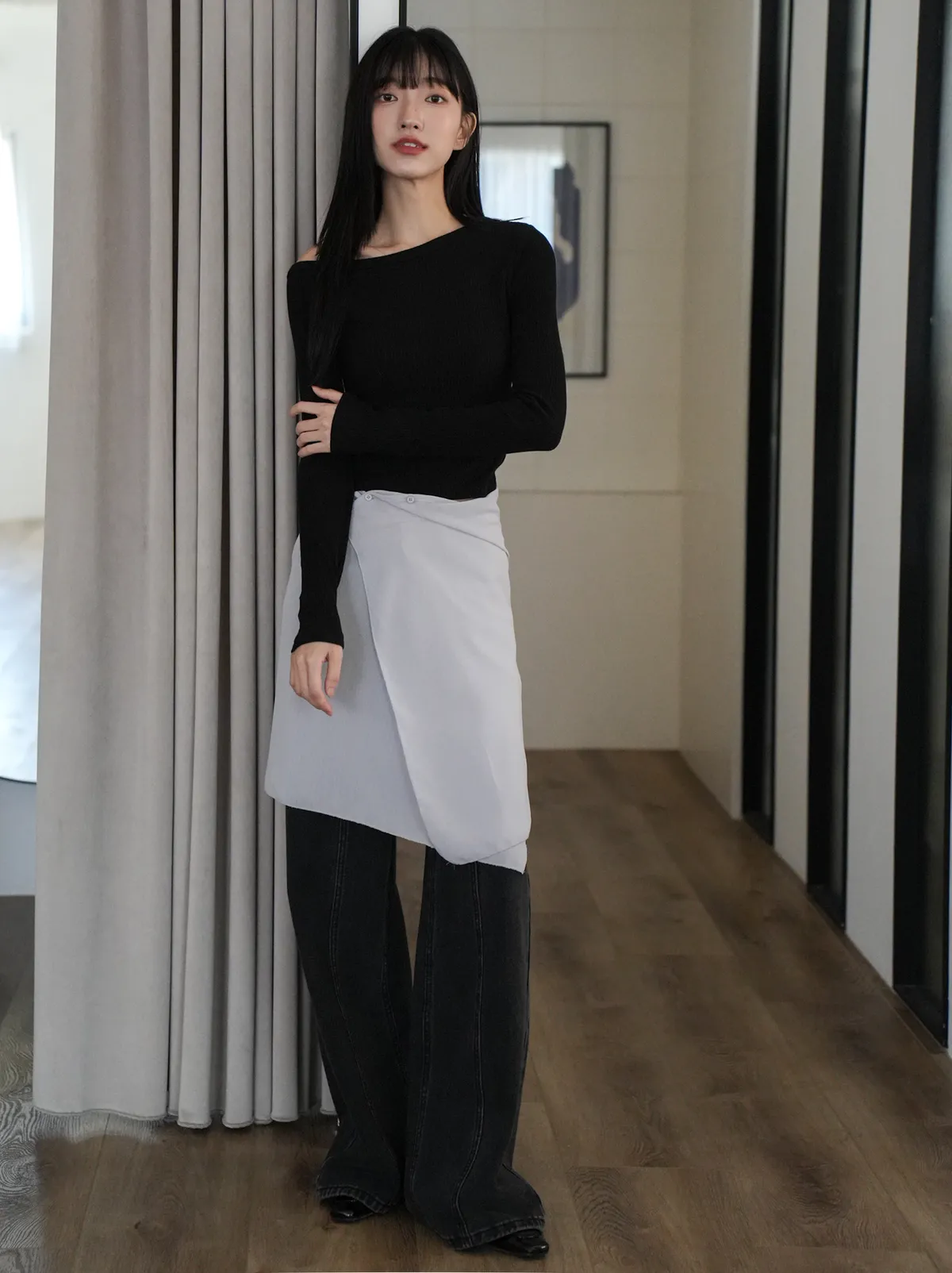 【SHOWROOM MADE】疊穿美學袖口抓褶切高領打底上衣 5color