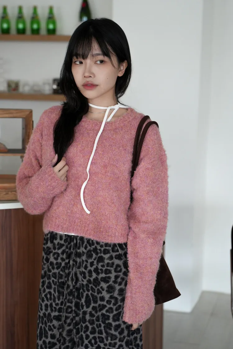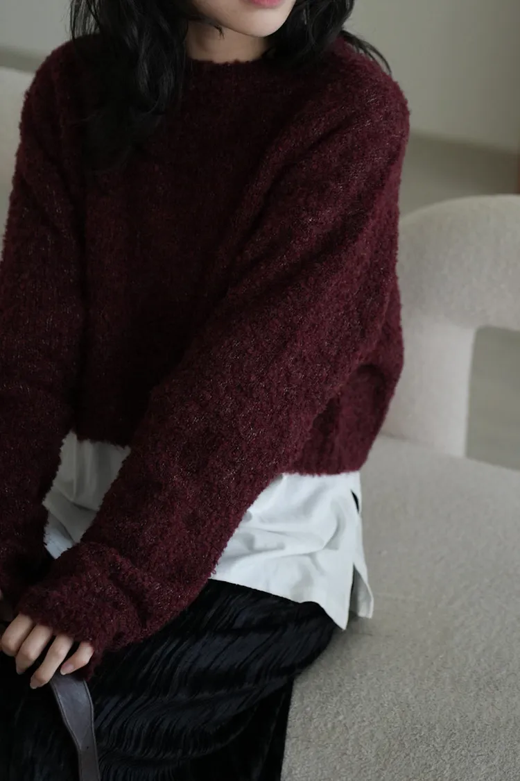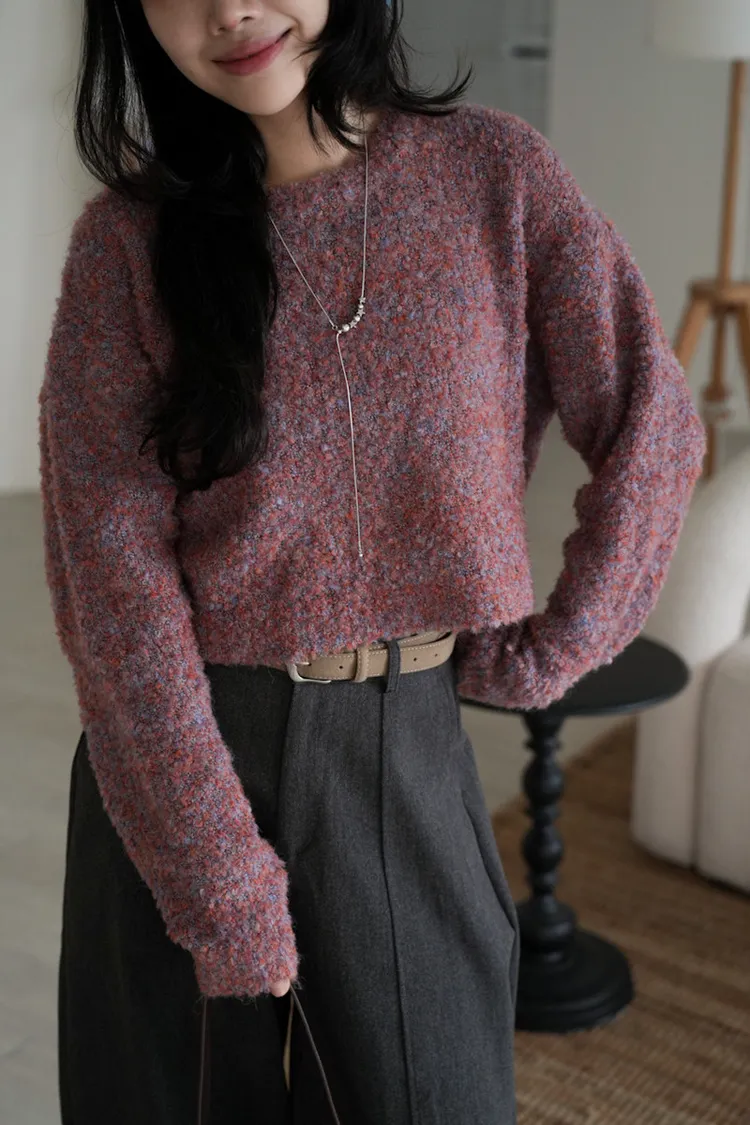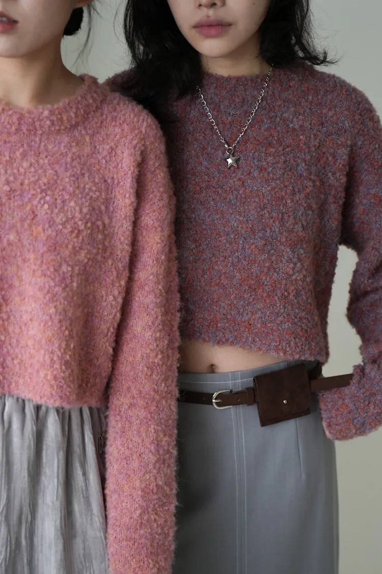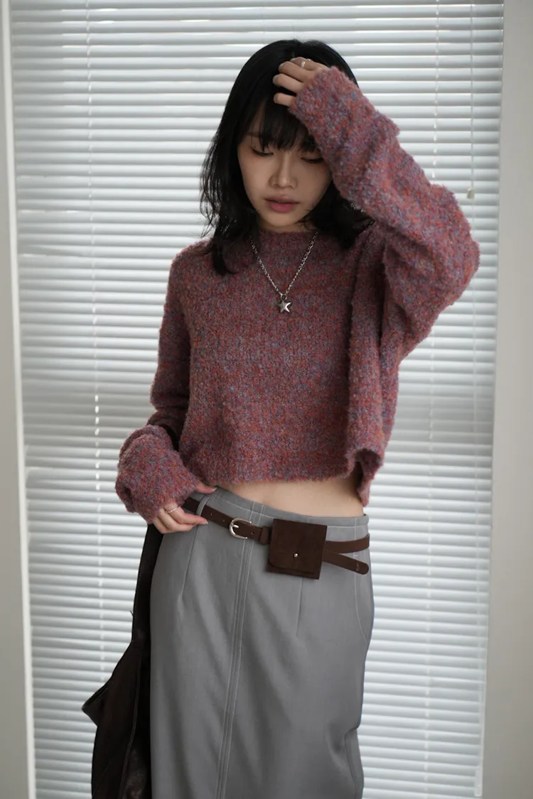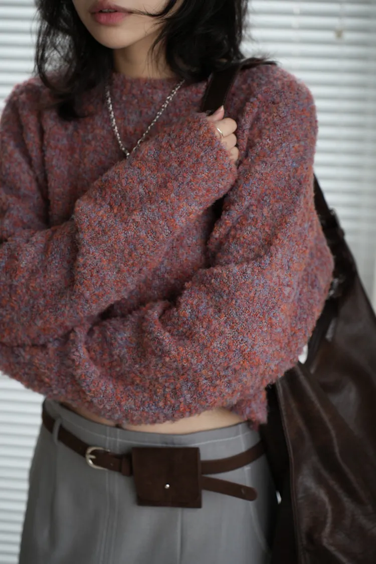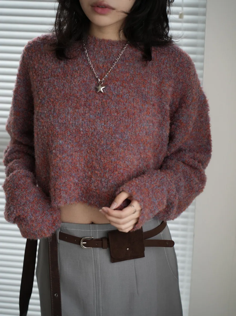 【SHOWROOM MADE】精緻get!狗狗感混毛線短版毛衣 5color