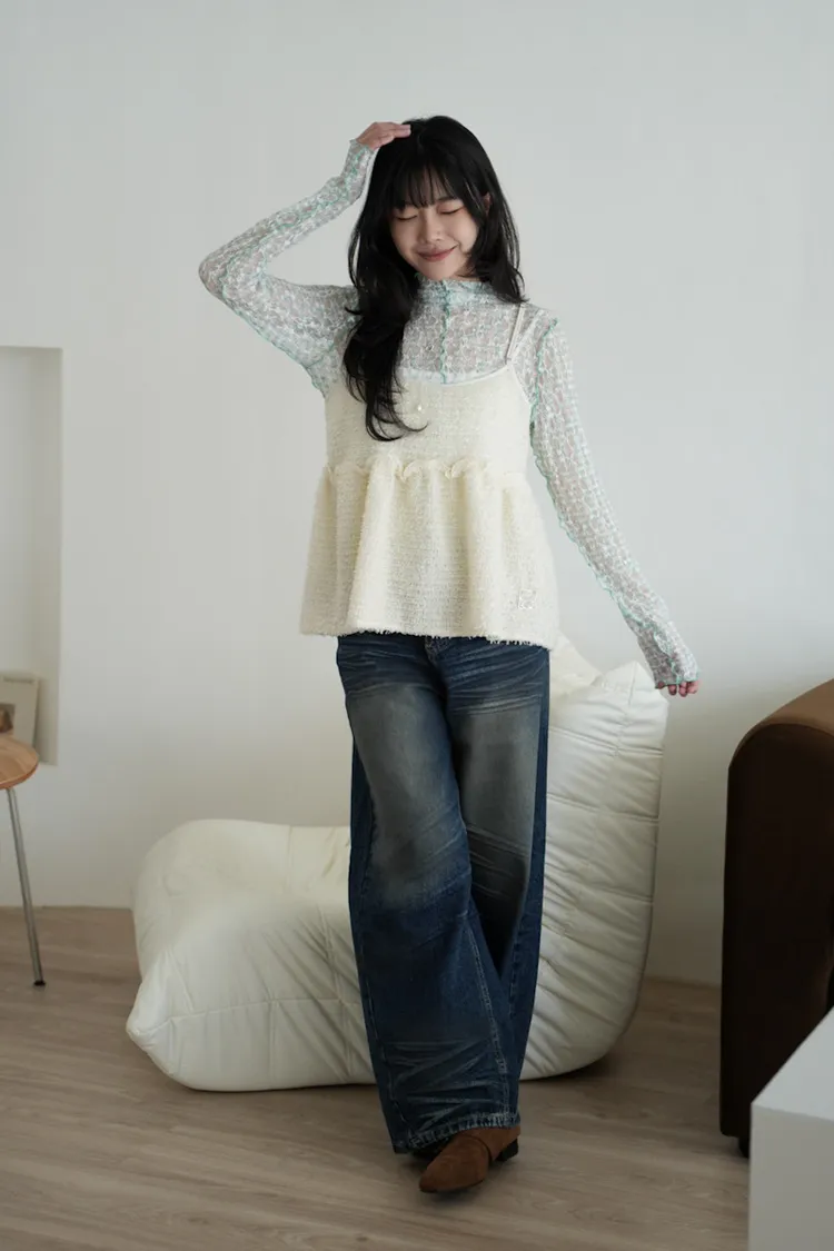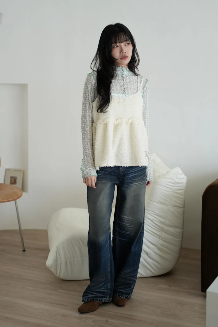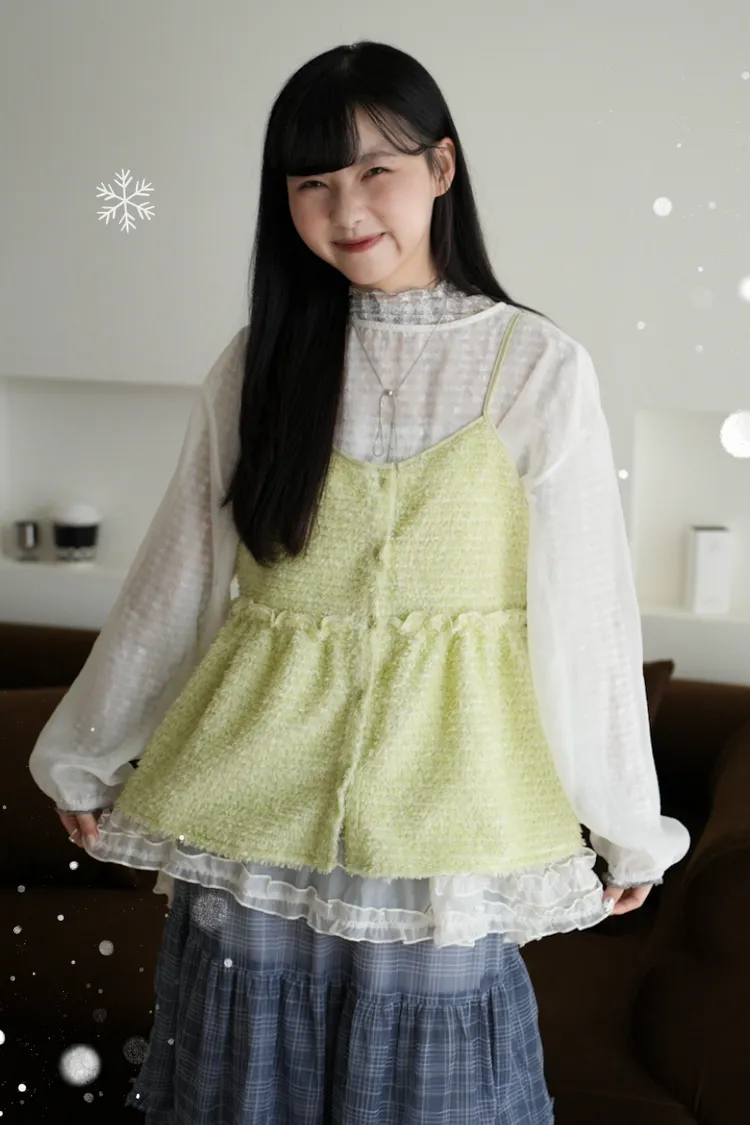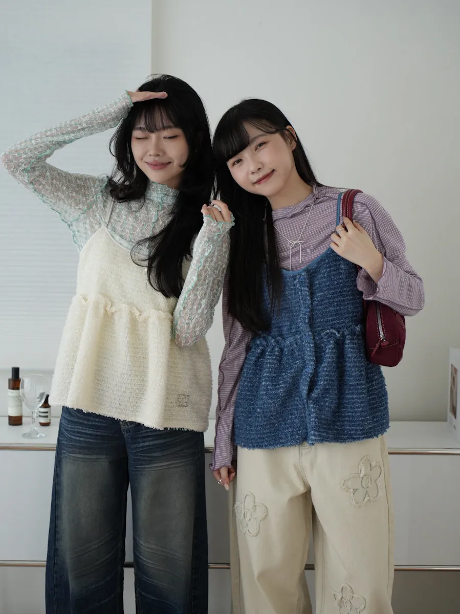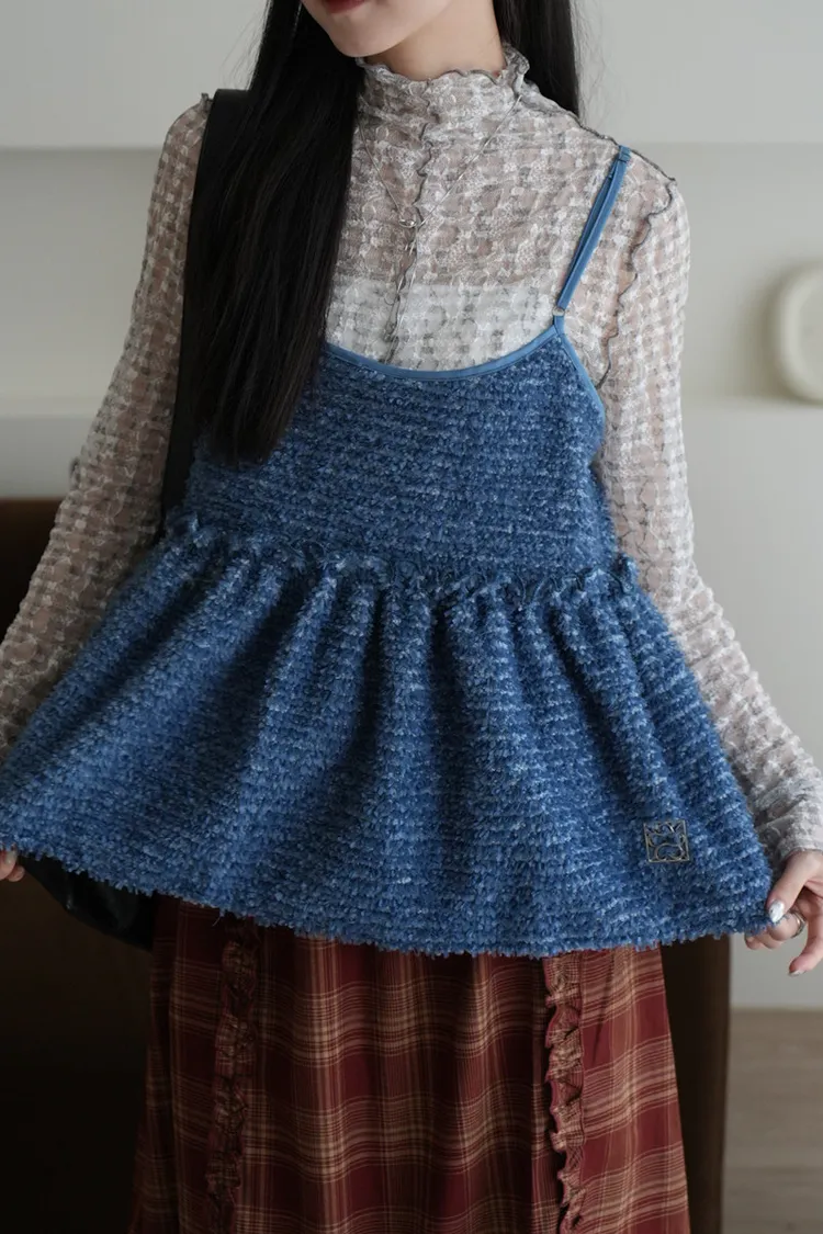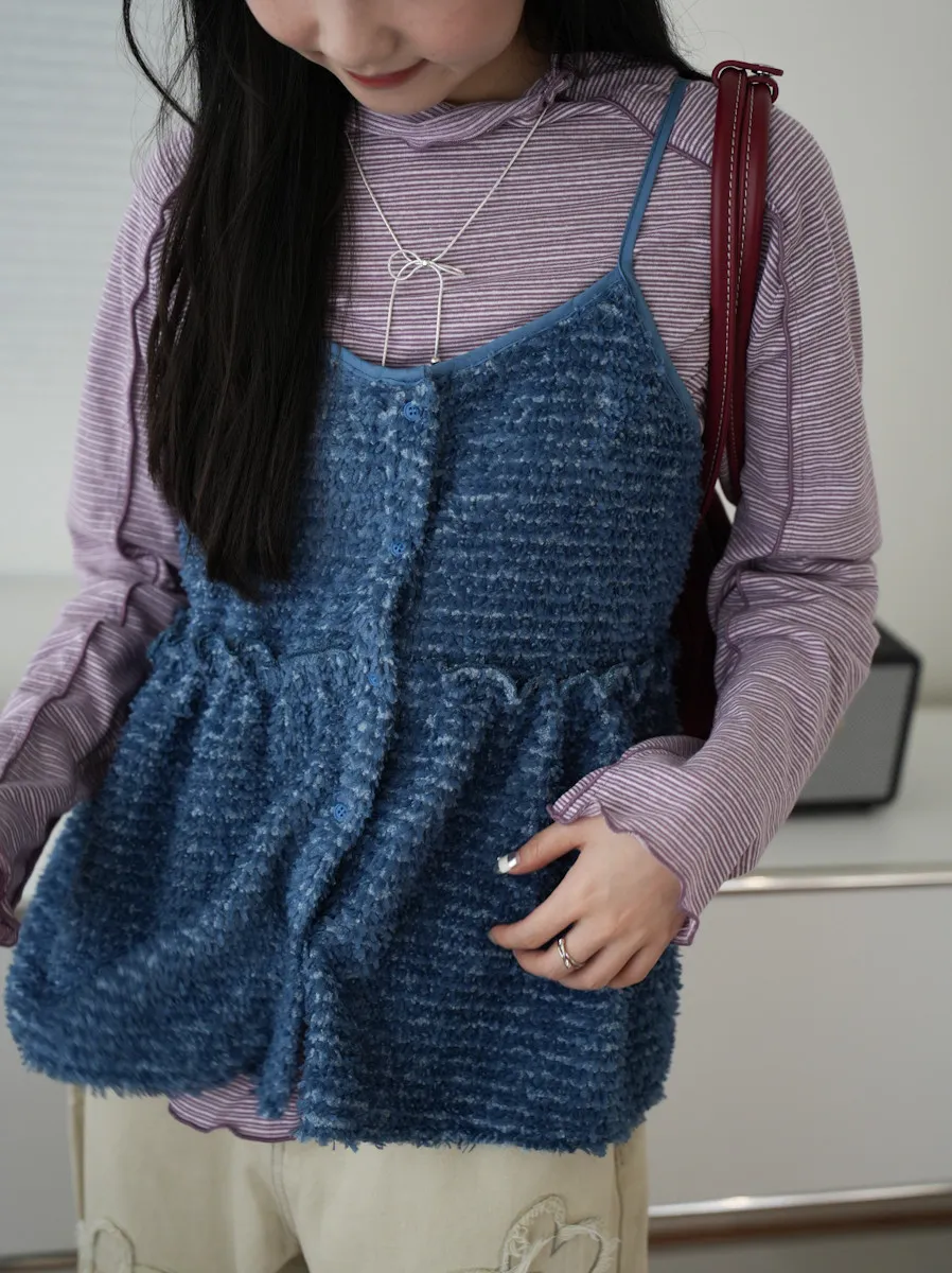 【SHOWROOM MADE】雲朵極可愛2way厚毛毛細肩背心 3color