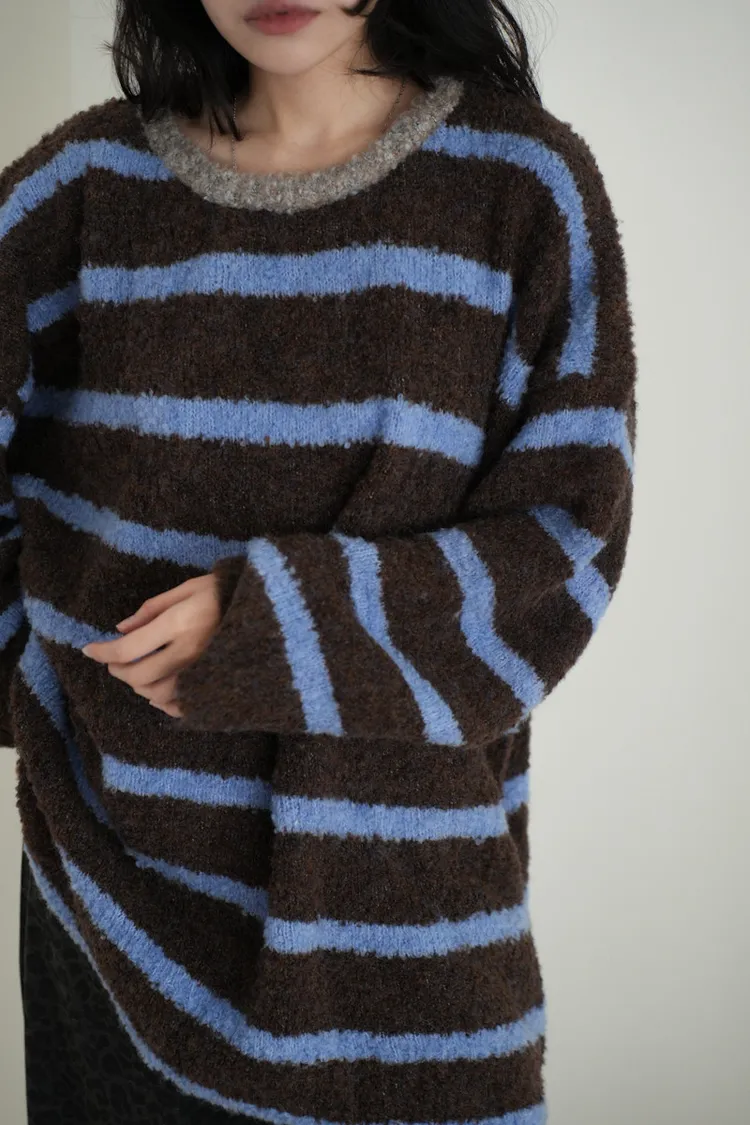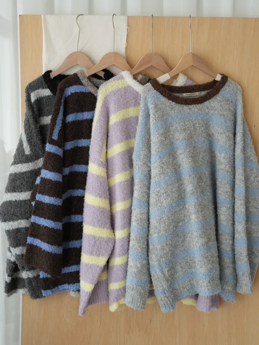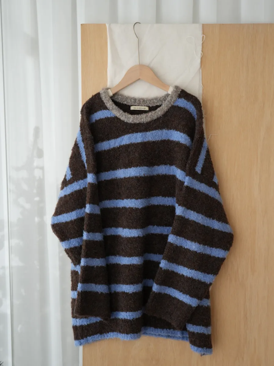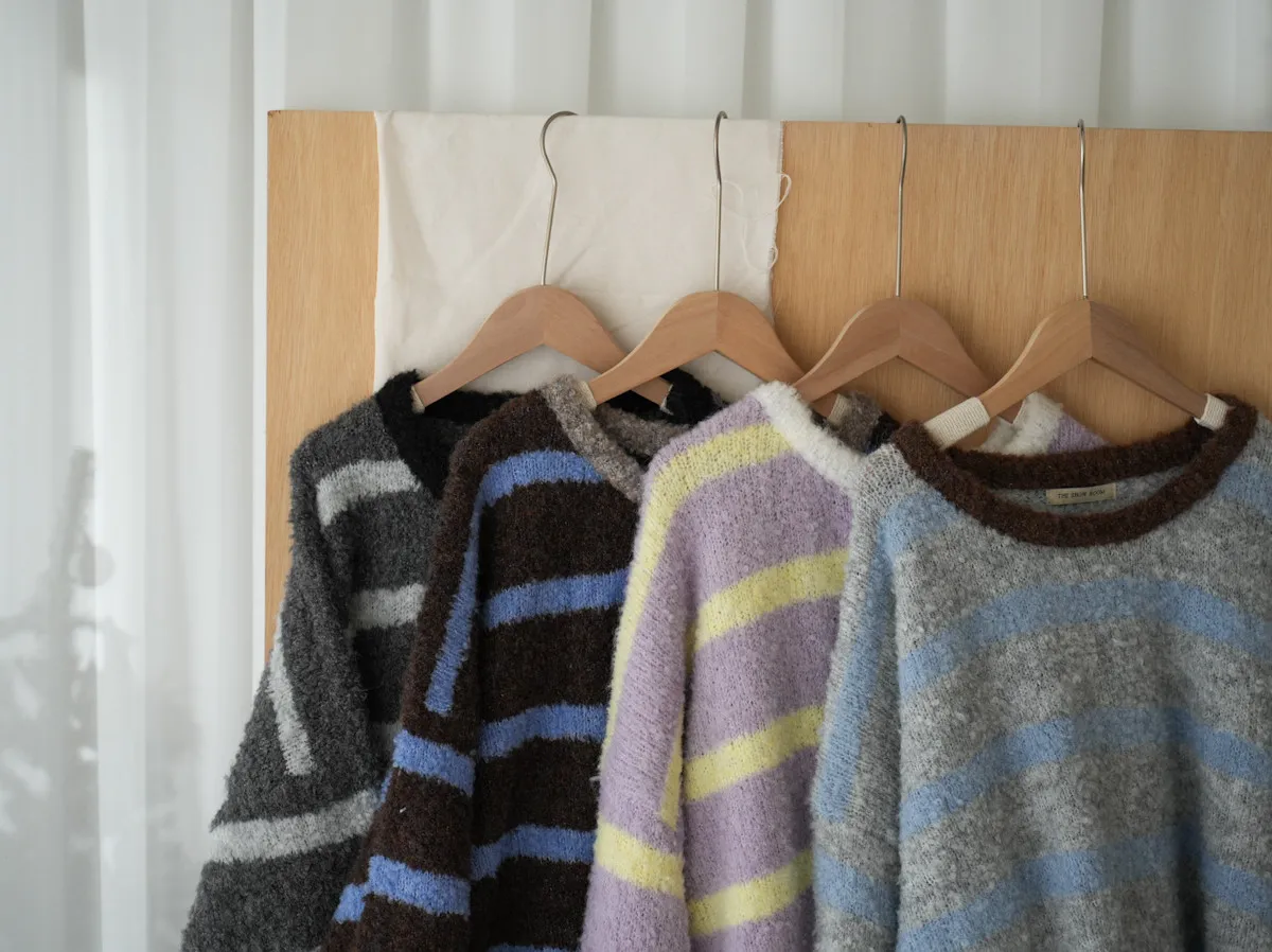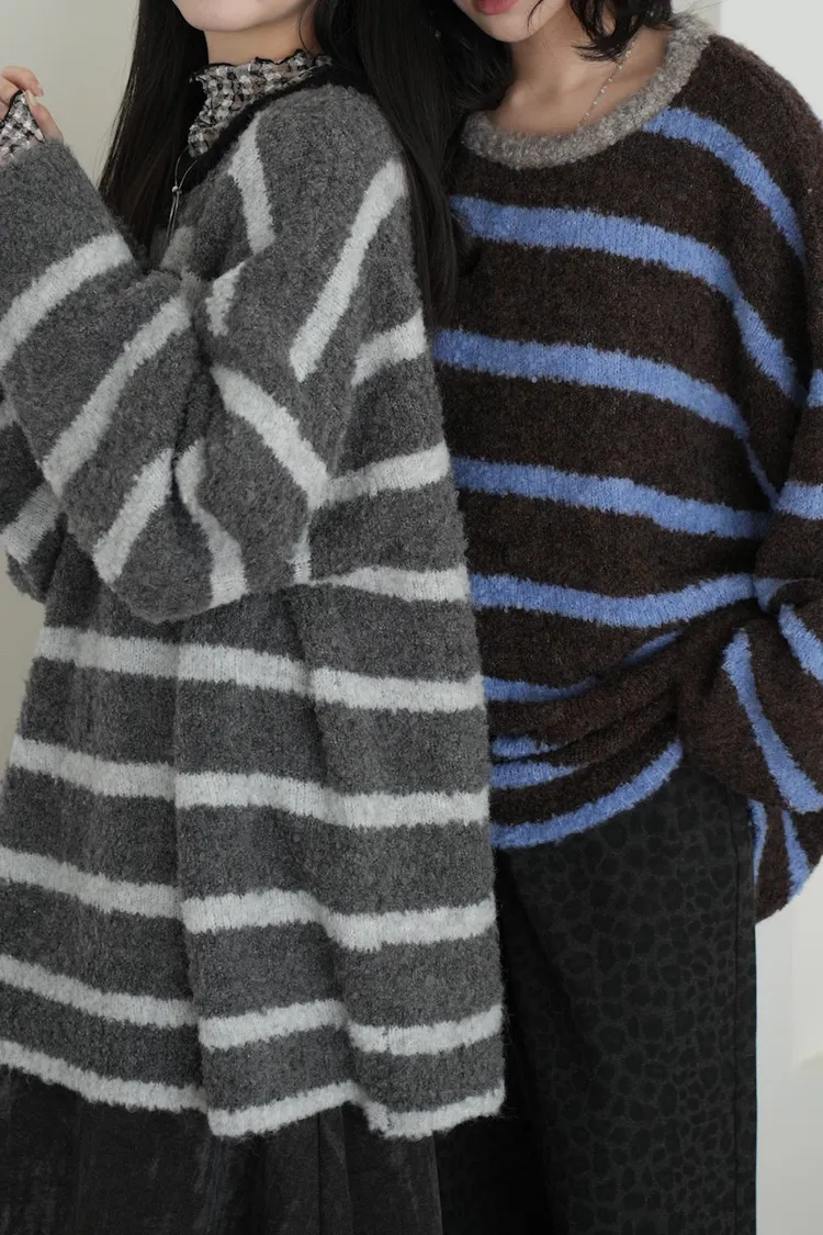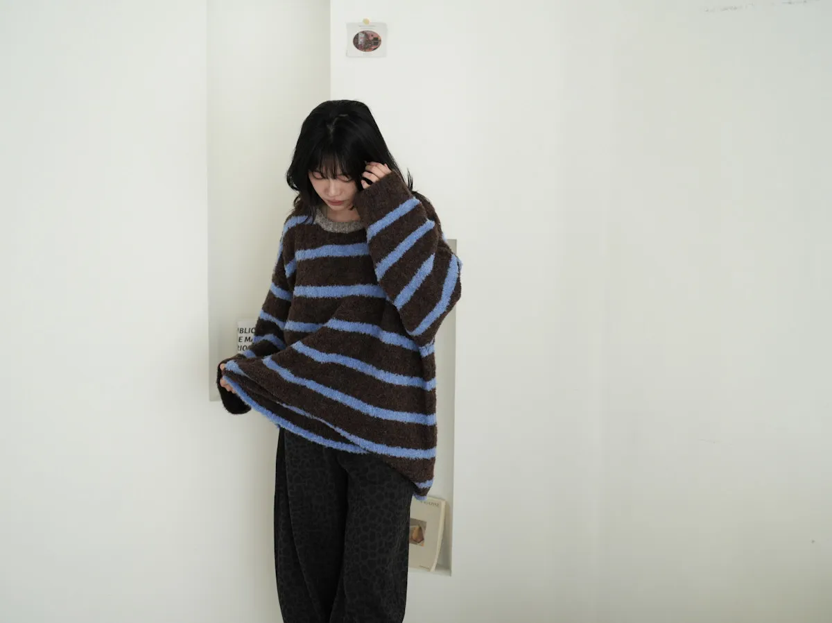 【SHOWROOM MADE】暖又好看!滾邊配色條紋寬鬆大毛衣 4color