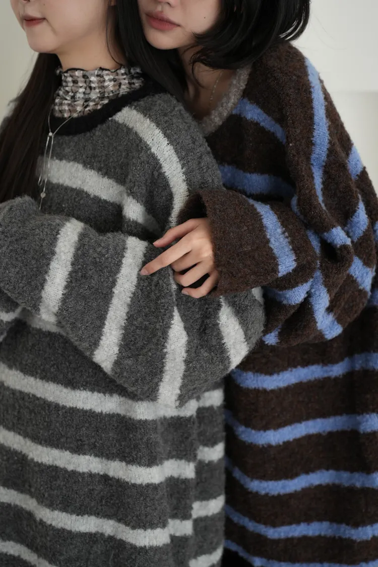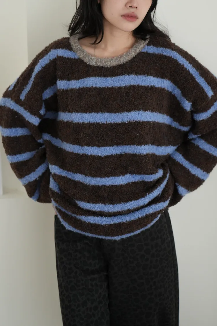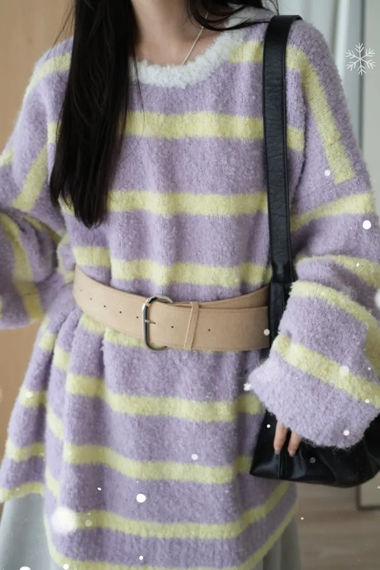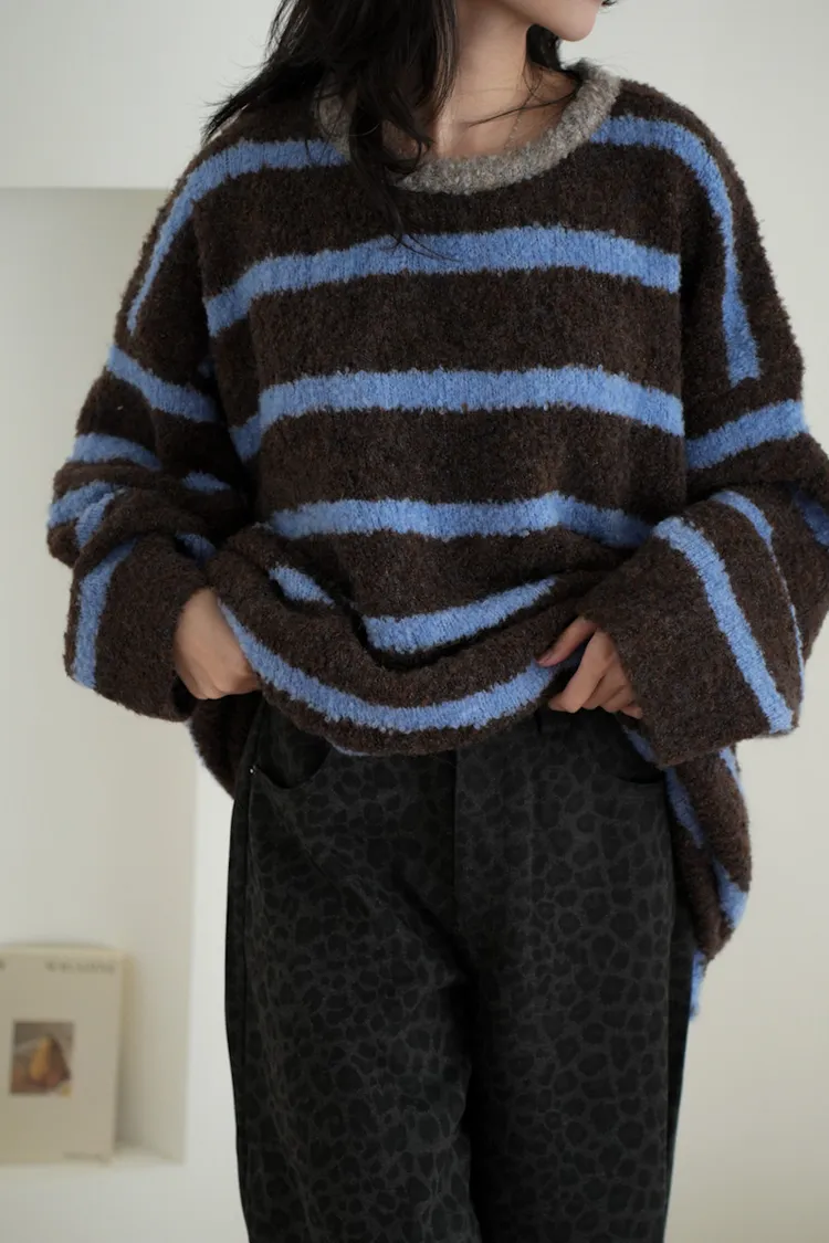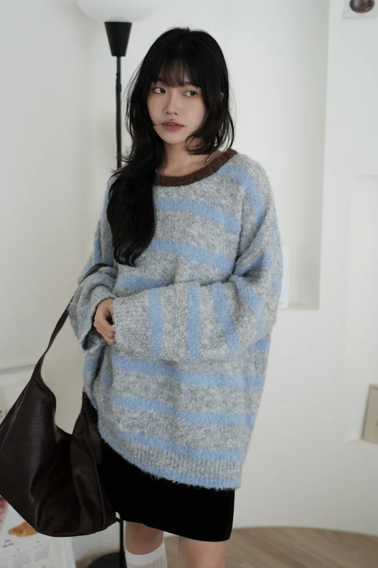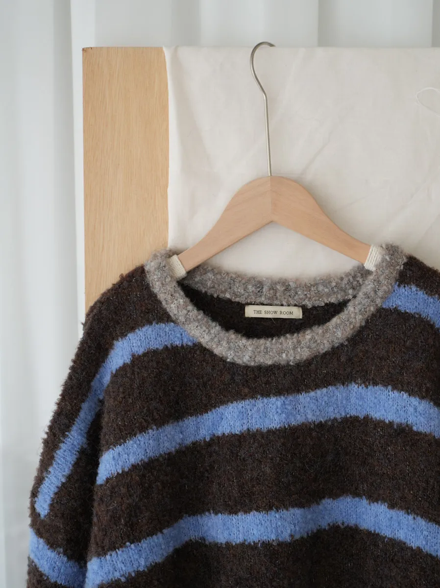【SHOWROOM MADE】暖又好看!滾邊配色條紋寬鬆大毛衣 4color