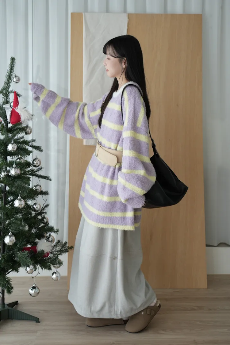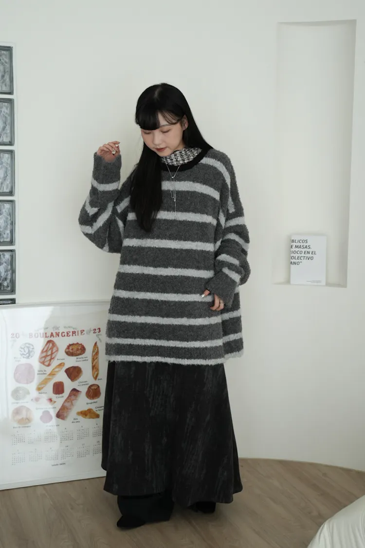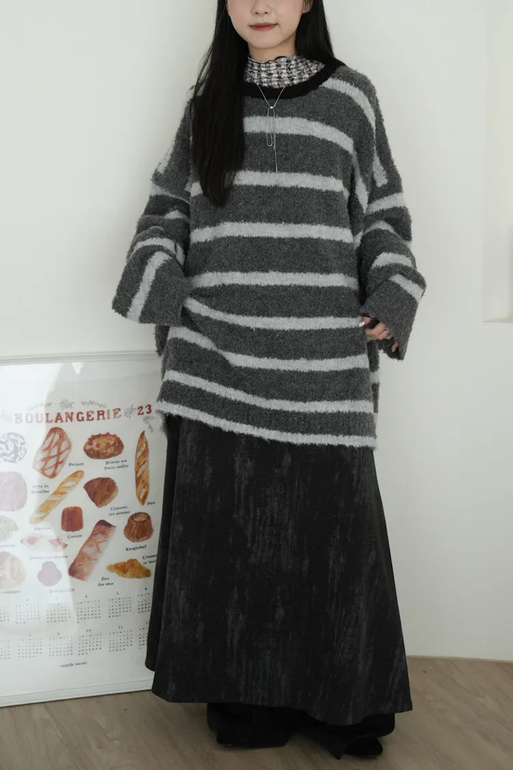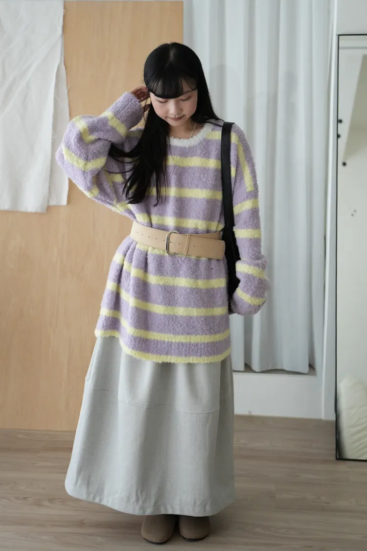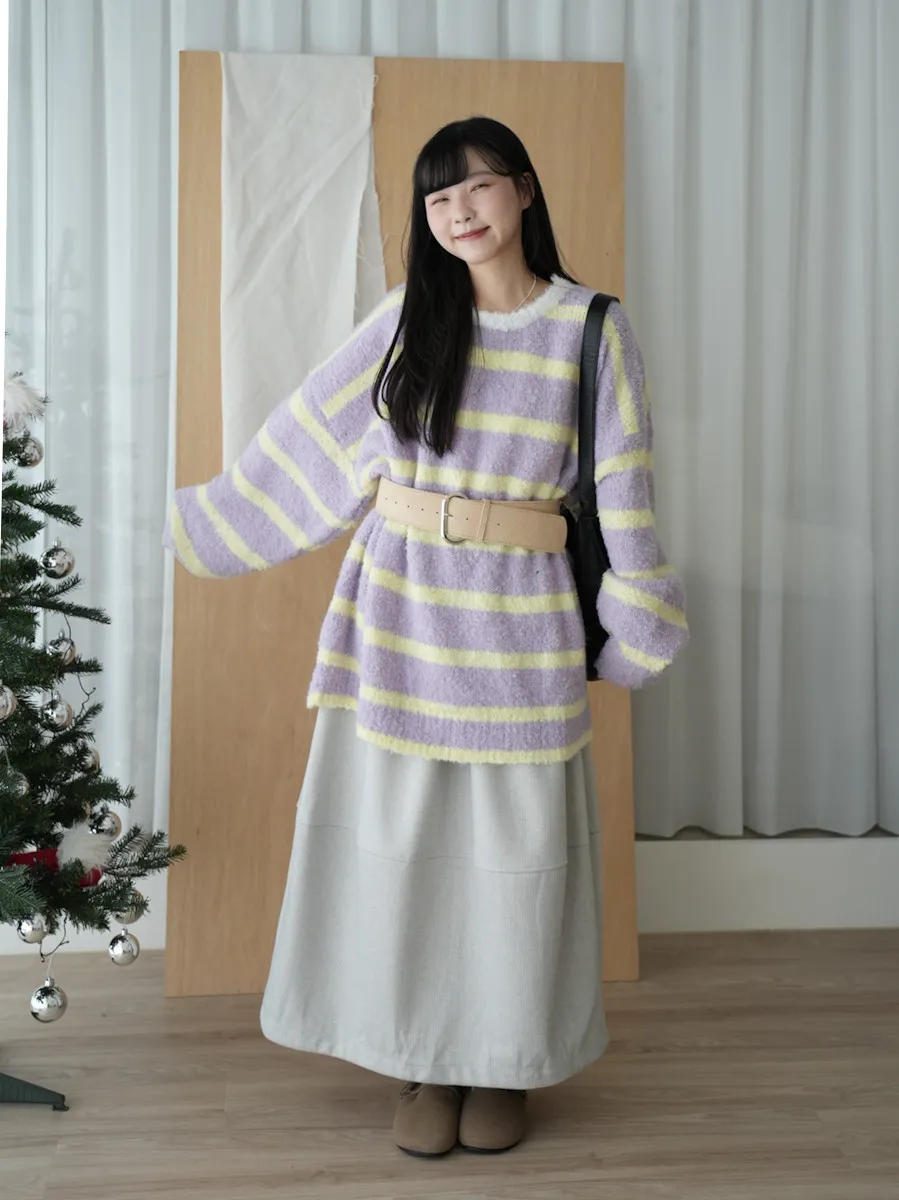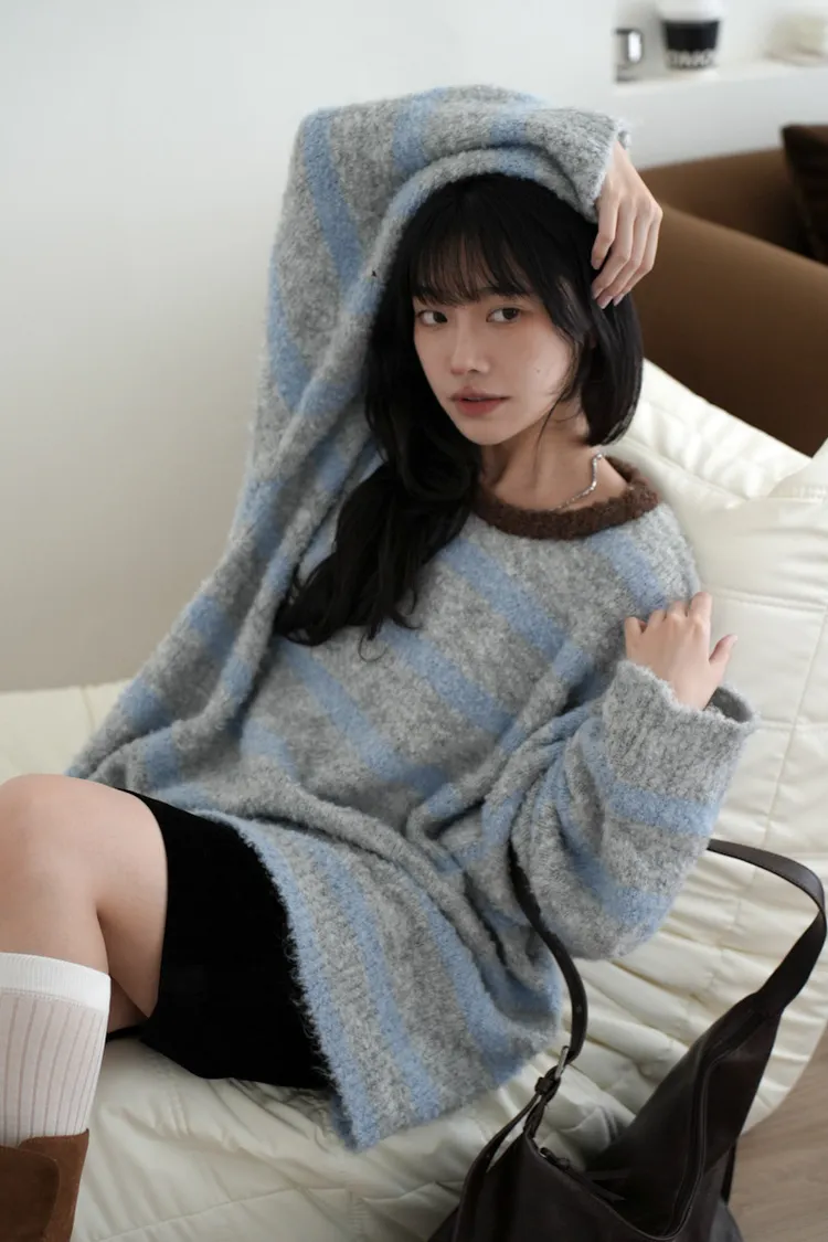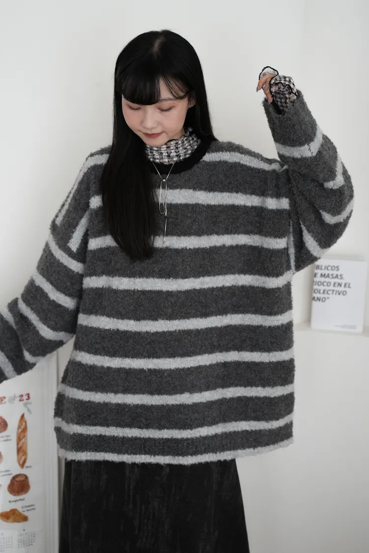 【SHOWROOM MADE】暖又好看!滾邊配色條紋寬鬆大毛衣 4color