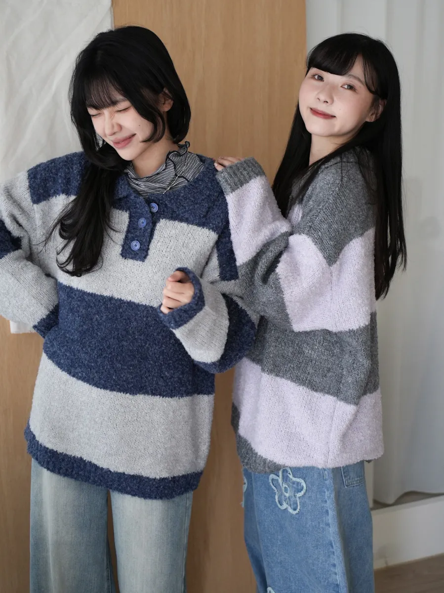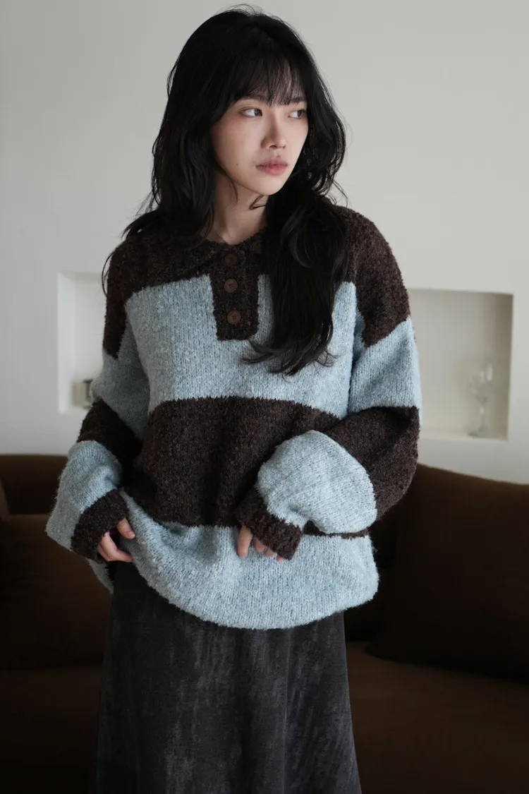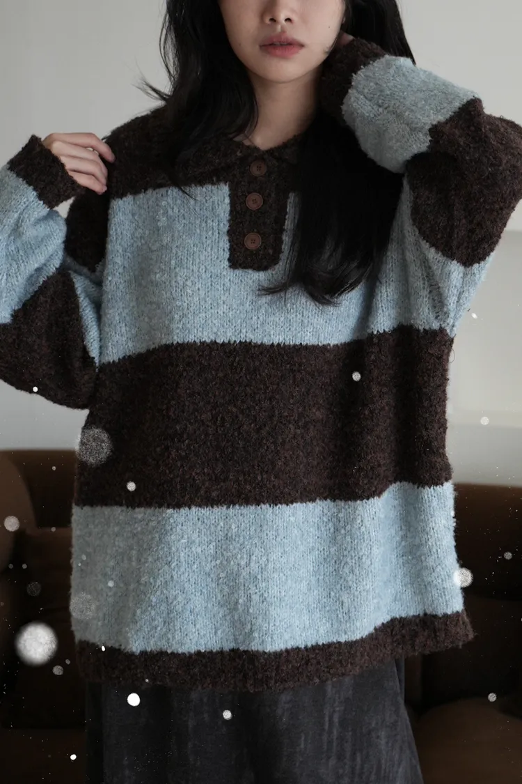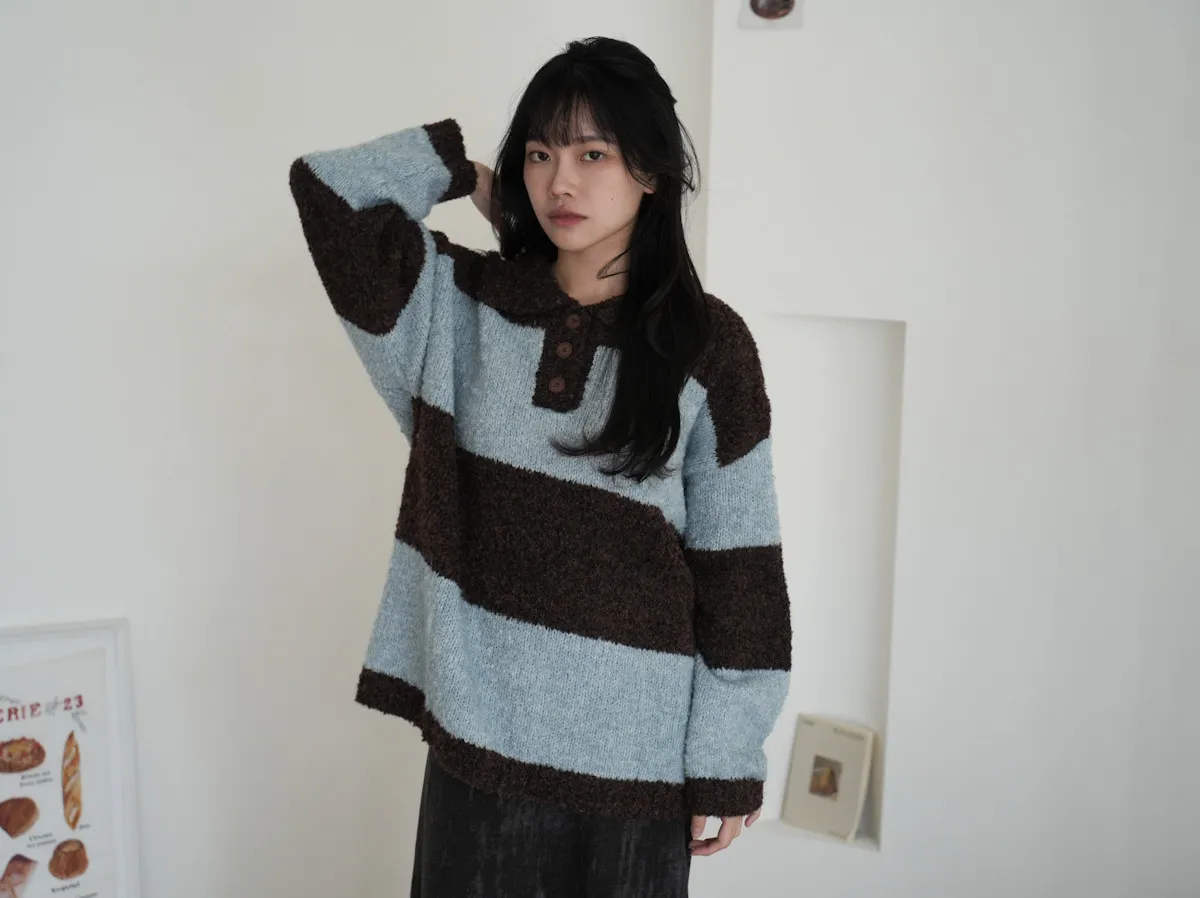 【SHOWROOM MADE】滿載愛意polo大釦拚色大毛衣 4color