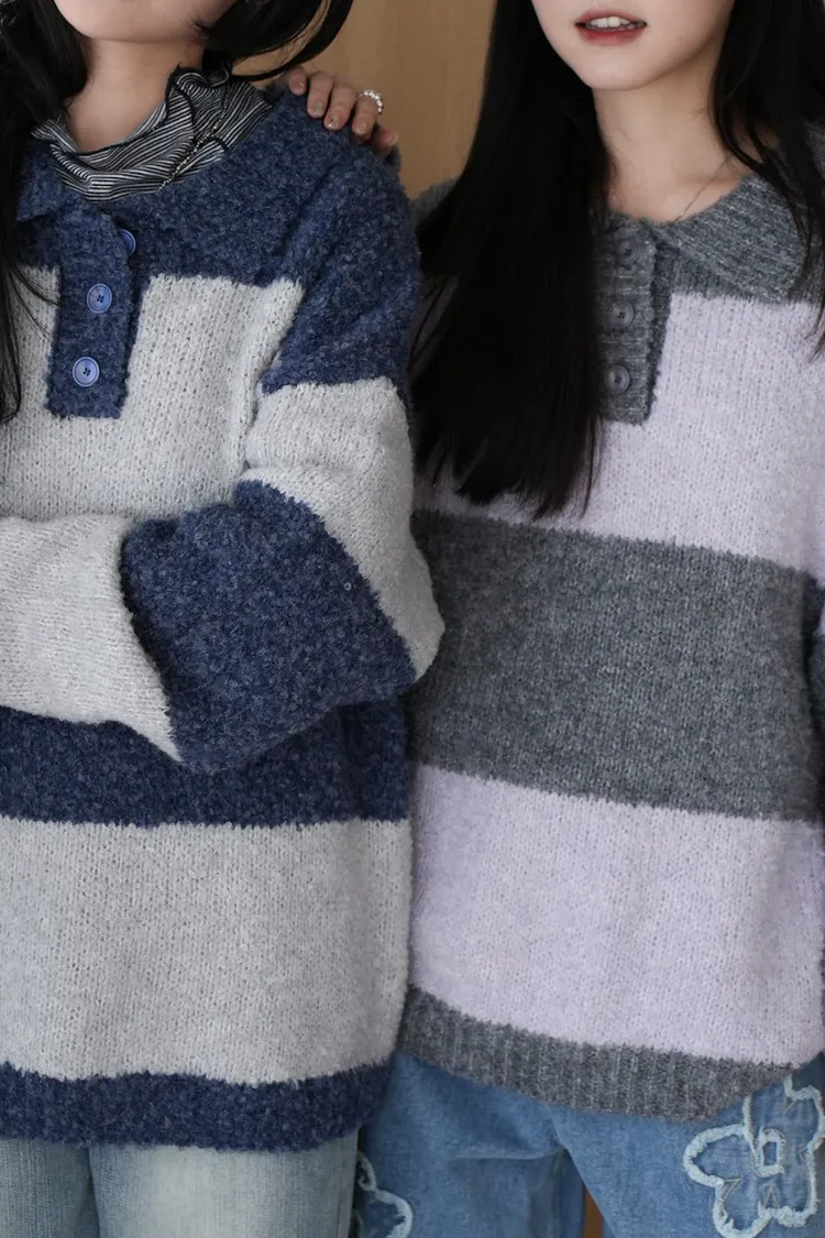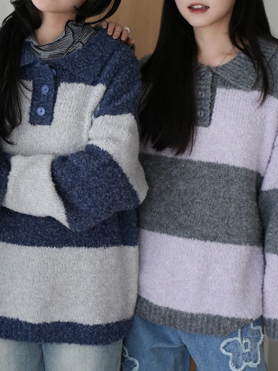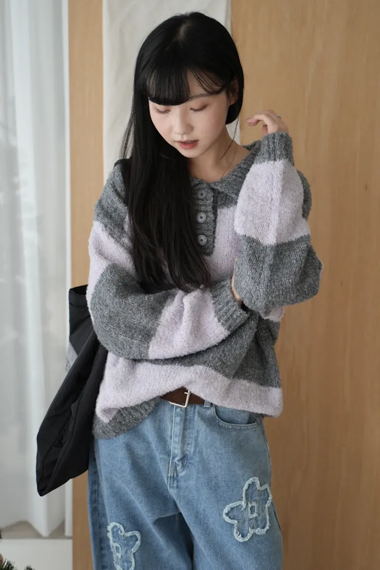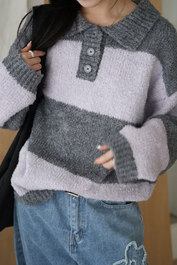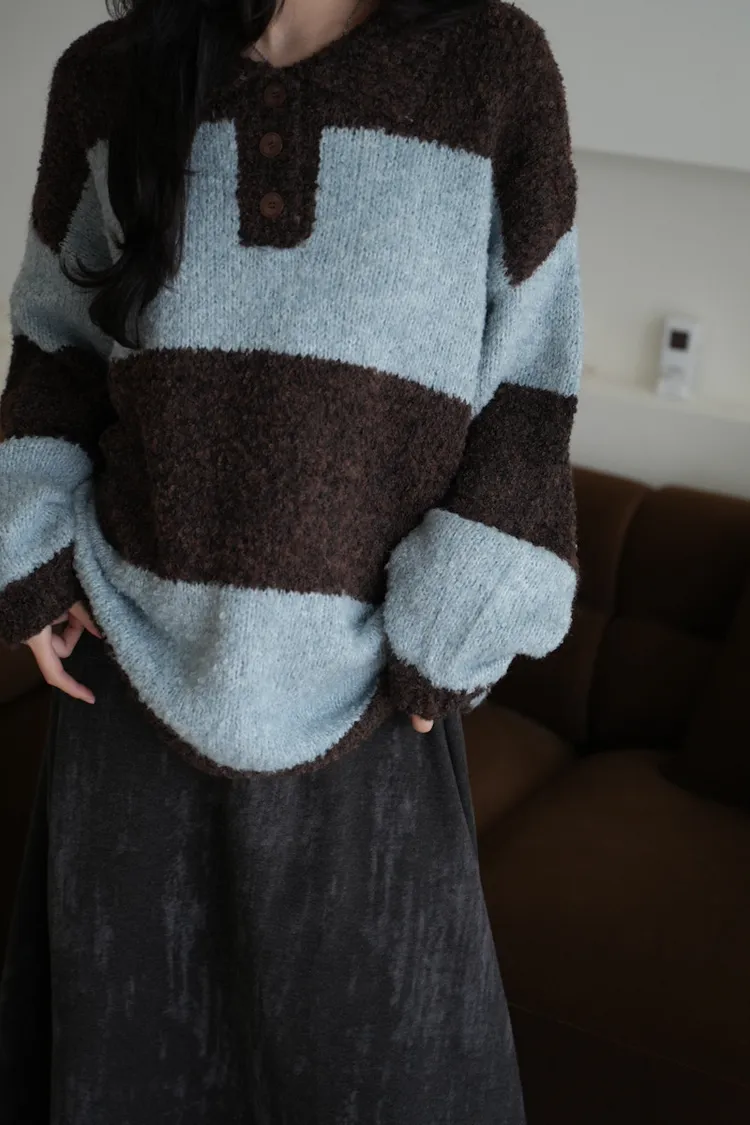 【SHOWROOM MADE】滿載愛意polo大釦拚色大毛衣 4color