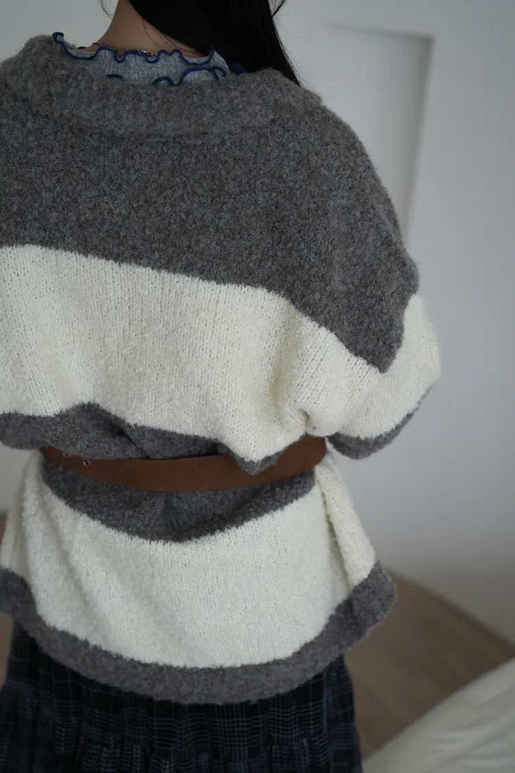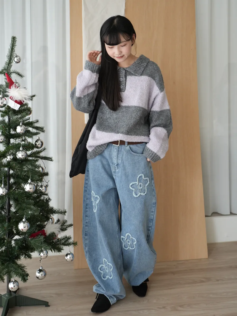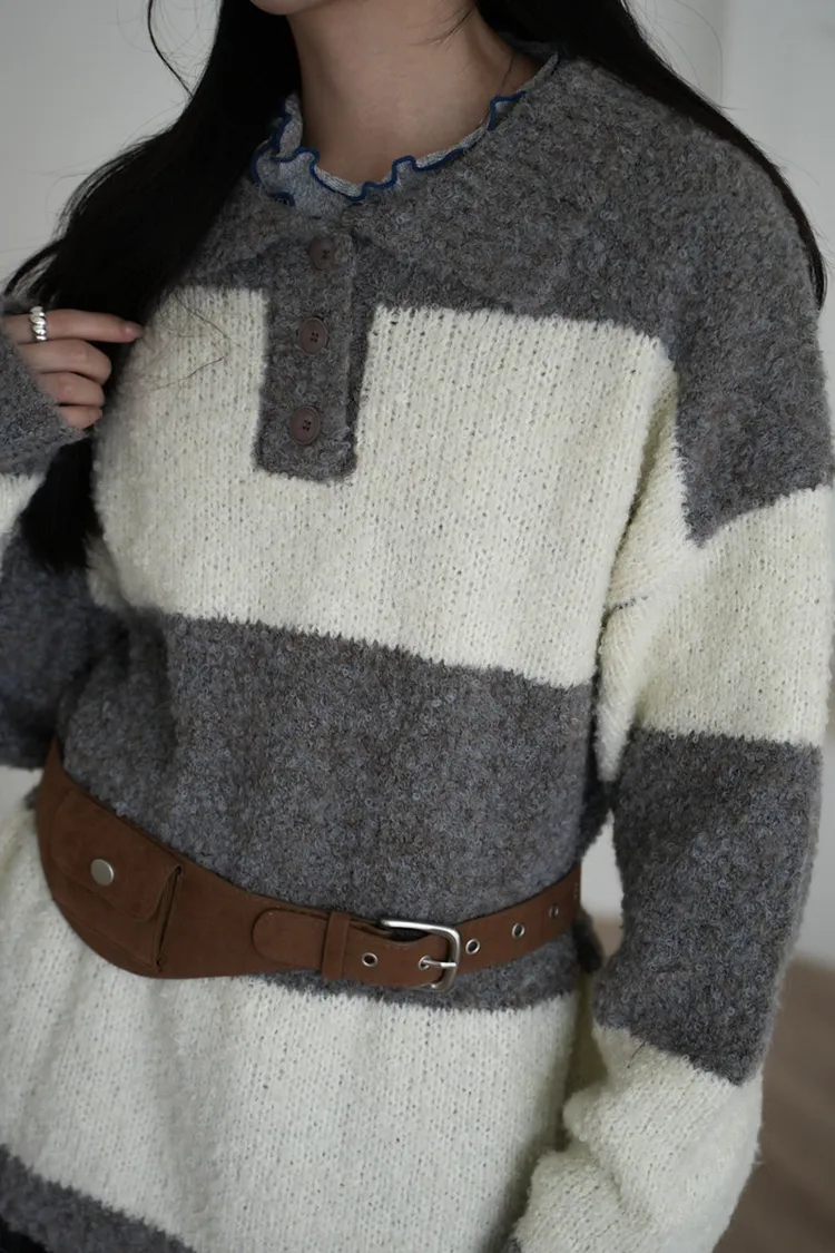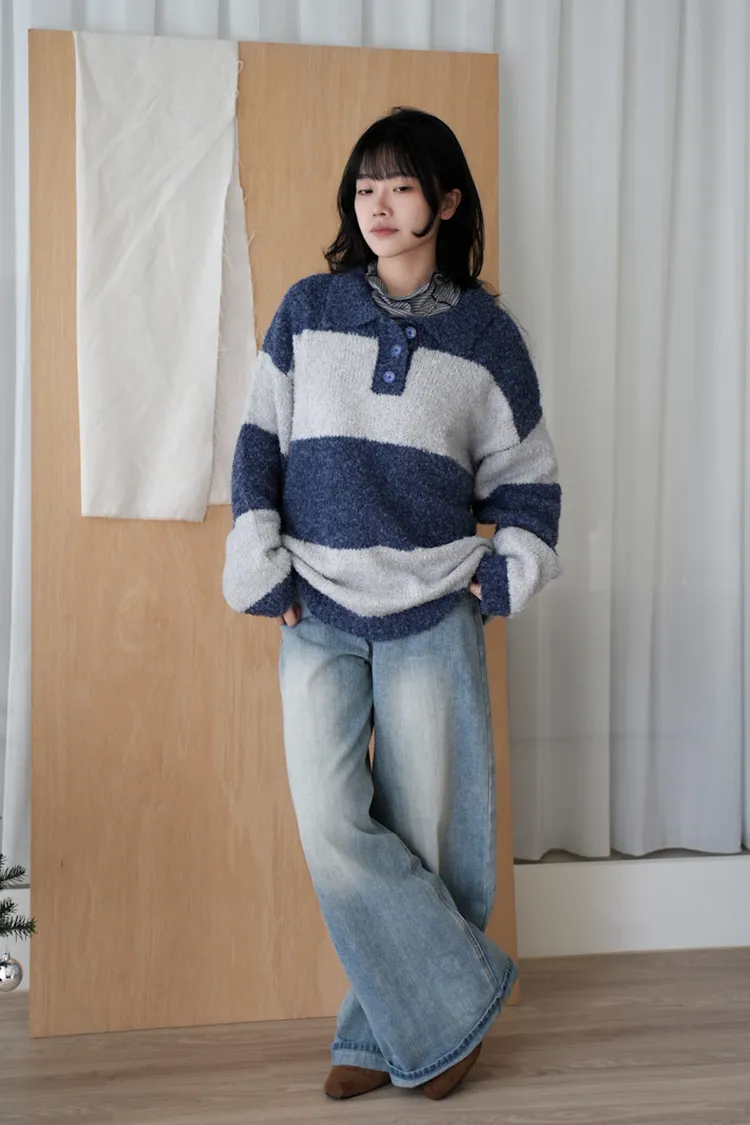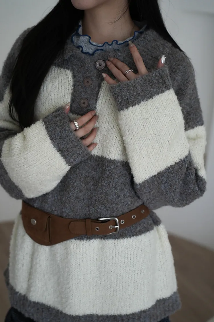【SHOWROOM MADE】滿載愛意polo大釦拚色大毛衣 4color