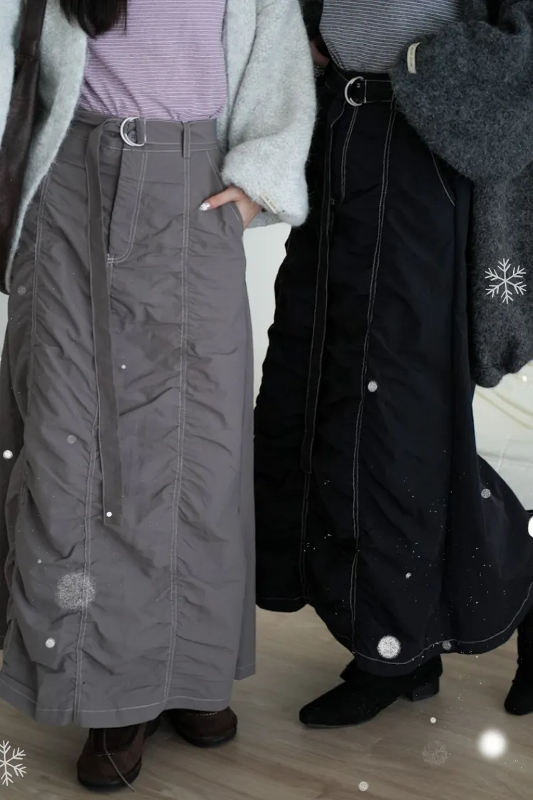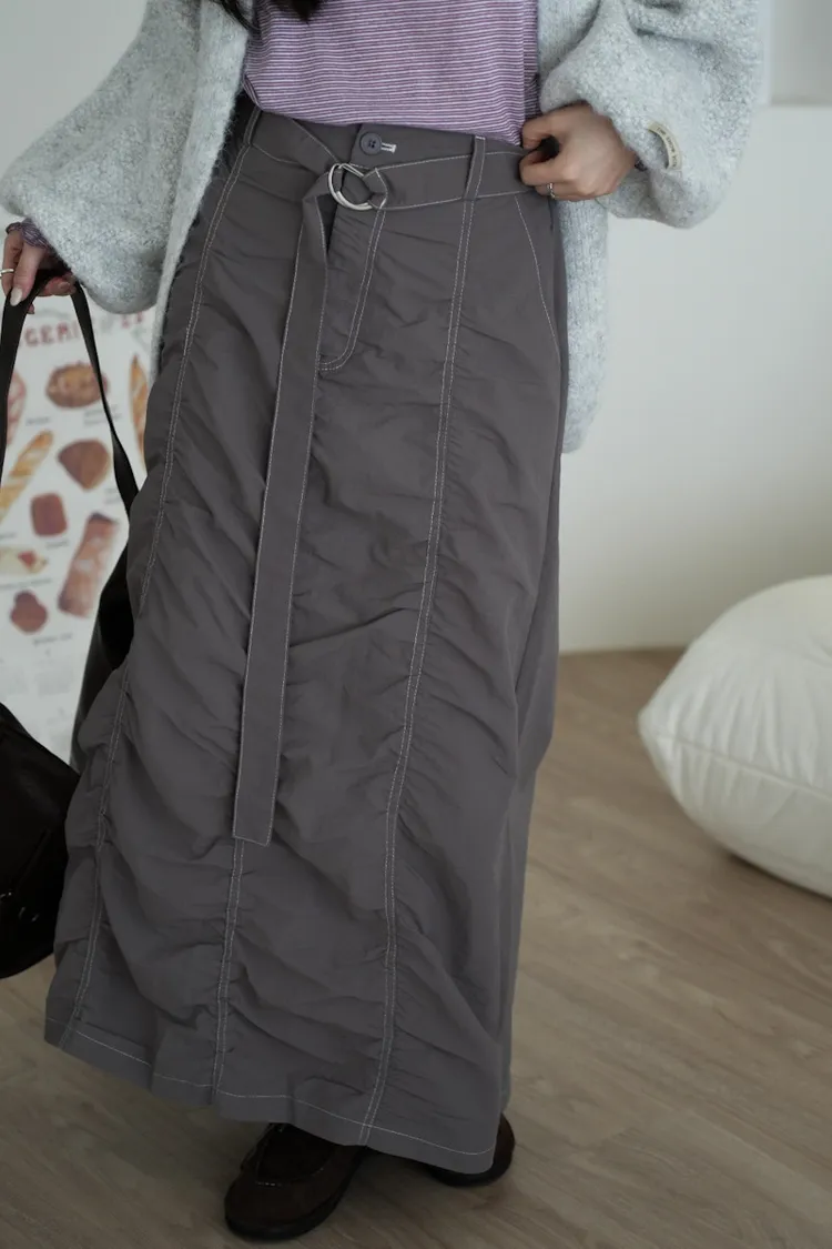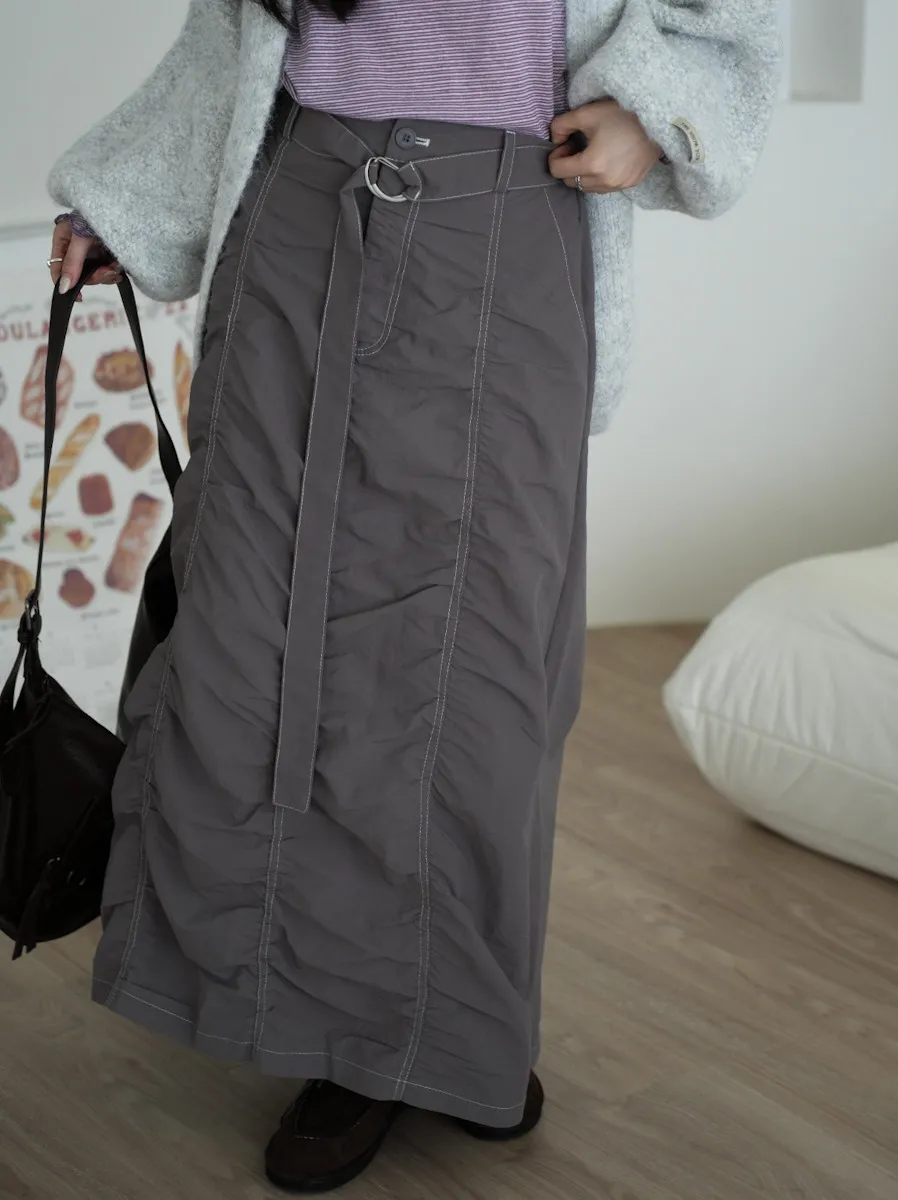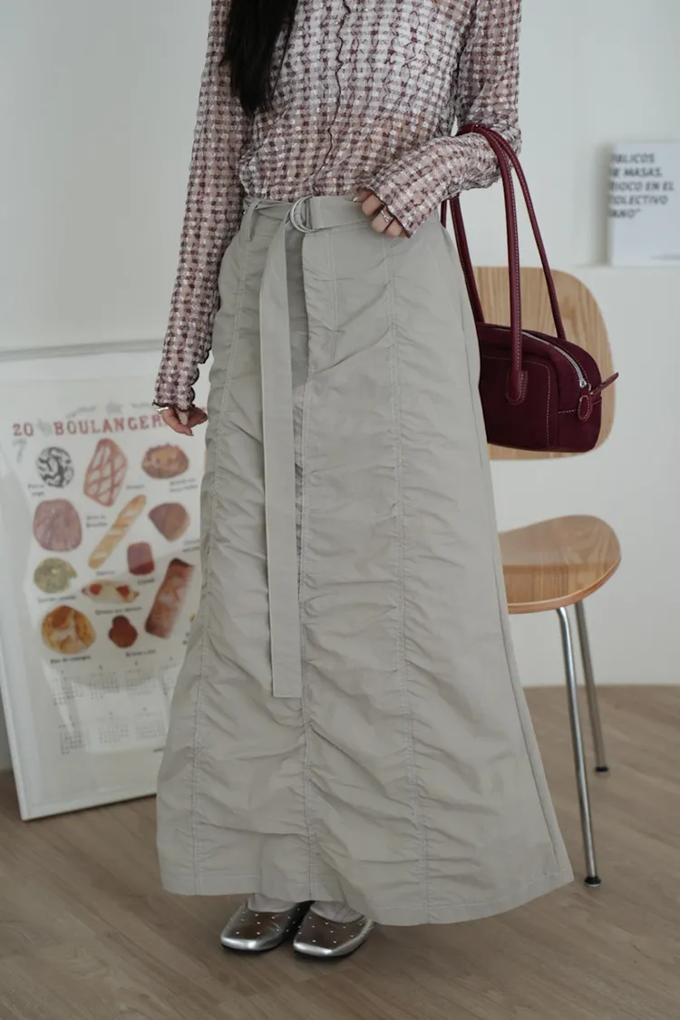 【SHOWROOM MADE】腰帶抓皺感長裙 3color