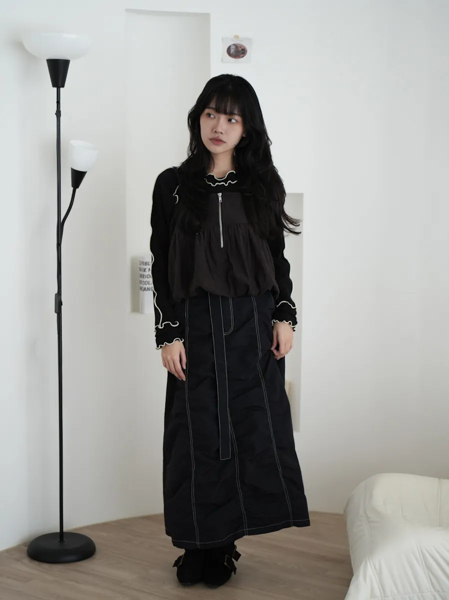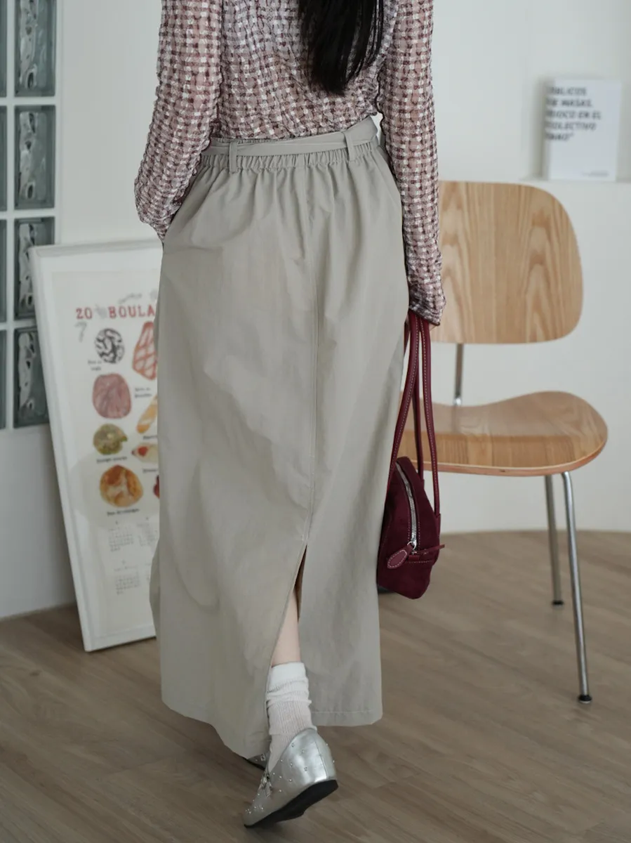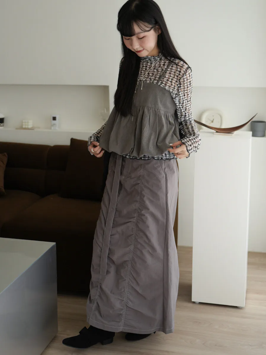 【SHOWROOM MADE】腰帶抓皺感長裙 3color