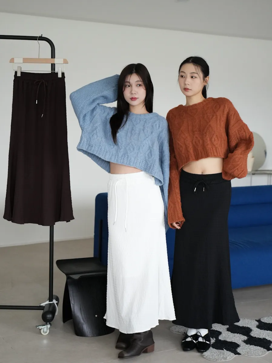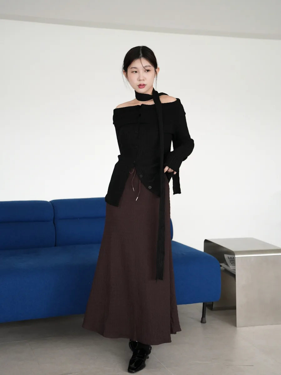 【SHOWROOM MADE】周凡style 仙氣質感紋理鬆緊腰魚尾長裙 3color
