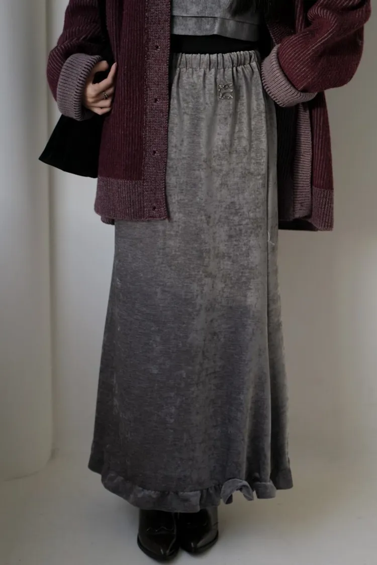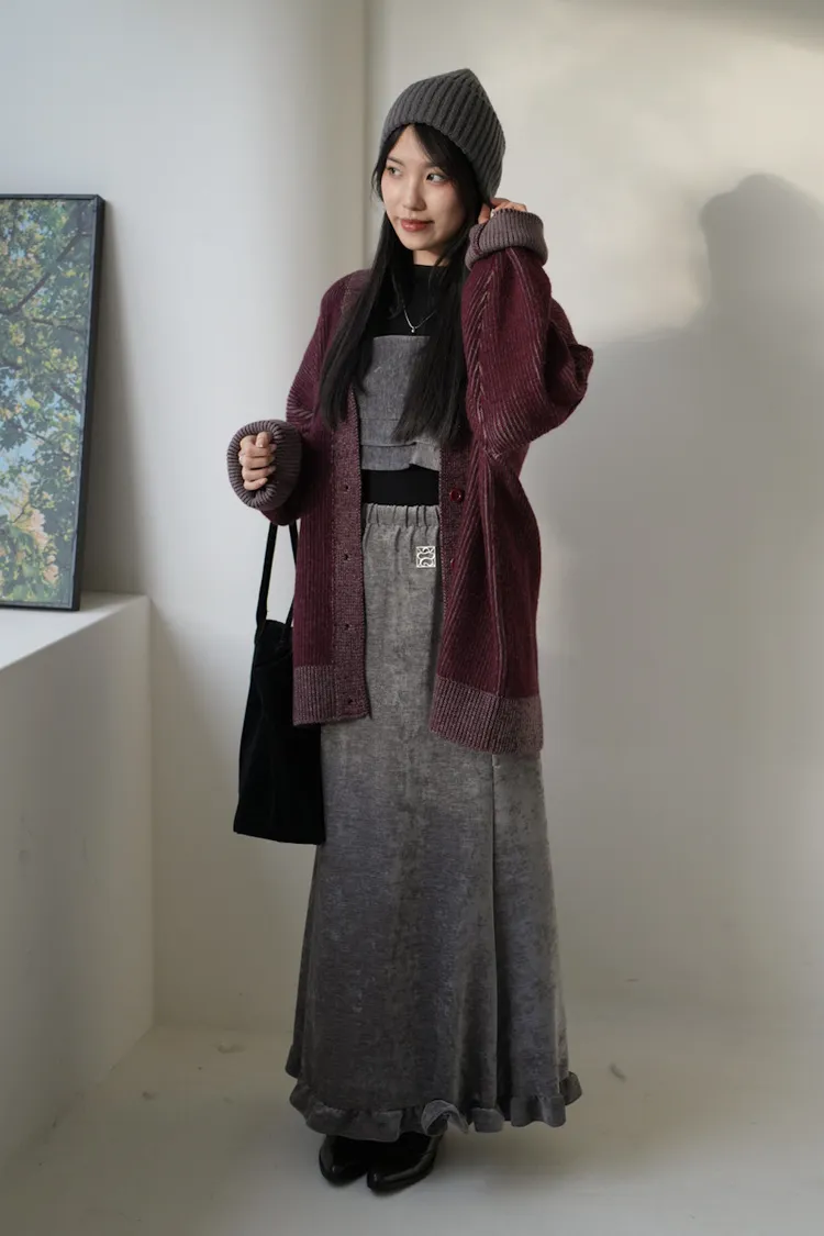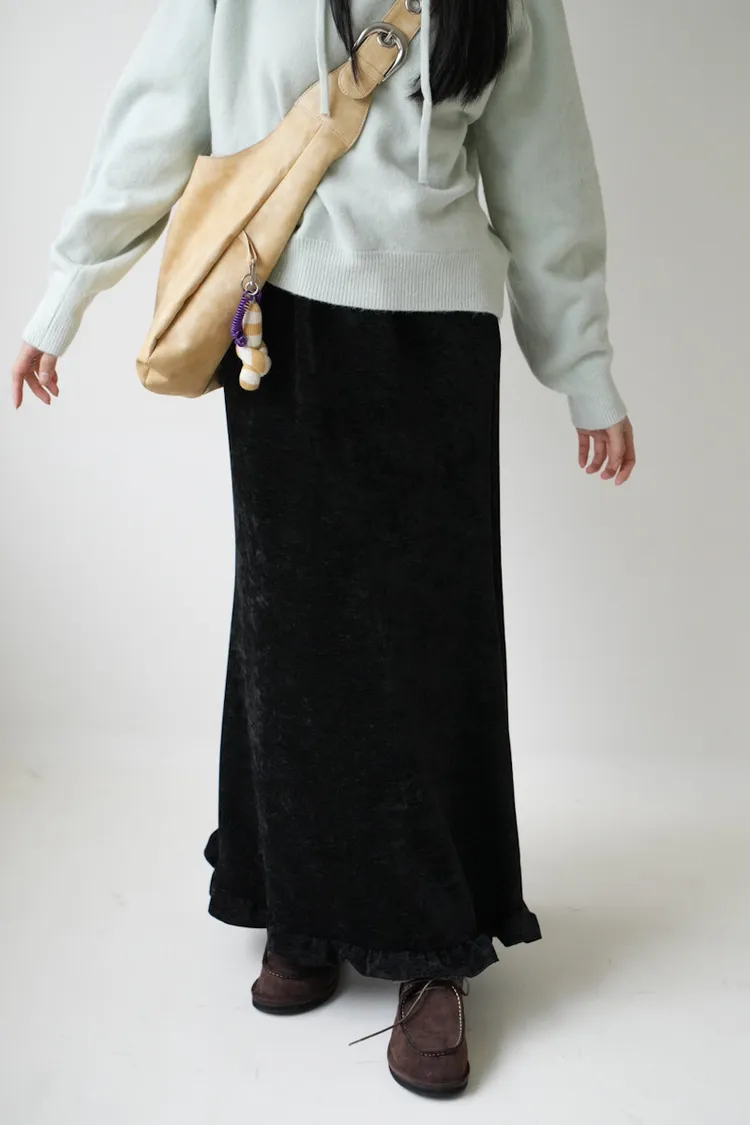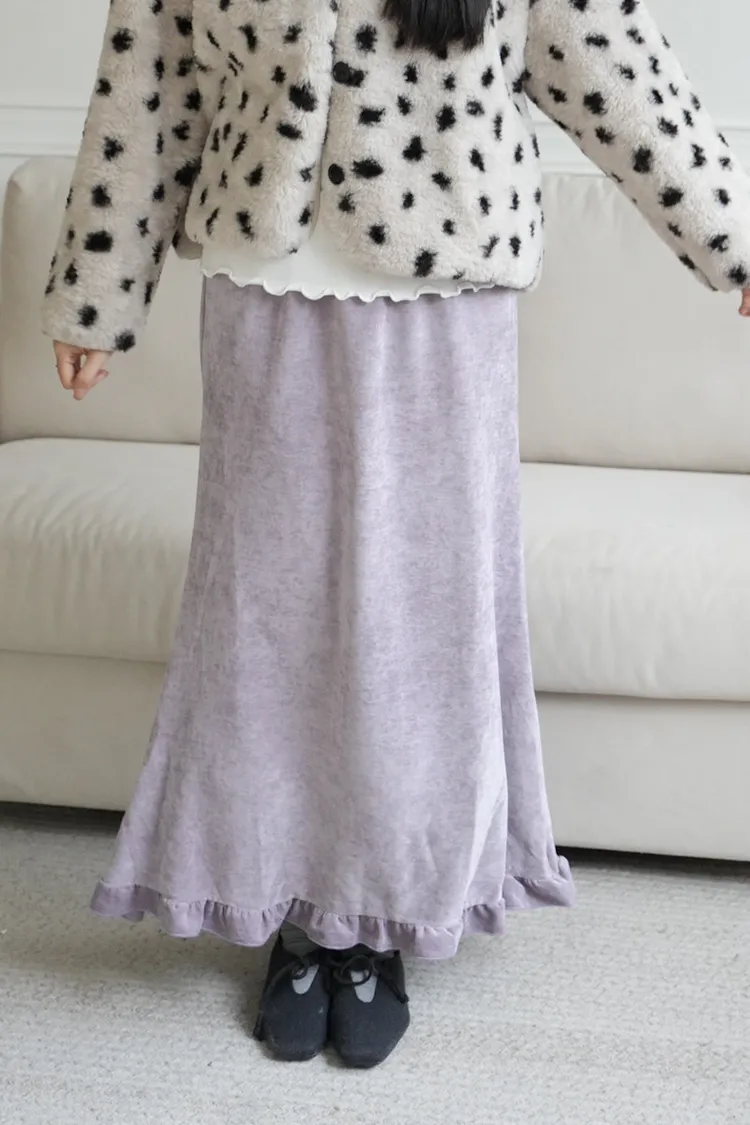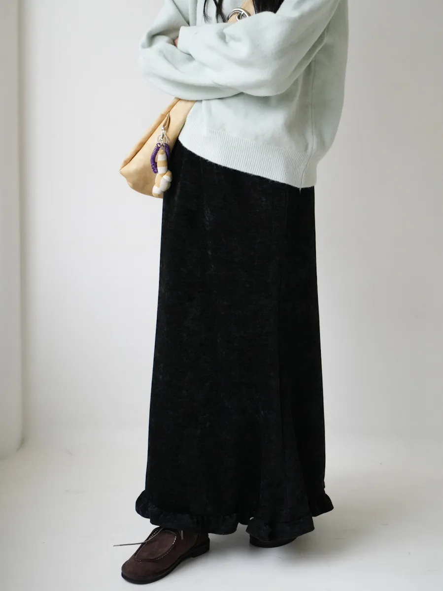 -【SHOWROOM MADE】閉眼收!絲絨磨毛木耳滾邊長裙 4color
