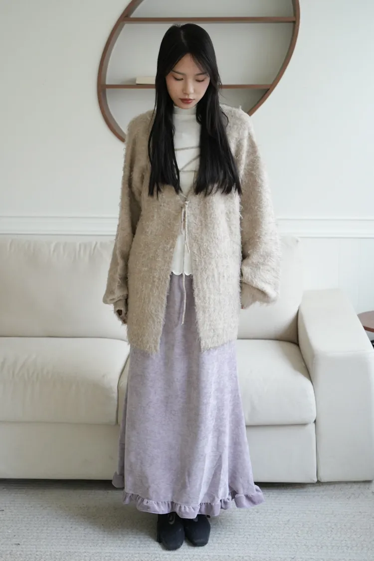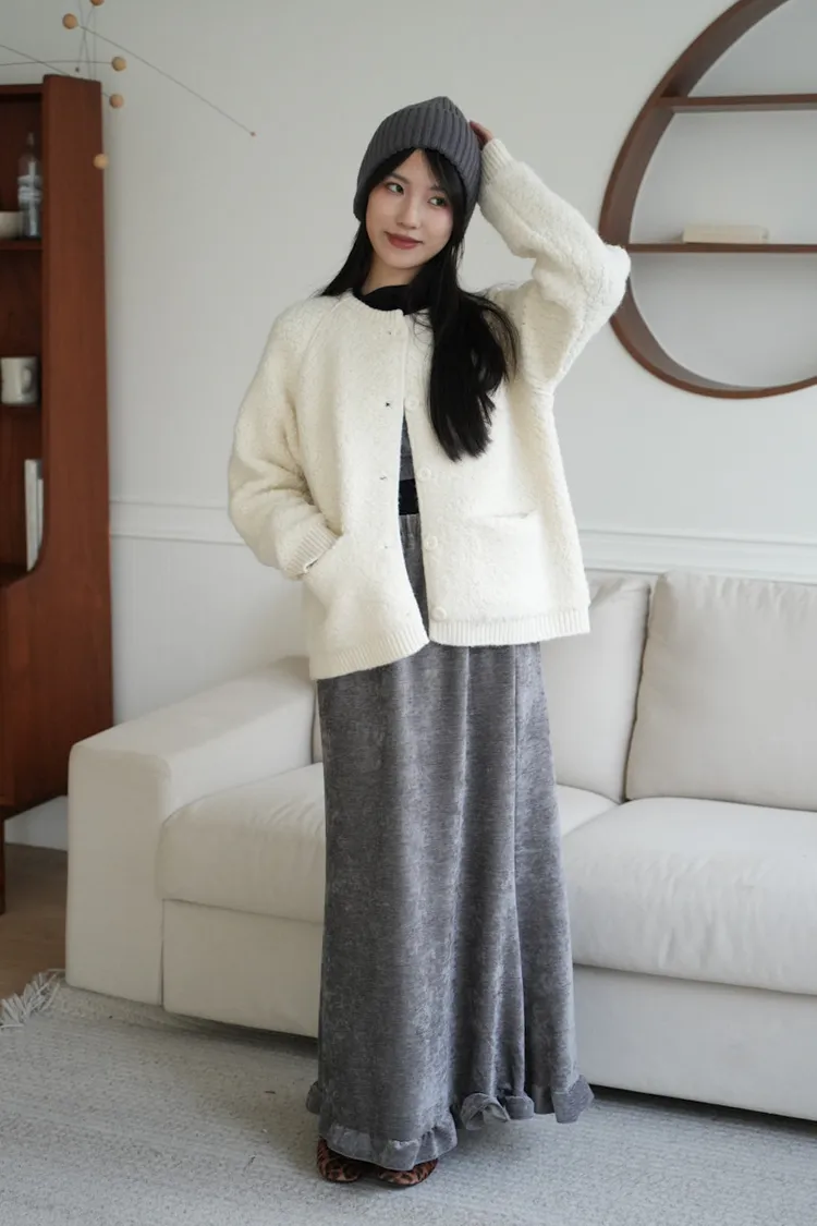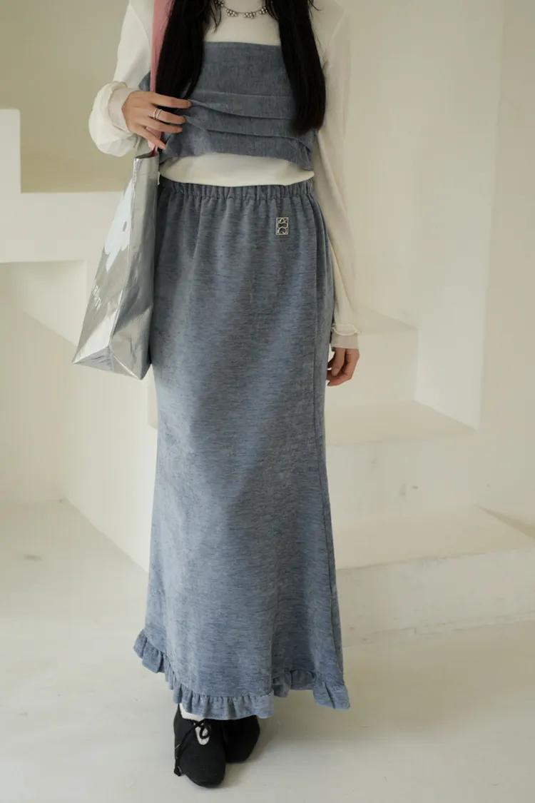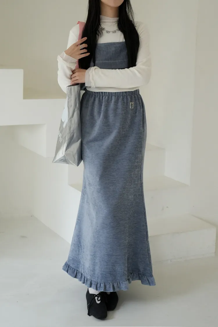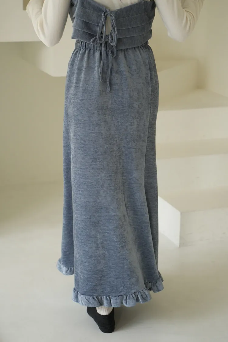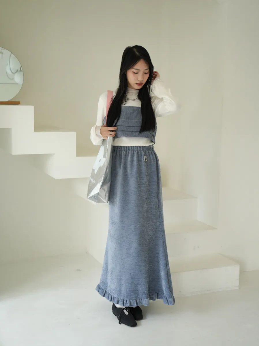 -【SHOWROOM MADE】閉眼收!絲絨磨毛木耳滾邊長裙 4color