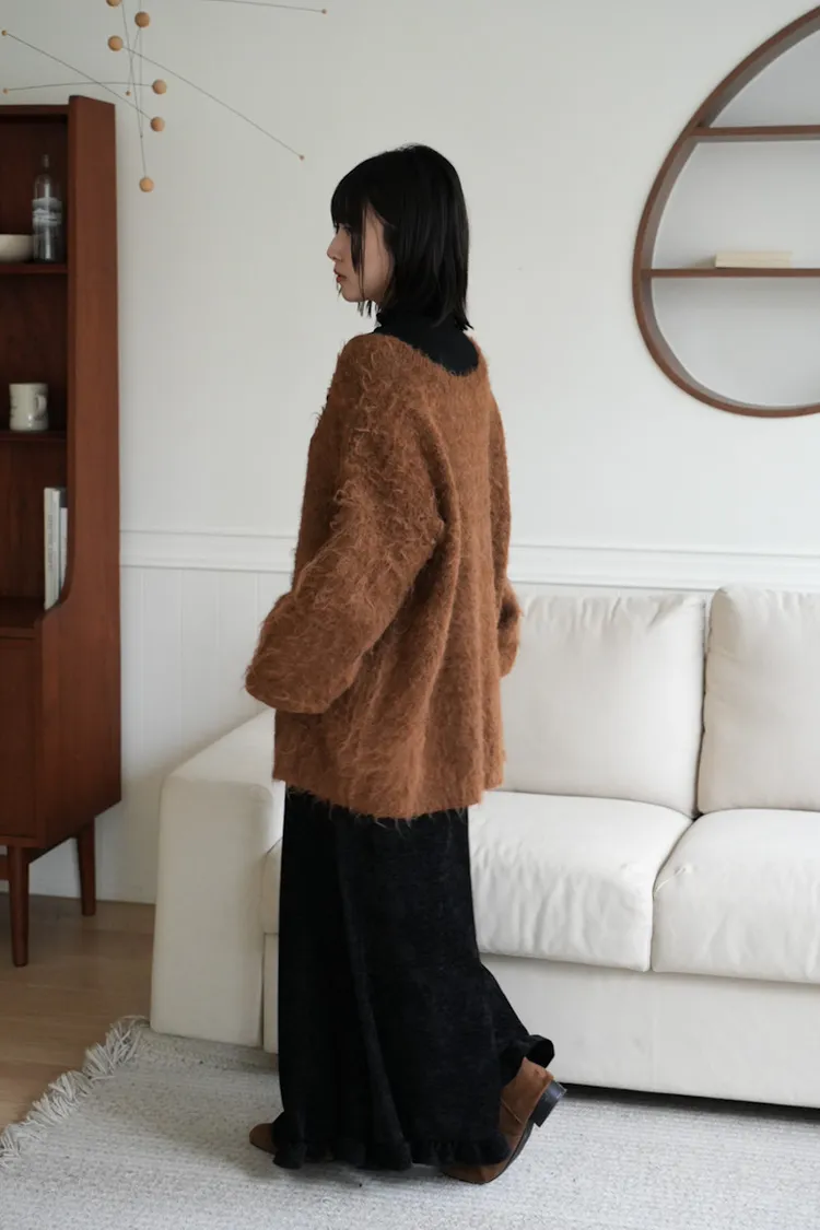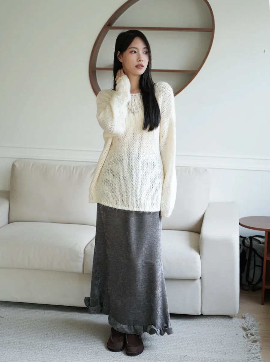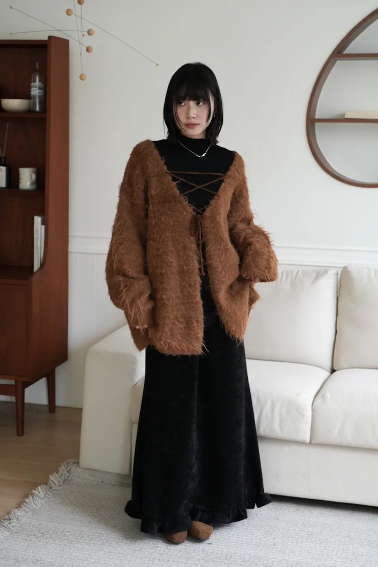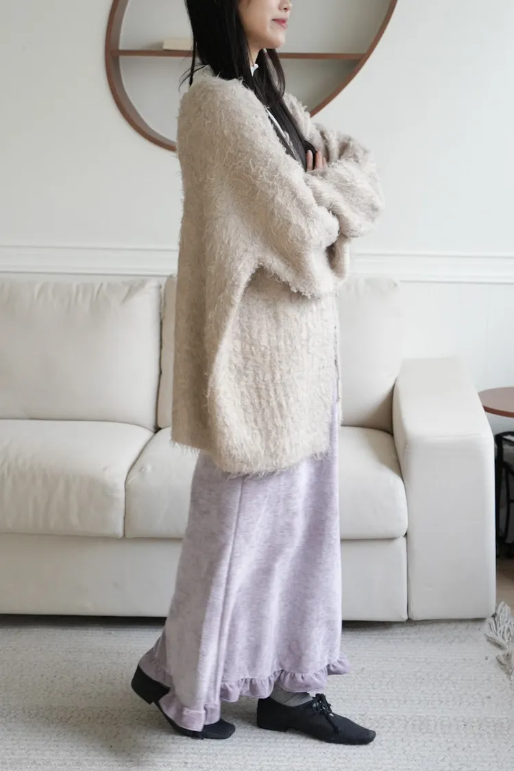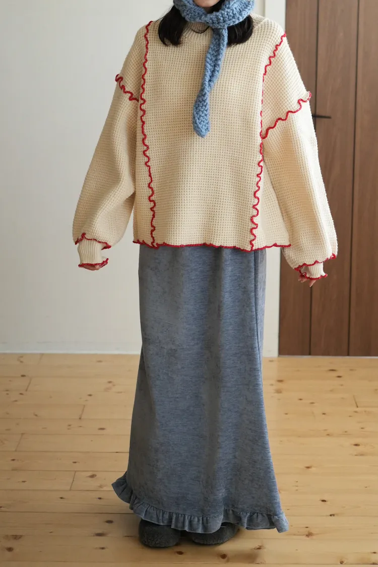 -【SHOWROOM MADE】閉眼收!絲絨磨毛木耳滾邊長裙 4color