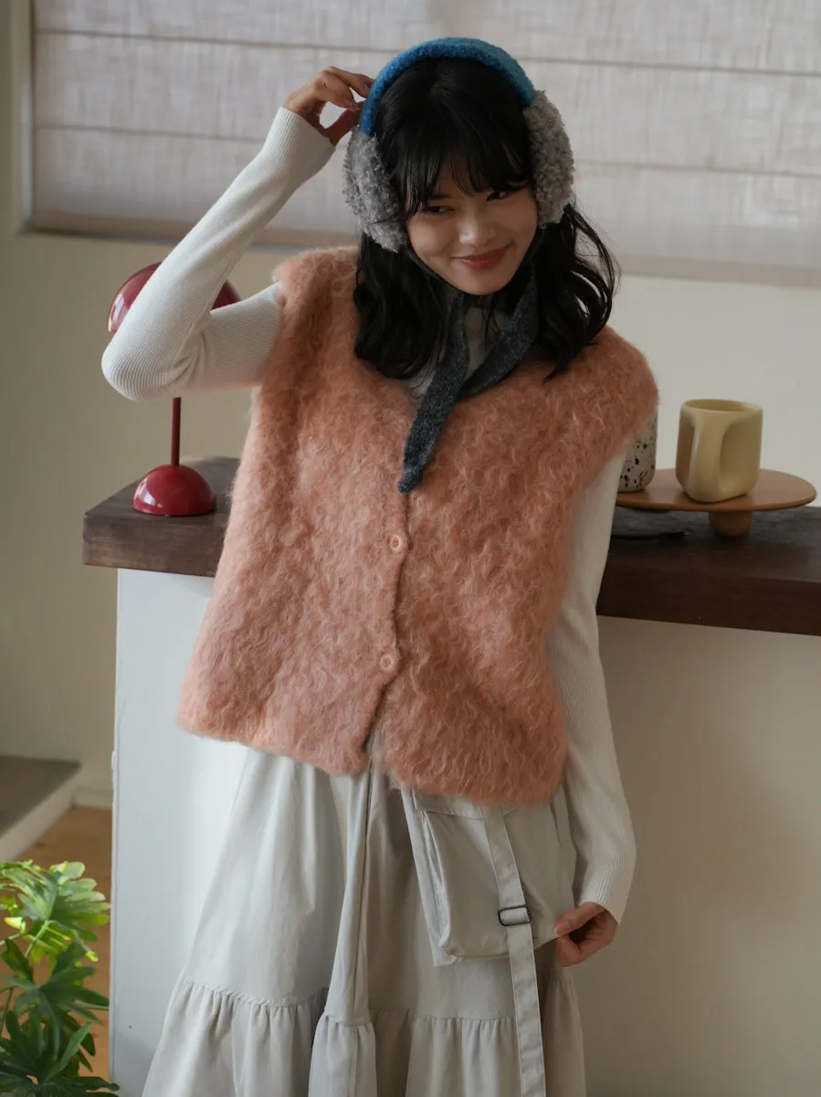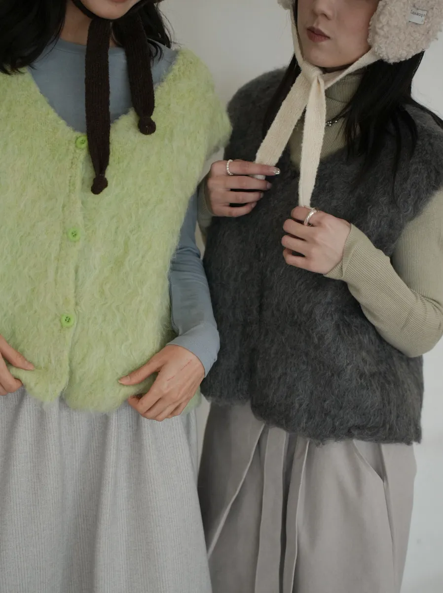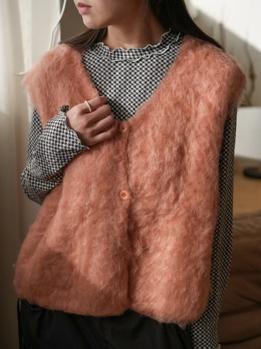 -【SHOWROOM MADE】拉毛毛毛排釦背心 3color