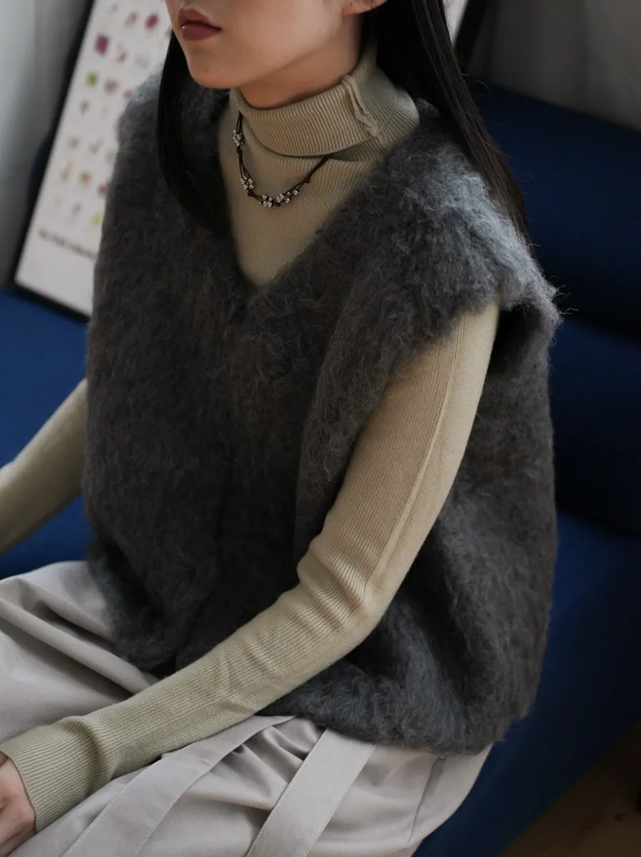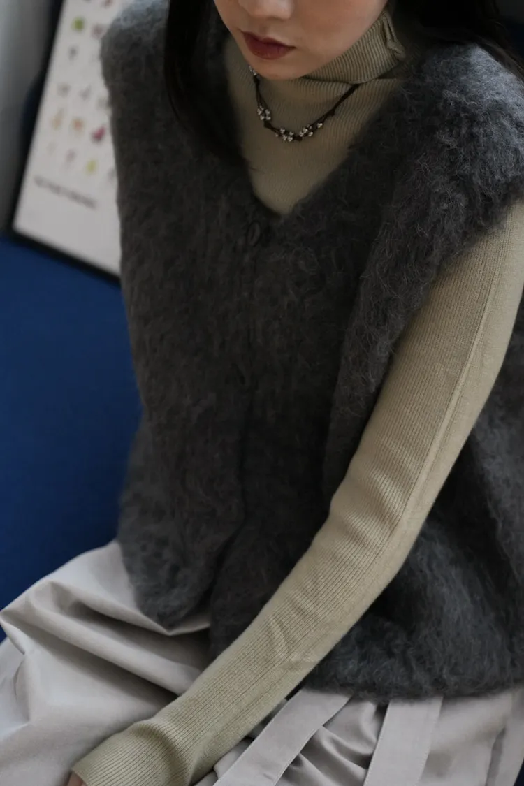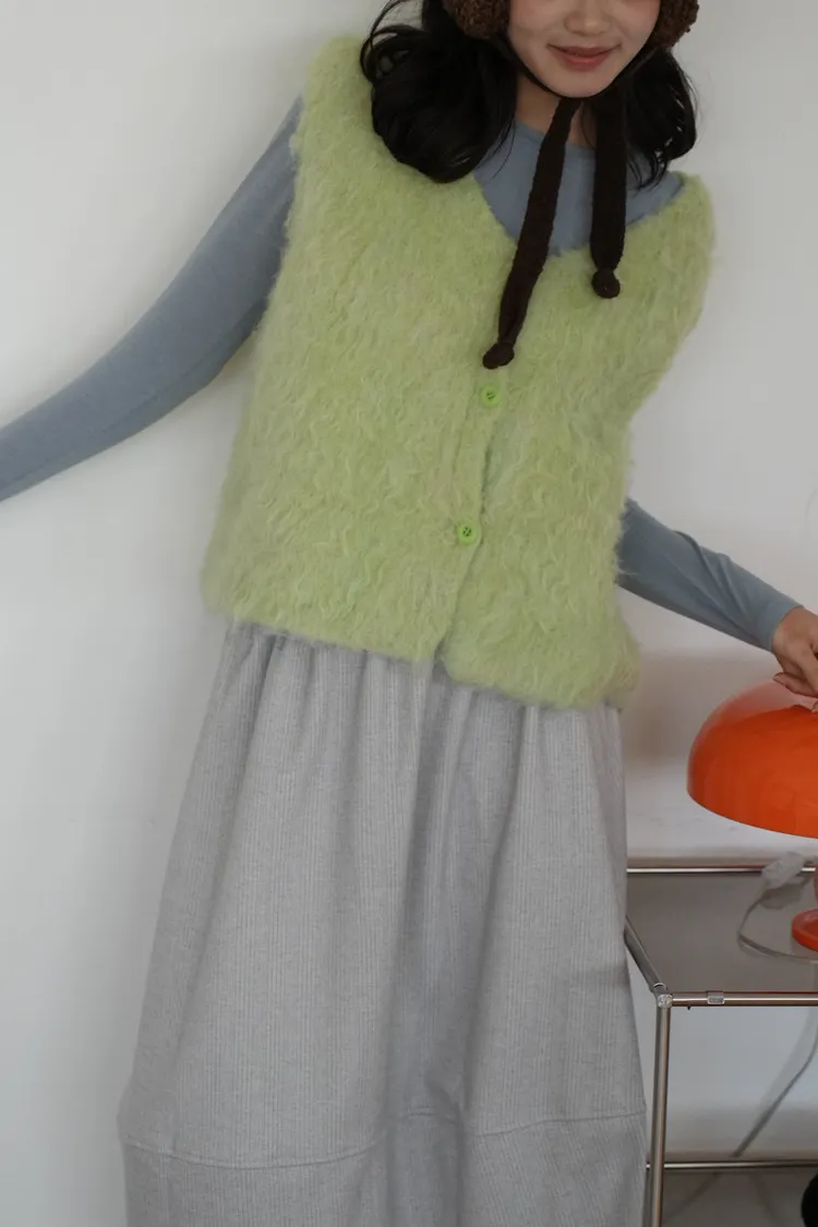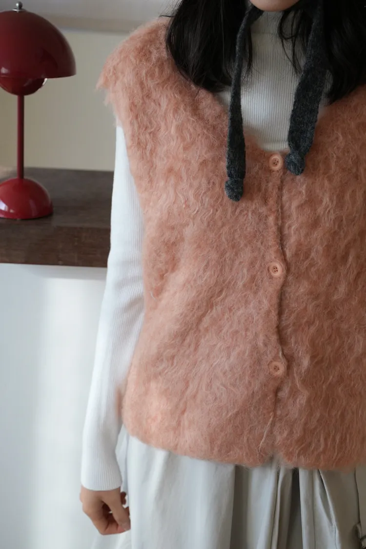 -【SHOWROOM MADE】拉毛毛毛排釦背心 3color