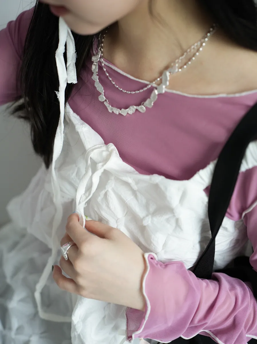 彈性肩帶,胸前有綁繩可繞脖,後隱形拉鍊