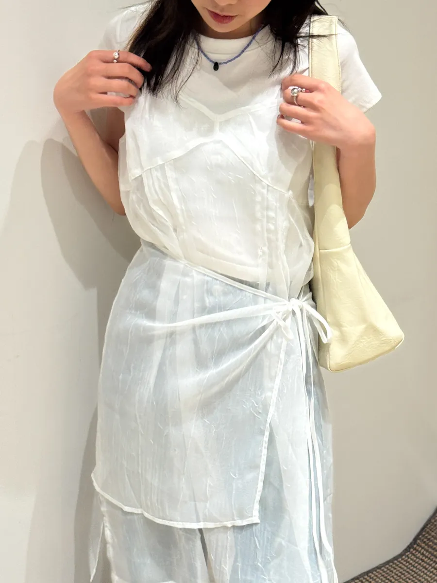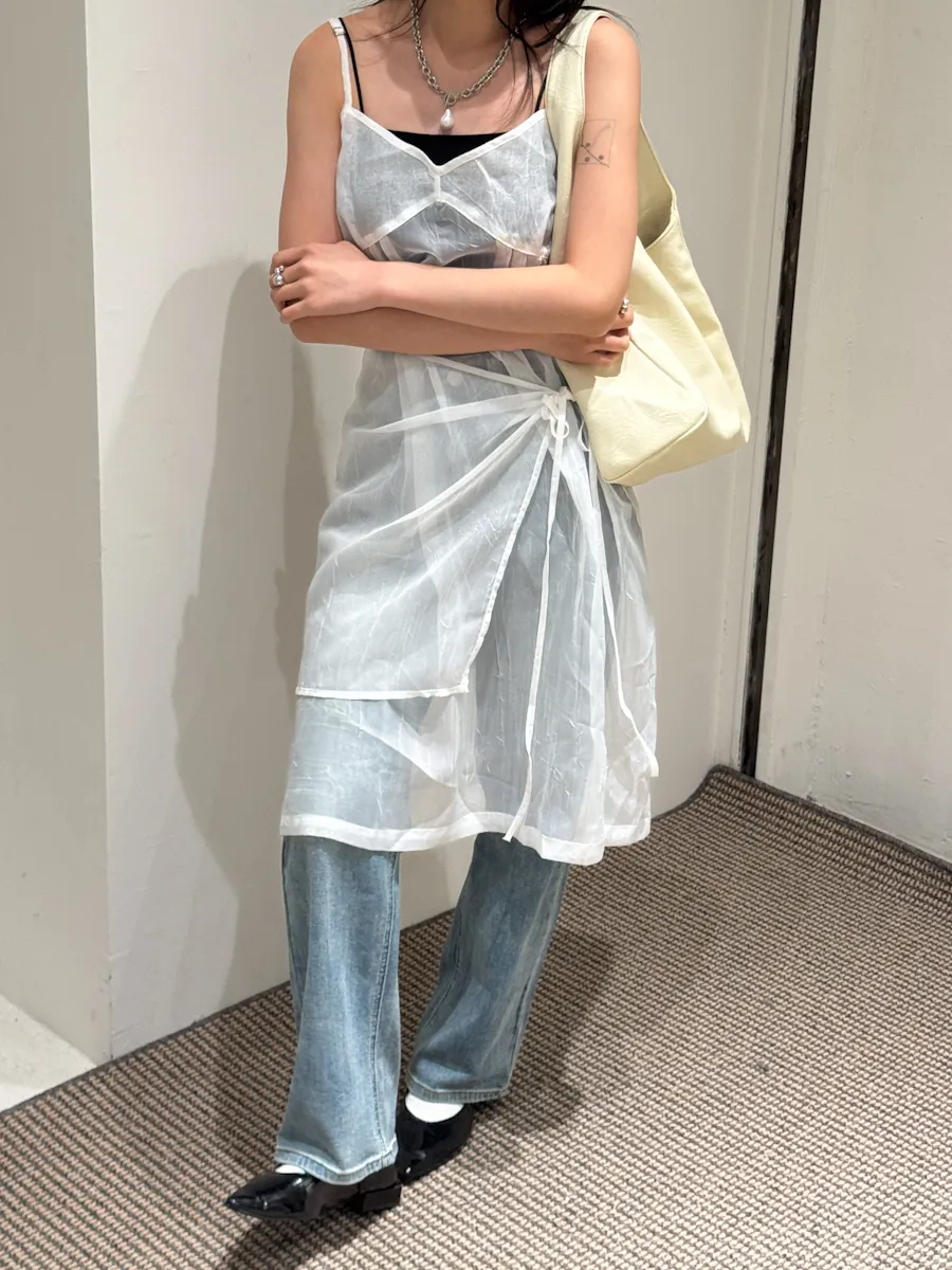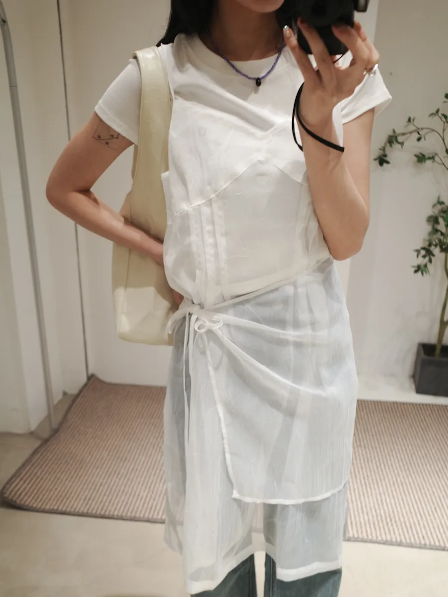 時髦圖鑑 透紗兩件式背心洋裝+裙簾 2color