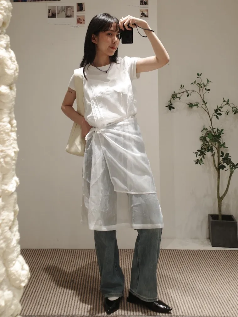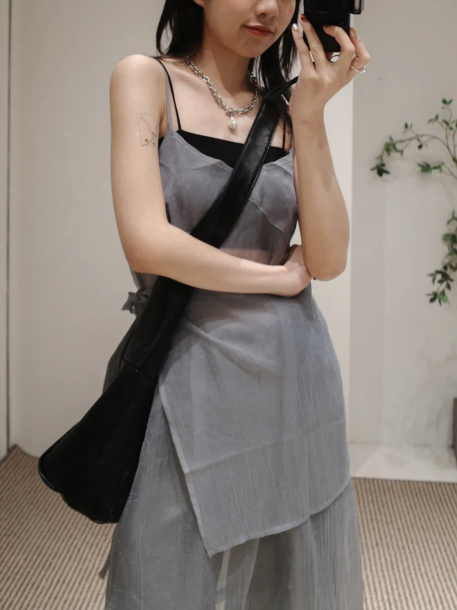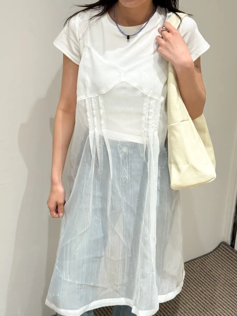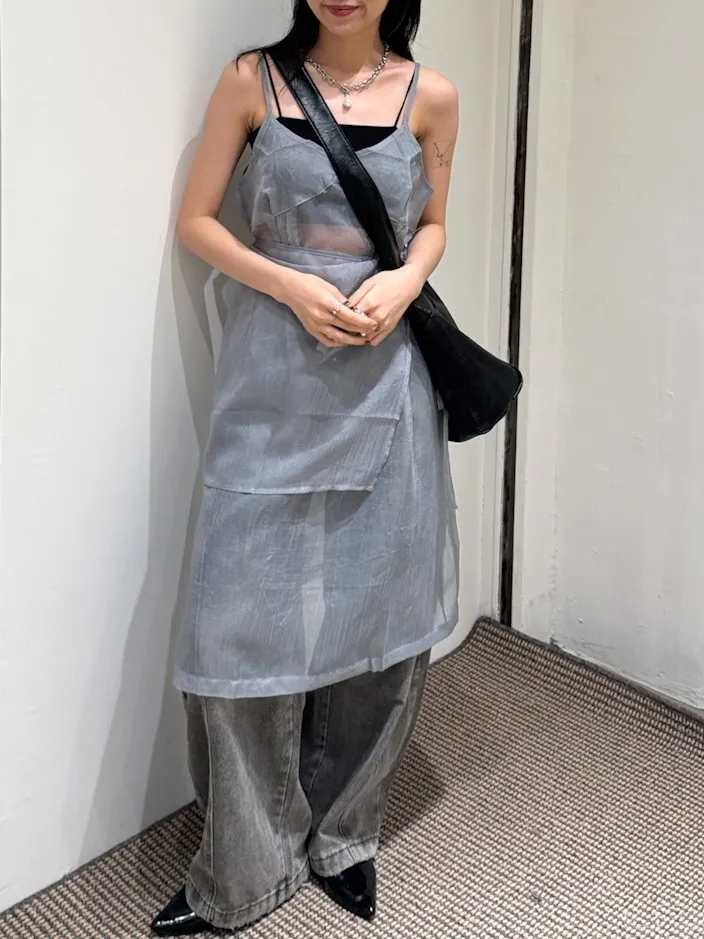 時髦圖鑑 透紗兩件式背心洋裝+裙簾 2color